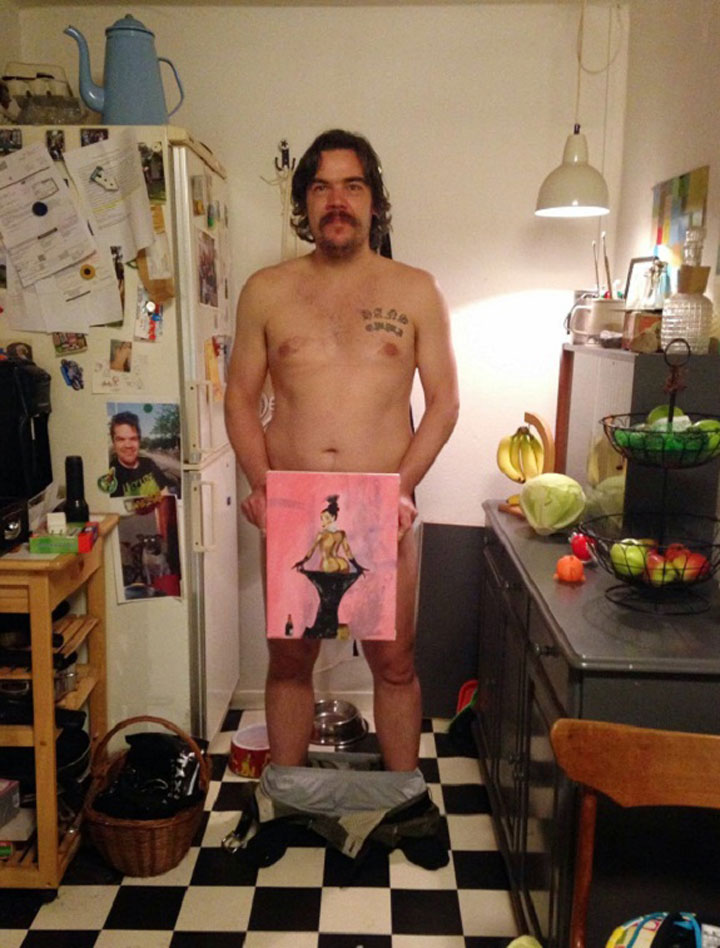 Κι όμως, ο Uwe Max Jensen μετέτρεψε το πέος του σε... πινέλο και ζωγράφισε την φωτογραφία της Kim από το «Paper» πάνω σε έναν καμβά!