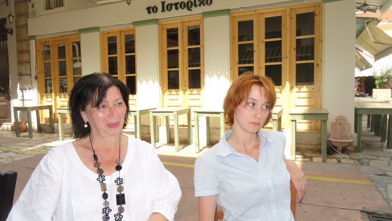 Οι δύο ομογενείς, που στις αρχές Σεπτεμβρίου επισκέφθηκαν, για πρώτη φορά, την περιοχή μας, βρέθηκαν στα μέρη μας -η πρώτη ως παραγωγός και η δεύτερη ως σκηνοθέτιδα- στο πλαίσιο των γυρισμάτων ενός ντοκιμαντέρ που κάνουν για λογαριασμό του πάνω καναλιού με θέμα το Κέντρο Ελληνικού Πολιτισμού Μόσχας και την Καλαματιανή διευθύντριά του, Δώρα Γιαννίτση.