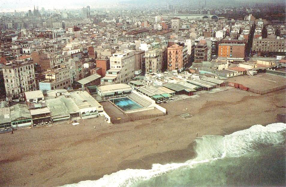Πάνω/ Βarceloneta, η βασική παραλία της Βαρκελώνης μετά τη ανάπλασή της και αξιοποίησή της αποτελεί πόλο έλξης αναρίθμητων επισκεπτών ετησίως, κάτω/ η Βarceloneta το 1987, 5 έτη πριν την ανάπλαση κανείς δε φανταζόταν τη σημερινή κατάσταση