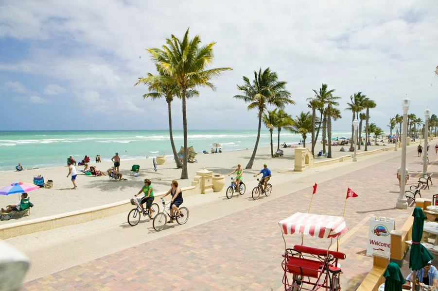 Ο παραλιακός πεζόδρομος Holywood beach στη Florida των Η.Π.Α. προσφέρει πλαζ λουομένων, ποδηλατόδρομο, ευρύ πεζόδρομο και χώρο τραπεζοκαθισμάτων και αποτελεί ένα από τα πιο τουριστικά μέρη παγκοσμίως