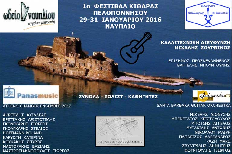 Την καλλιτεχνική διεύθυνση του φεστιβάλ, έχει ο διεθνούς φήμης Έλληνας σολίστ και καθηγητής κλασικής κιθάρας, Μιχάλης Σουρβίνος, επίσημος προσκεκλημένος είναι ο μεγάλος δάσκαλος της κιθάρας Βαγγέλης Μπουντούνης, ενώ θα συμμετέχουν 25 κορυφαίοι σολίστ και παιδαγωγοί της κιθάρας, μεταξύ των οποίων ο πρόεδρος του συλλόγου Ελλήνων Κιθαριστών, Στέλιος Γκόλγκαρης, η Μάρω Ραζή, ο Βασίλης Μαστοράκης, ο 'Αγγελος Μπότσης, και ο Ρόλαντ Χόφμαν από την Γερμανία.