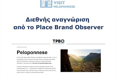 18:49 14/02 Εντάχθηκε στη λίστα του Place Brand Observer: Σπουδαία αναγνώριση για την Πελοπόννησο ως προορισμός