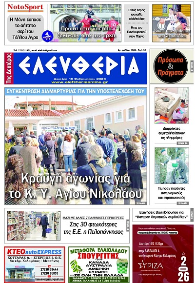 Υγεία Μεσσηνία: Κραυγή αγωνίας για το Κ.Υ. Αγίου Νικολάου - Συγκέντρωση διαμαρτυρίας για την υποστελέχωσή του 16/02/2026 09:26