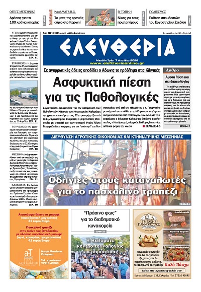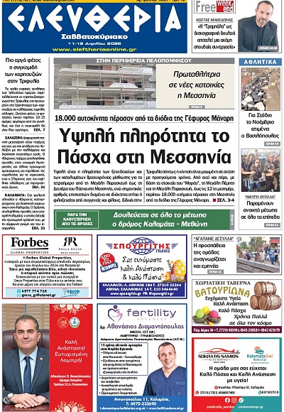 Το πρώτο θέμα... Πανηγύρια στη σκιά της Costa Navarino «Το 2026 το Αεροδρόμιο Καλαμάτας θα συνδέεται με 22 προορισμούς μέσω 31 απευθείας…