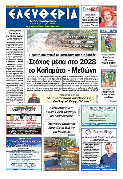 Δήμοι Δημοτικό Συμβούλιο Τριφυλίας: Ψηφίστηκε η αρχική πρόταση για βιολογικό Γαργαλιάνων 14/02/2026 16:02