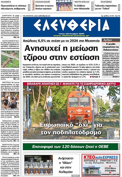 Το πρώτο θέμα... Σιωπηλή αποδοχή μιας νέας χρεοκοπίας Η είδηση ότι ο δρόμος Καλαμάτα - Ριζόμυλος - Πύλος - Μεθώνη θα παραδοθεί με καθυστέρηση…