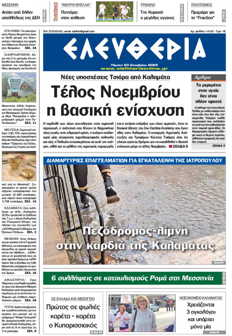 "Ελευθερία" - Πέμπτη 23 Οκτωβρίου 2025
