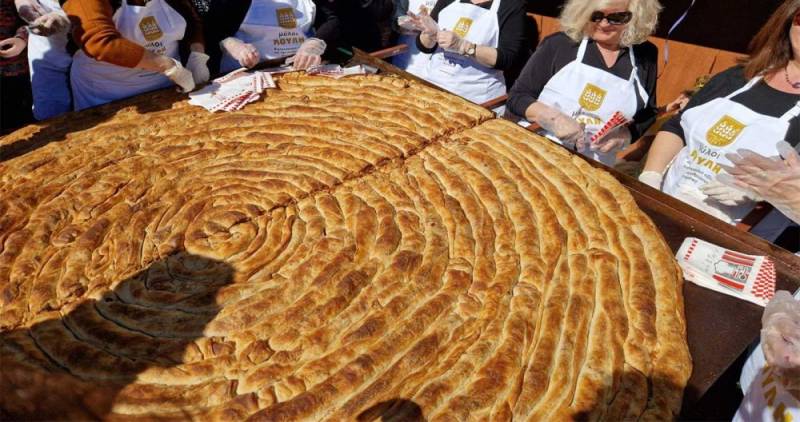 Για το κιχί χρειάστηκαν σχεδόν 100 κιλά αλεύρι, πάνω από 50 κιλά τυριού, πολλά κιλά λαδιού και βούτυρο και δεκάδες αυγά! Ο κόσμος το ..εξαφάνισε πάντως!
