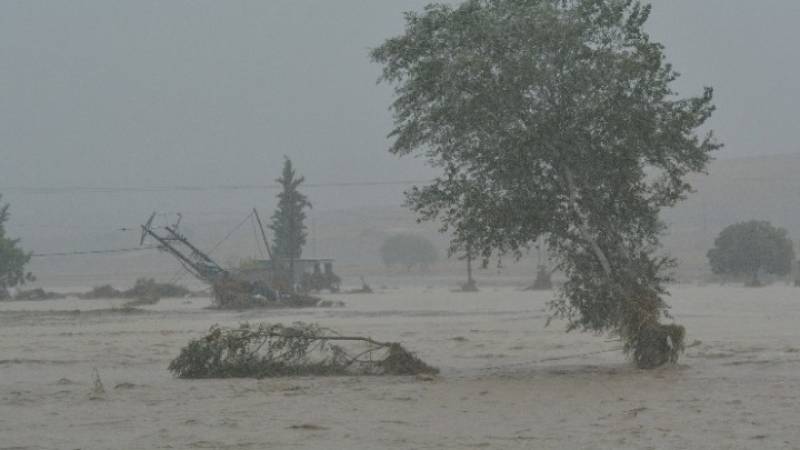 Εικόνες που σοκάρουν στον Παλαμά, με πατέρα να μεταφέρει τ παιδί και το κατοικίδιο του με φουσκωτό για να σωθούν.