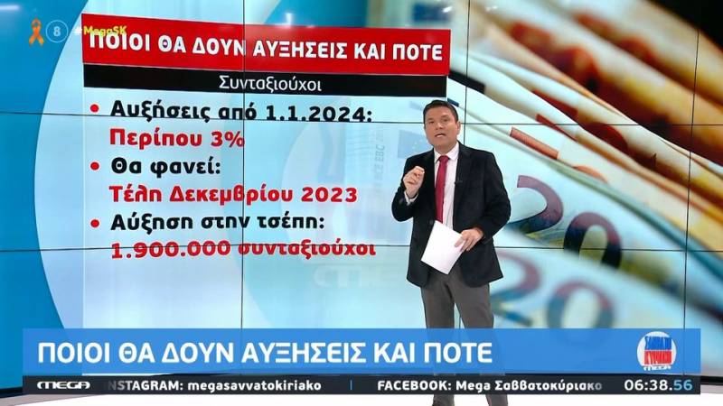 Σε ύψος 3% οριστικοποιείται η αύξηση των συντάξεων για το 2024 σύμφωνα με την πρόβλεψη της δαπάνης που περιλαμβάνεται στον προϋπολογισμό ο οποίος κατατέθηκε στην Βουλή προς ψήφιση.