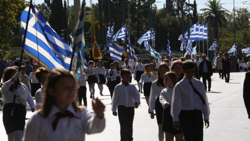 Ολοκληρώθηκε η μαθητική παρέλαση στο κέντρο της Αθήνας, για τον εορτασμό της Εθνικής Επετείου της 28ης Οκτωβρίου.