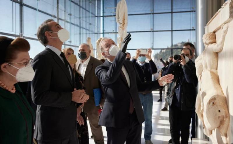Ο Κυριάκος Μητσοτάκης σημείωσε όπως αναφέρει το ΑΠΕ-ΜΠΕ, ότι «το Εθνικό Αρχαιολογικό Μουσείο δείχνει ένα δρόμο ευθύνης και επιστημονικής συνέπειας. Αυτό το δρόμο ακολουθεί και συνολικά η ελληνική πολιτεία, αναβαθμίζοντας σε ανώτατο κυβερνητικό επίπεδο την επιστροφή των γλυπτών του Παρθενώνα από το Βρετανικό Μουσείο. Ένα αίτημα της UNESCO, ένα αίτημα πια της πλειοψηφίας της κοινής γνώμης και στο Ηνωμένο Βασίλειο. Αλλά και ένα θέμα το οποίο πιστεύω ότι αντιλαμβάνεται και προσωπικά ο Πρωθυπουργός Μπόρις Τζόνσον, όπως διαπίστωσα στην πρόσφατη συνάντησή μας».