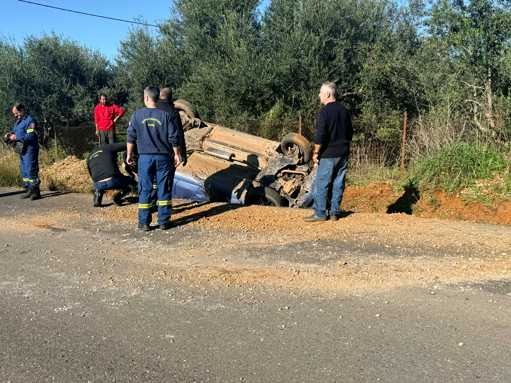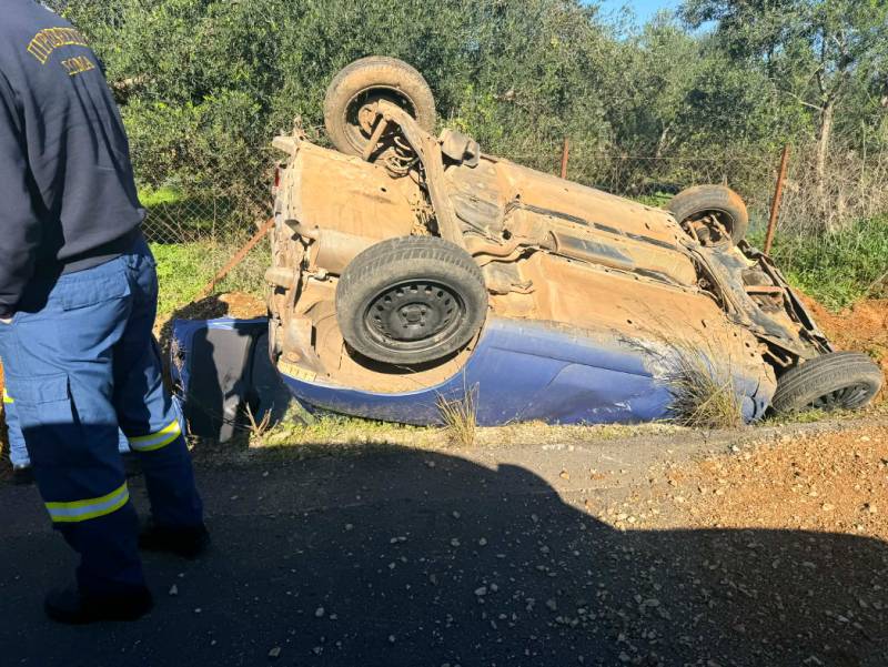 Ο οδηγός του αυτοκινήτου από την Μαραθόπολη παρότι το αυτοκίνητο του είχε τουμπάρει, κατόρθωσε να βγει μόνος του από αυτό, δίχως να έχει τραυματιστεί!