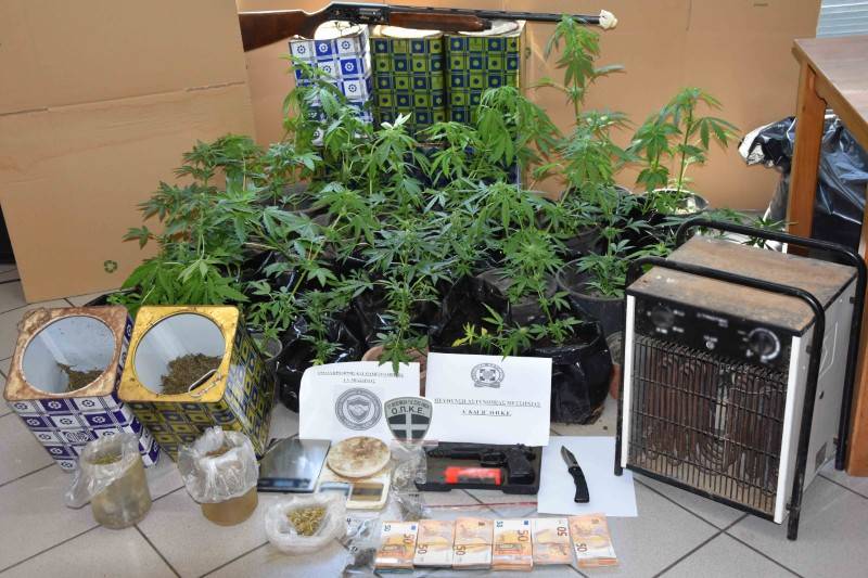 Ακόμη βρέθηκαν ένα αεροβόλο πιστόλι, ένα κυνηγετικό όπλο, ένας αναδιπλούμενος σουγιάς, δύο ζυγαριές, μία θερμάστρα – αερόθερμο και