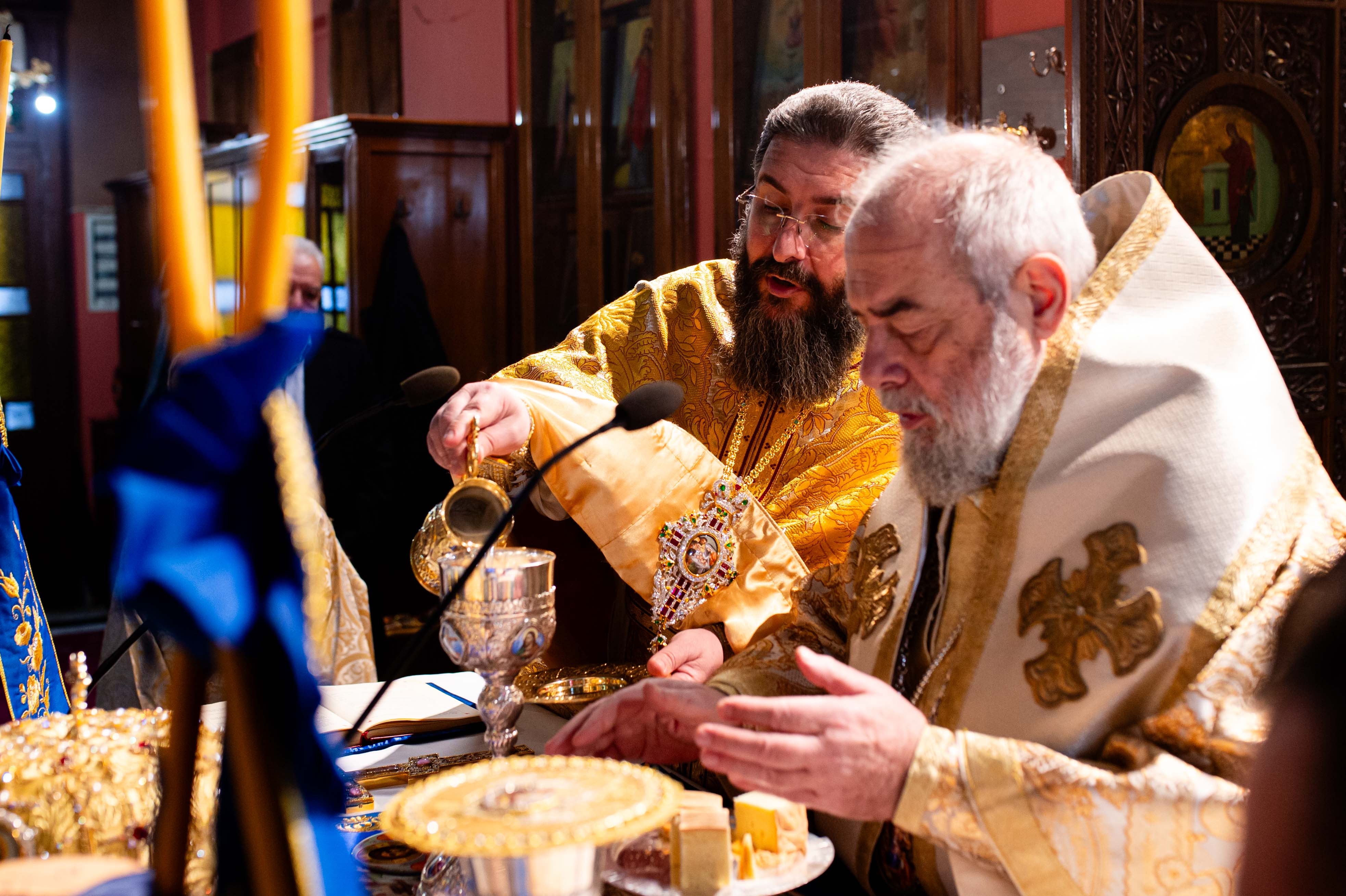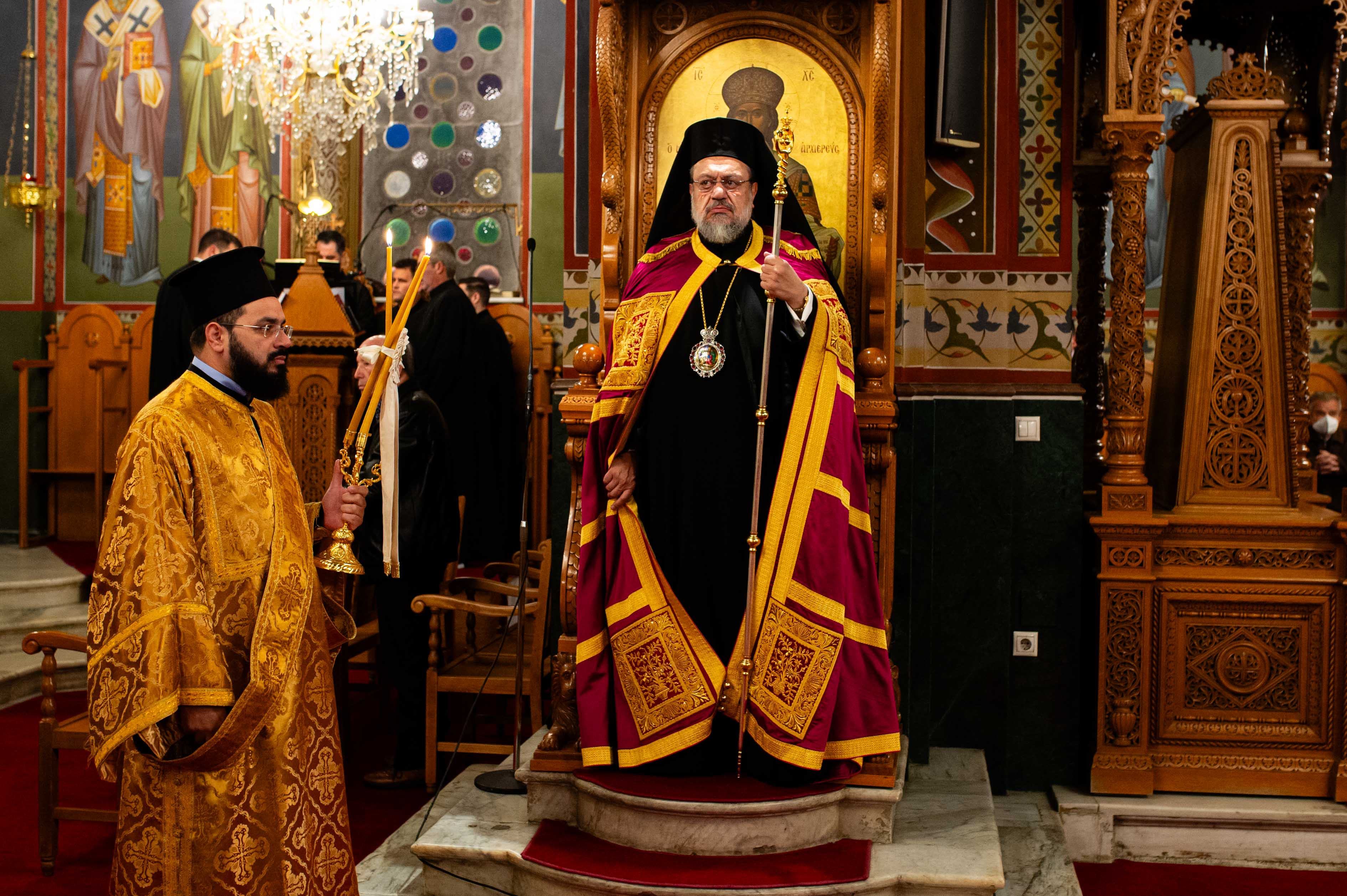 Πριν το τέλος της Θείας Λειτουργίας ο Σεβασμιώτατος Λεοντόπολεως ευχήθηκε σε όλους να βρούμε την εσωτερική μας ειρήνη και γαλήνη, ώστε να μπορέσουμε να βιώσουμε το “επί γης ειρήνη”.
