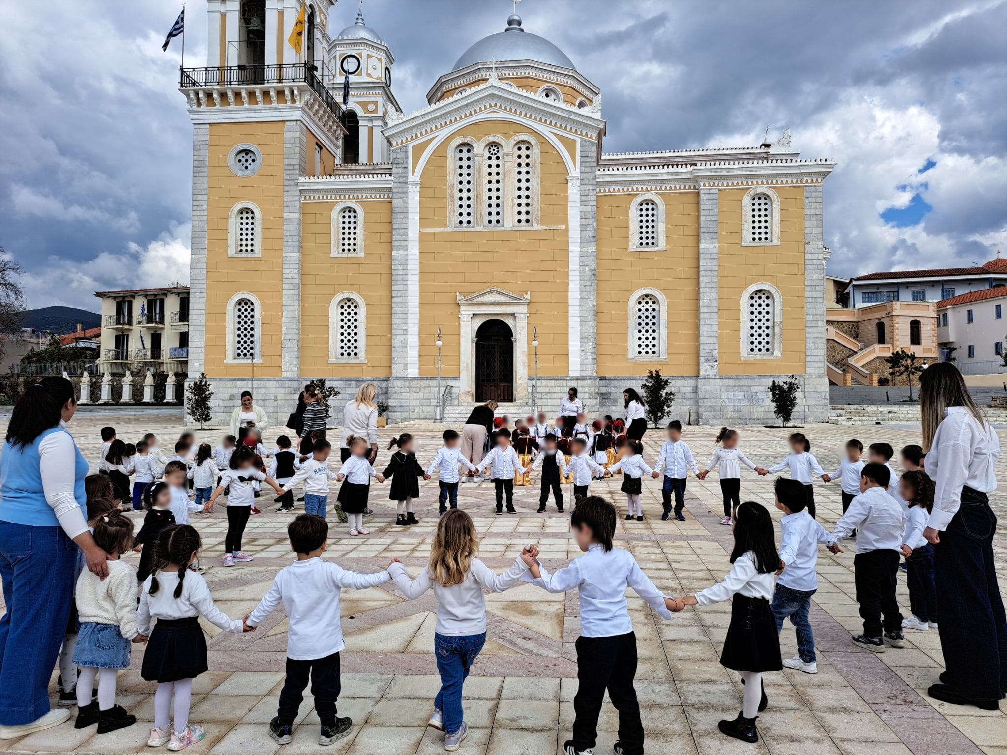 Οι μικροί μαθητές, ντυμένοι με παραδοσιακές ενδυμασίες, έκαναν παρέλαση στην πλατεία Υπαπαντής, μπροστά από τον εμβληματικό Μητροπολιτικό Ναό της πόλης. Τα παιδιά κρατώντας ελληνικές σημαίες απέσπασαν το θερμό χειροκρότημα των παρευρισκομένων, στέλνοντας μήνυμα ελπίδας και διατήρησης της ιστορικής μνήμης.
