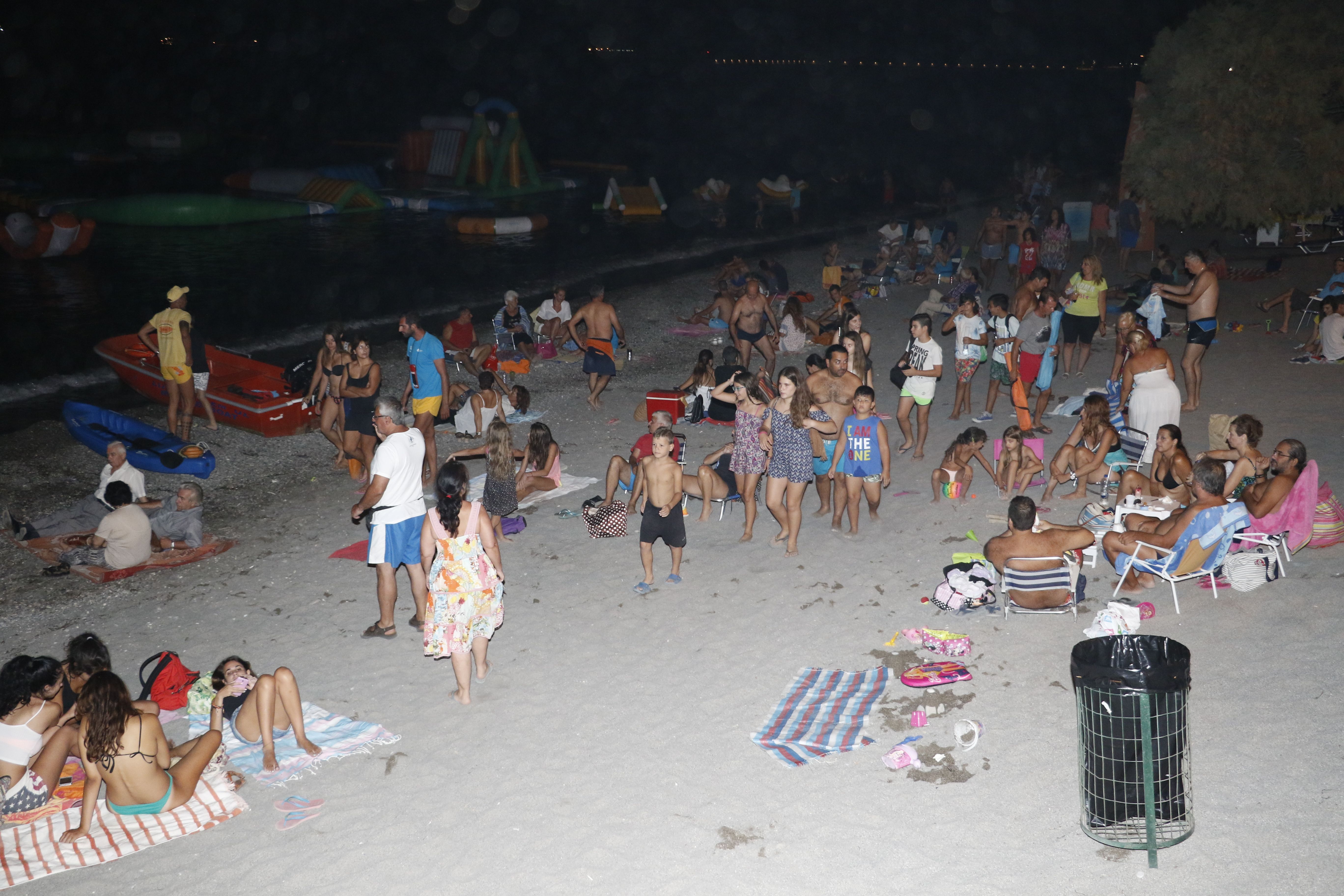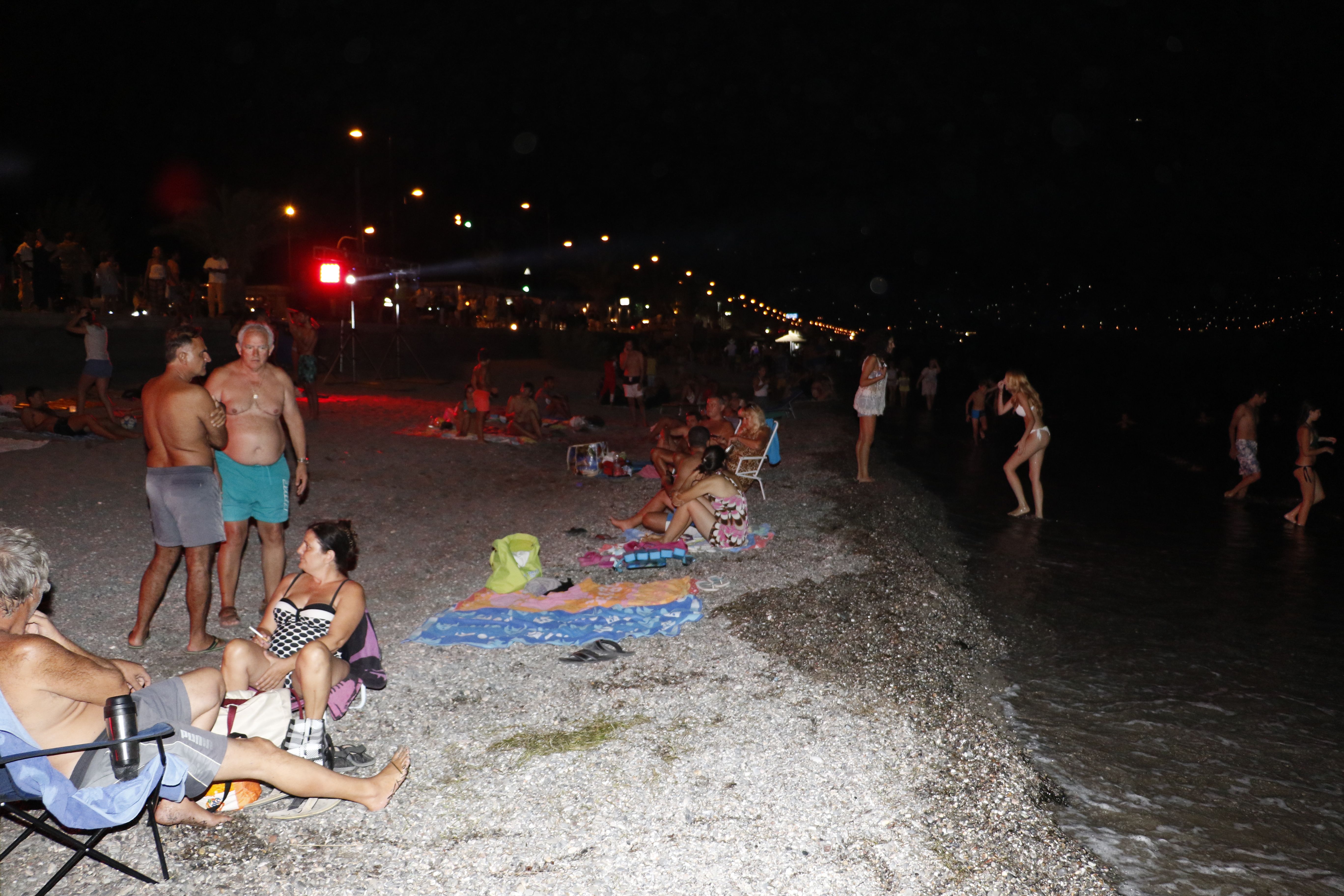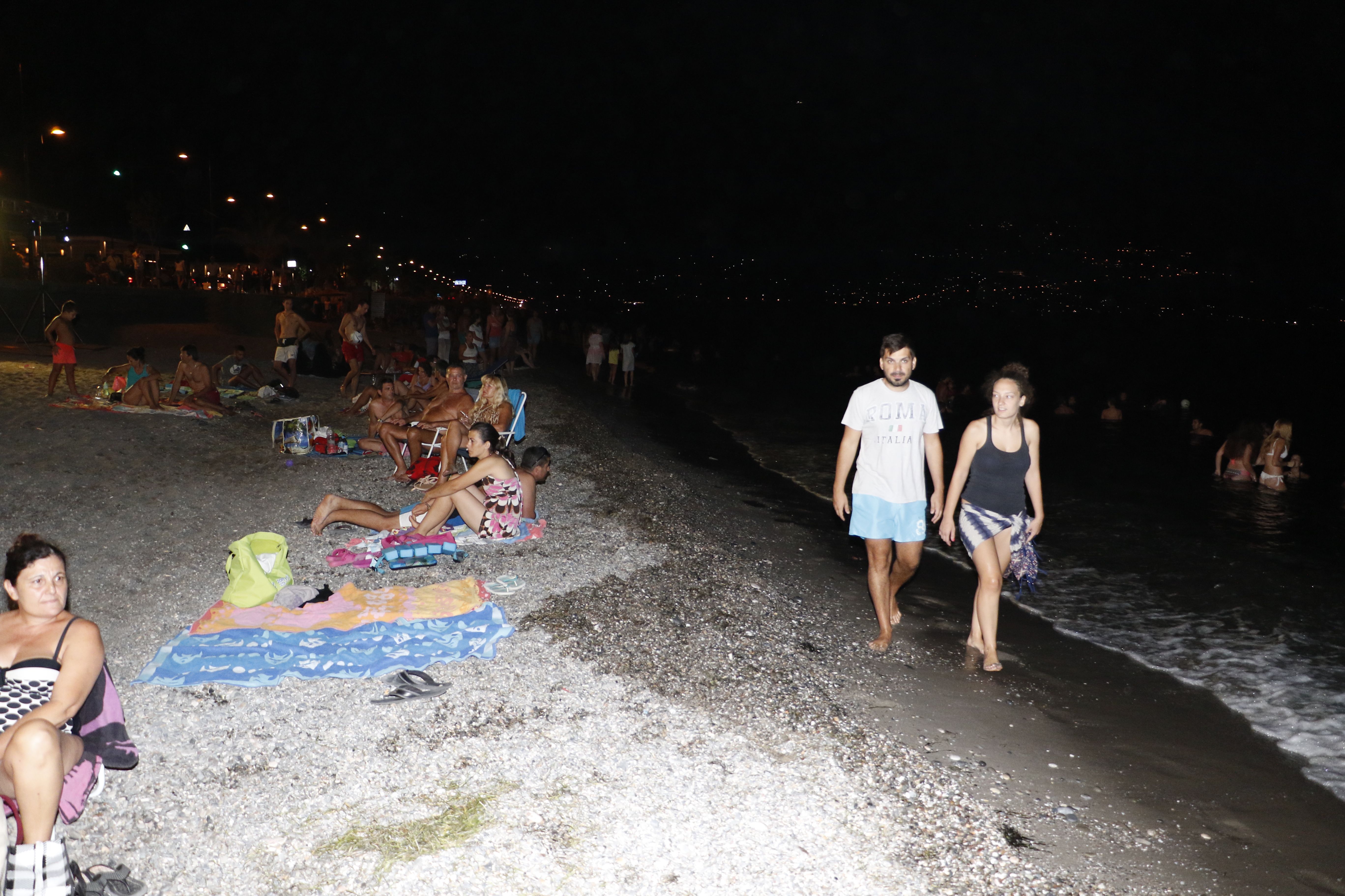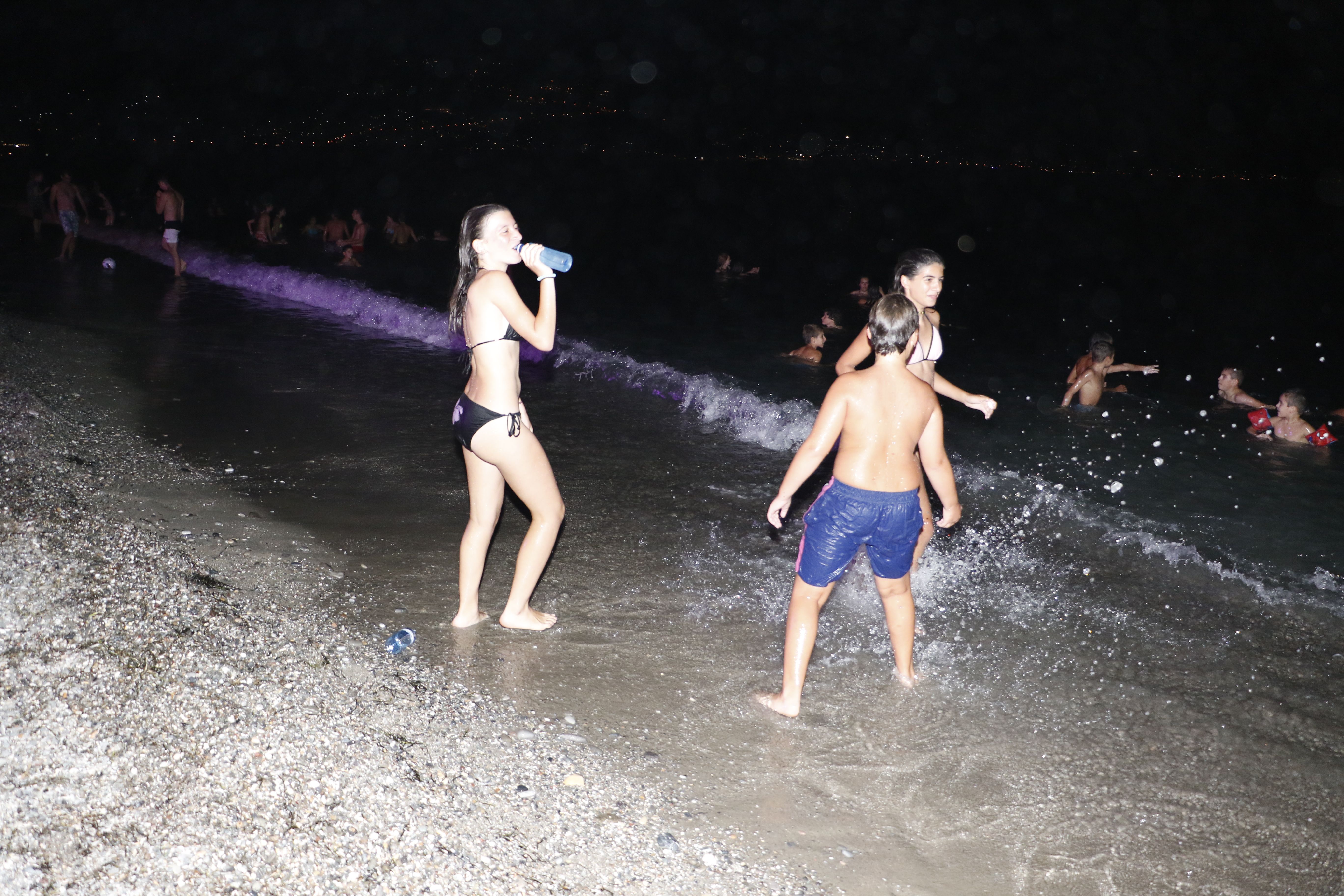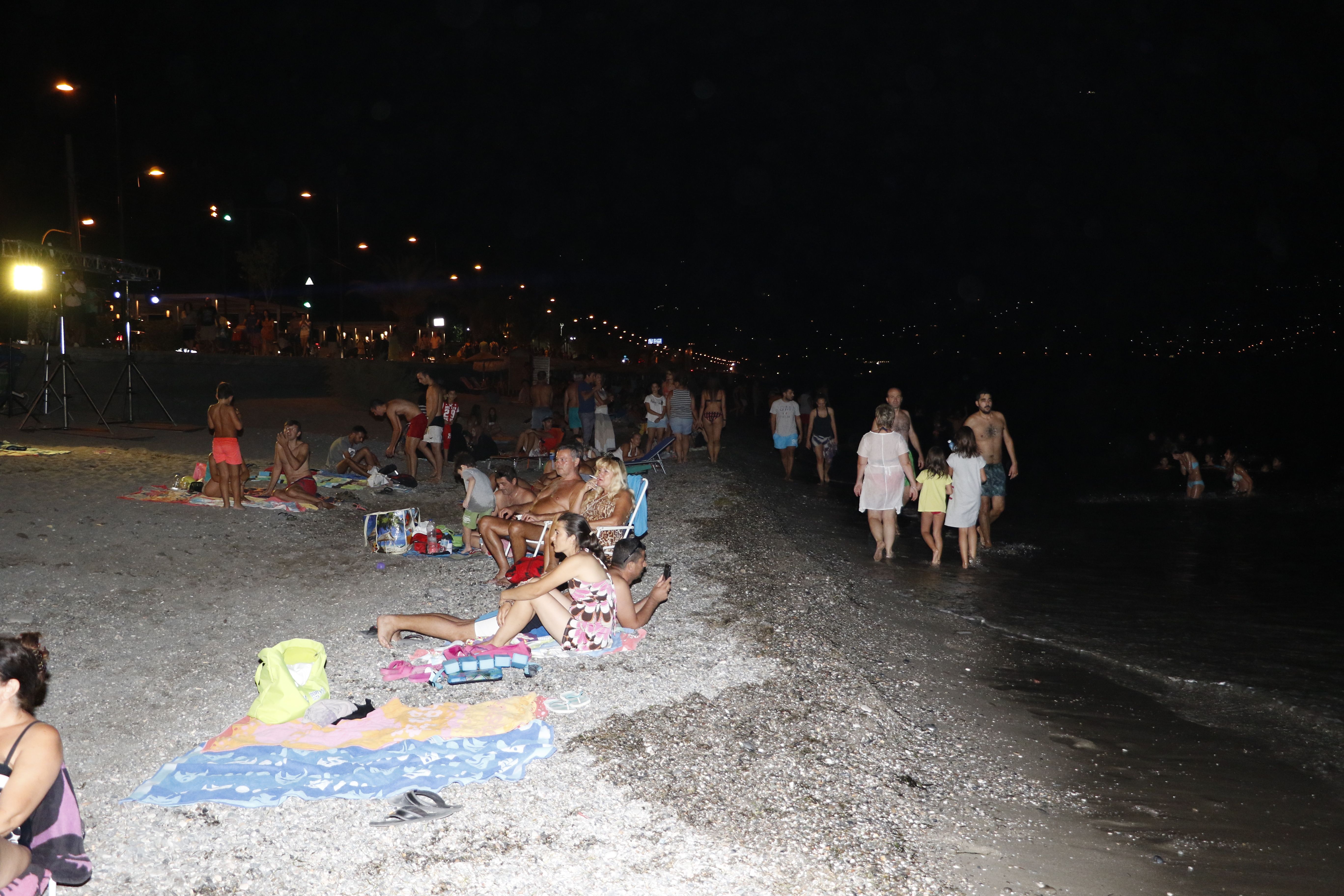 Πριν τις 9 το βράδυ της η οδός Ναυαρίνου πλημμύρισε από αυτοκίνητα και πεζούς που πήγαιναν για νυχτερινό μπάνιο. Λίγη ώρα αργότερα ο κόσμος κατέκλυζε την παραλία απολαμβάνοντας το μπάνιο του.