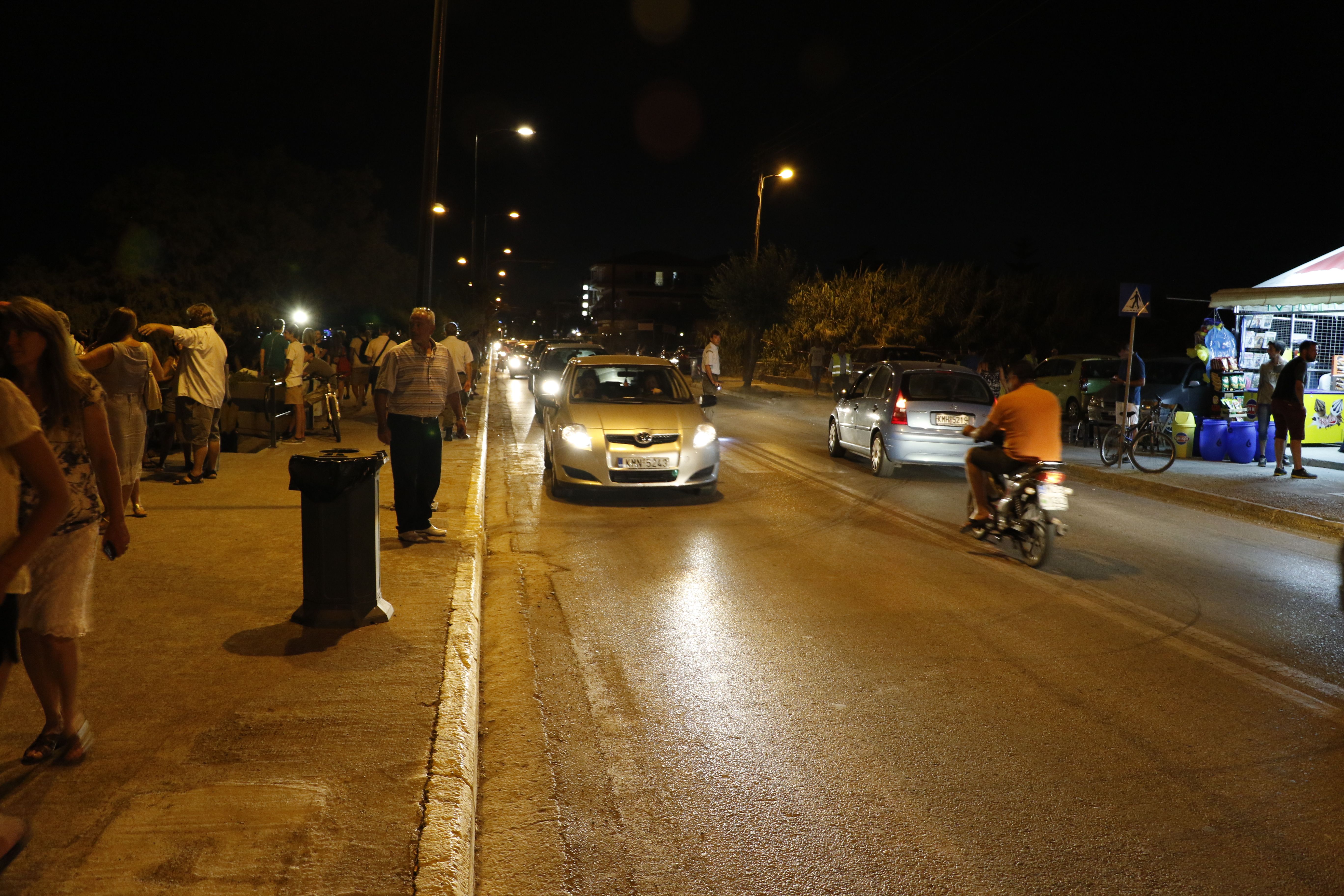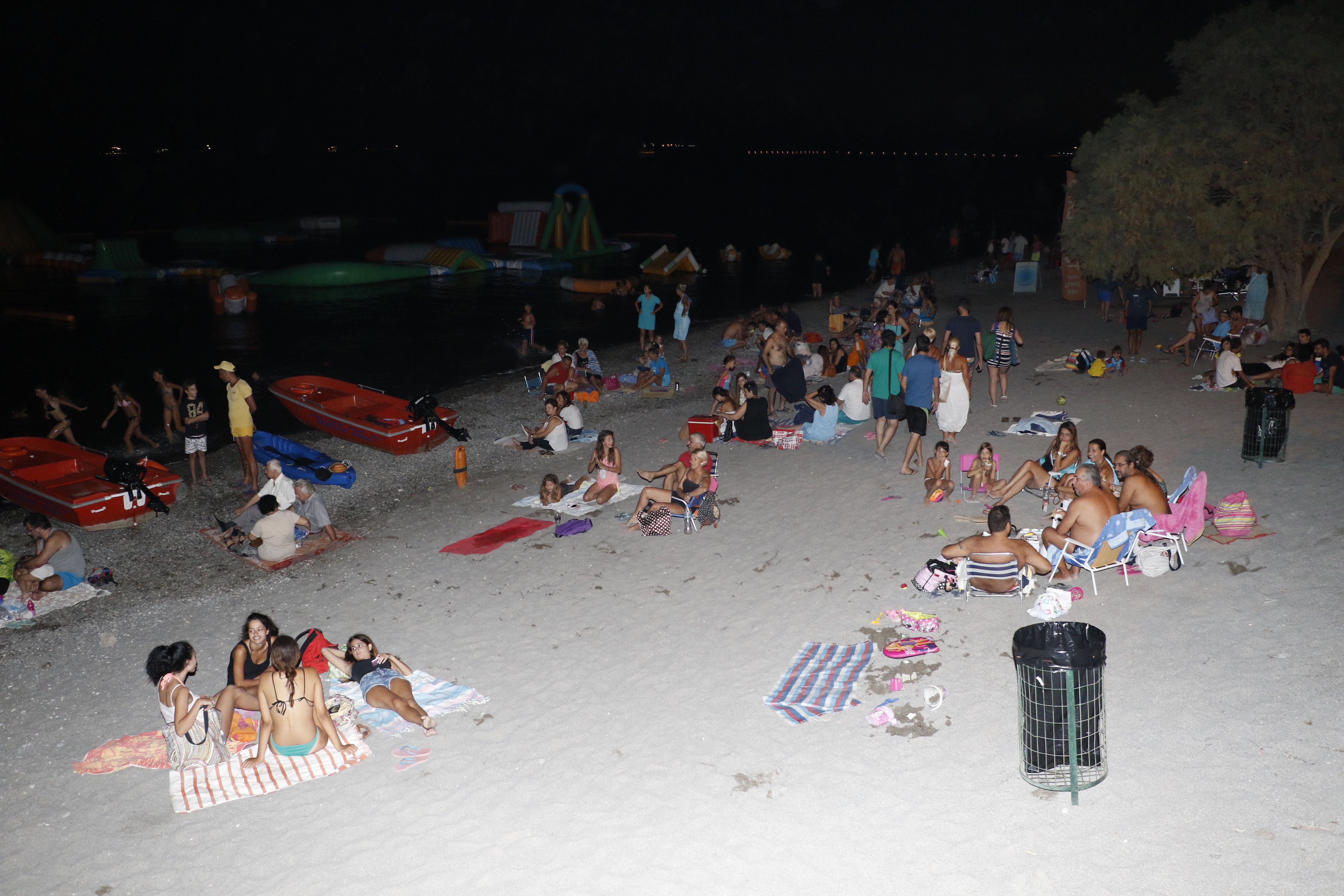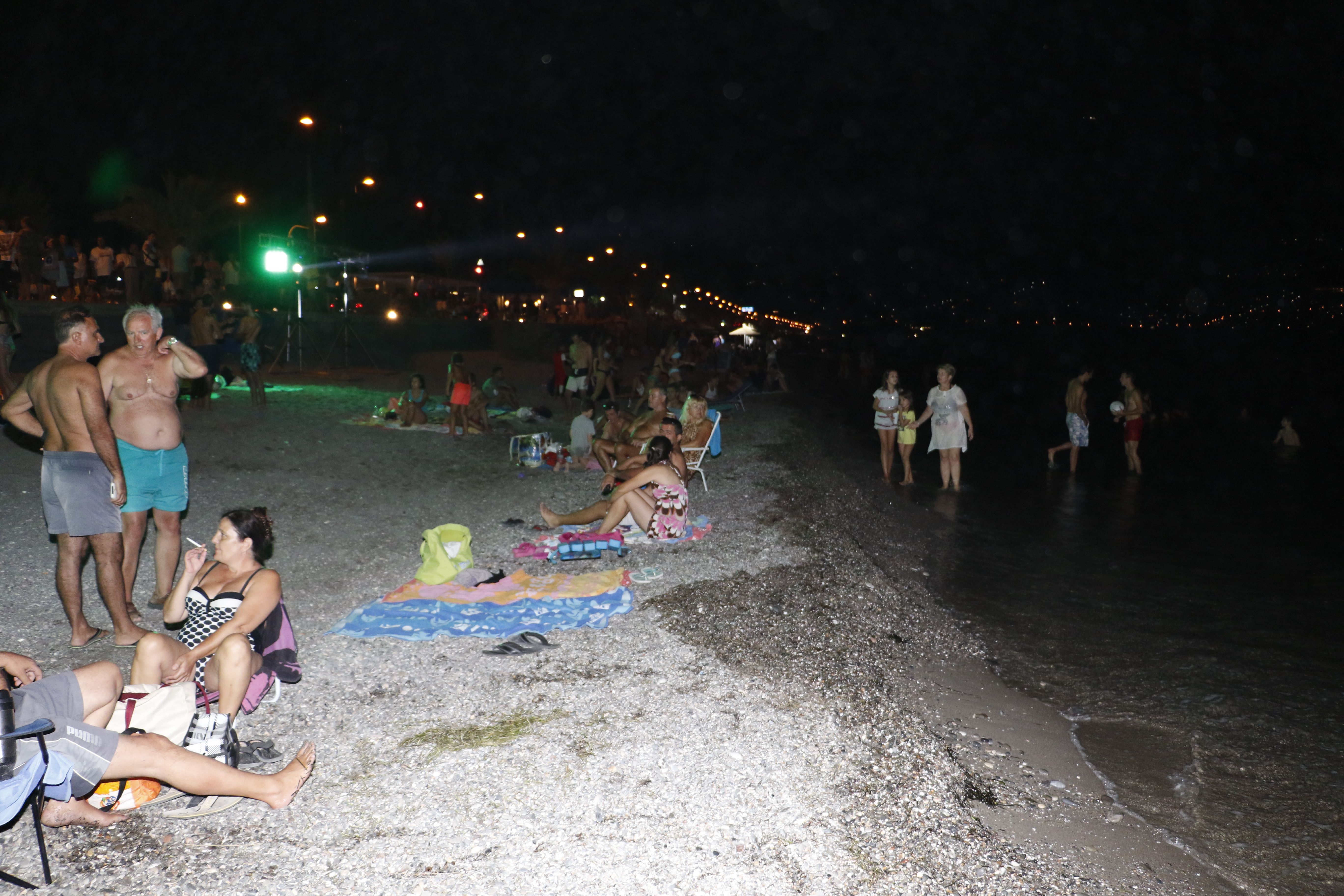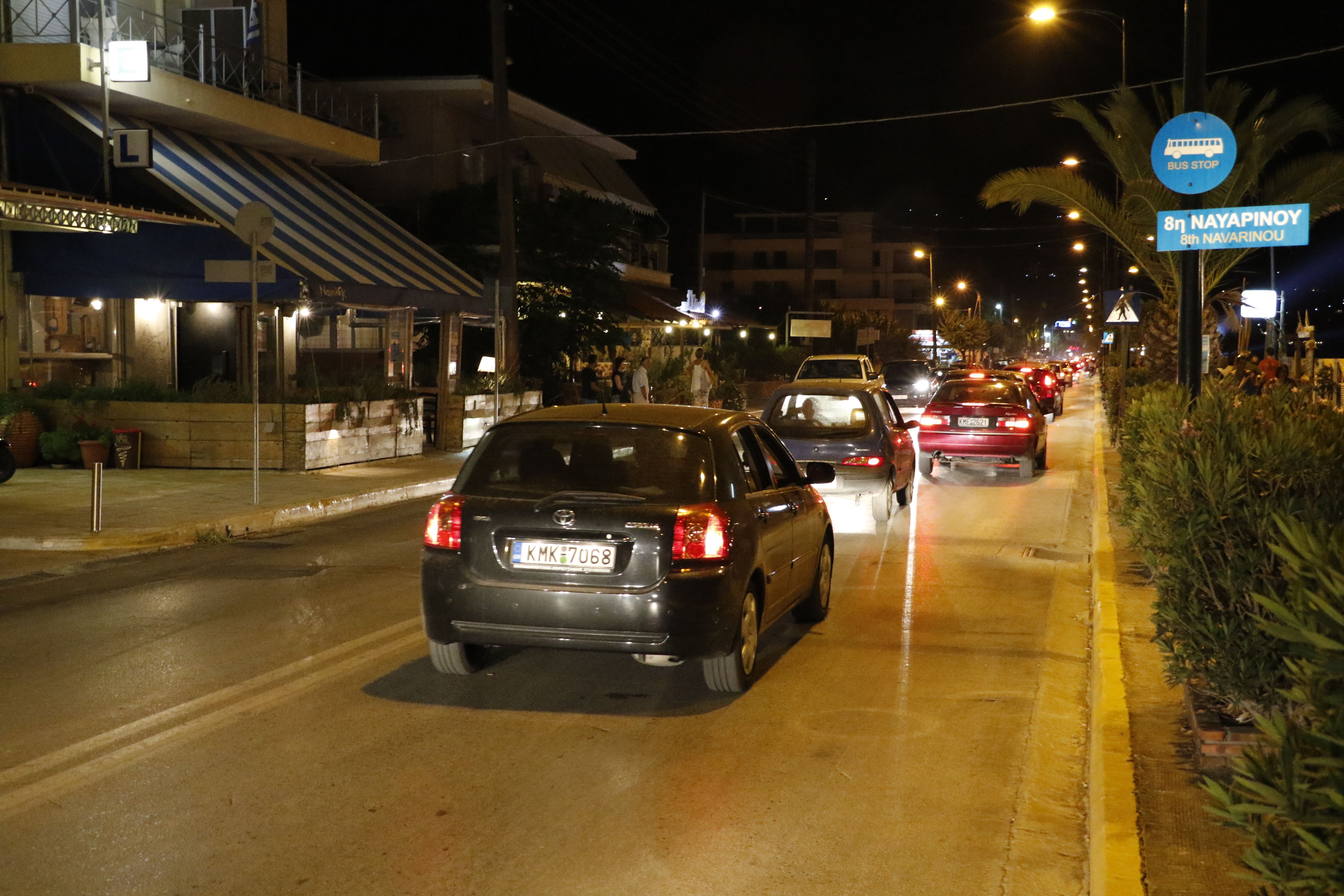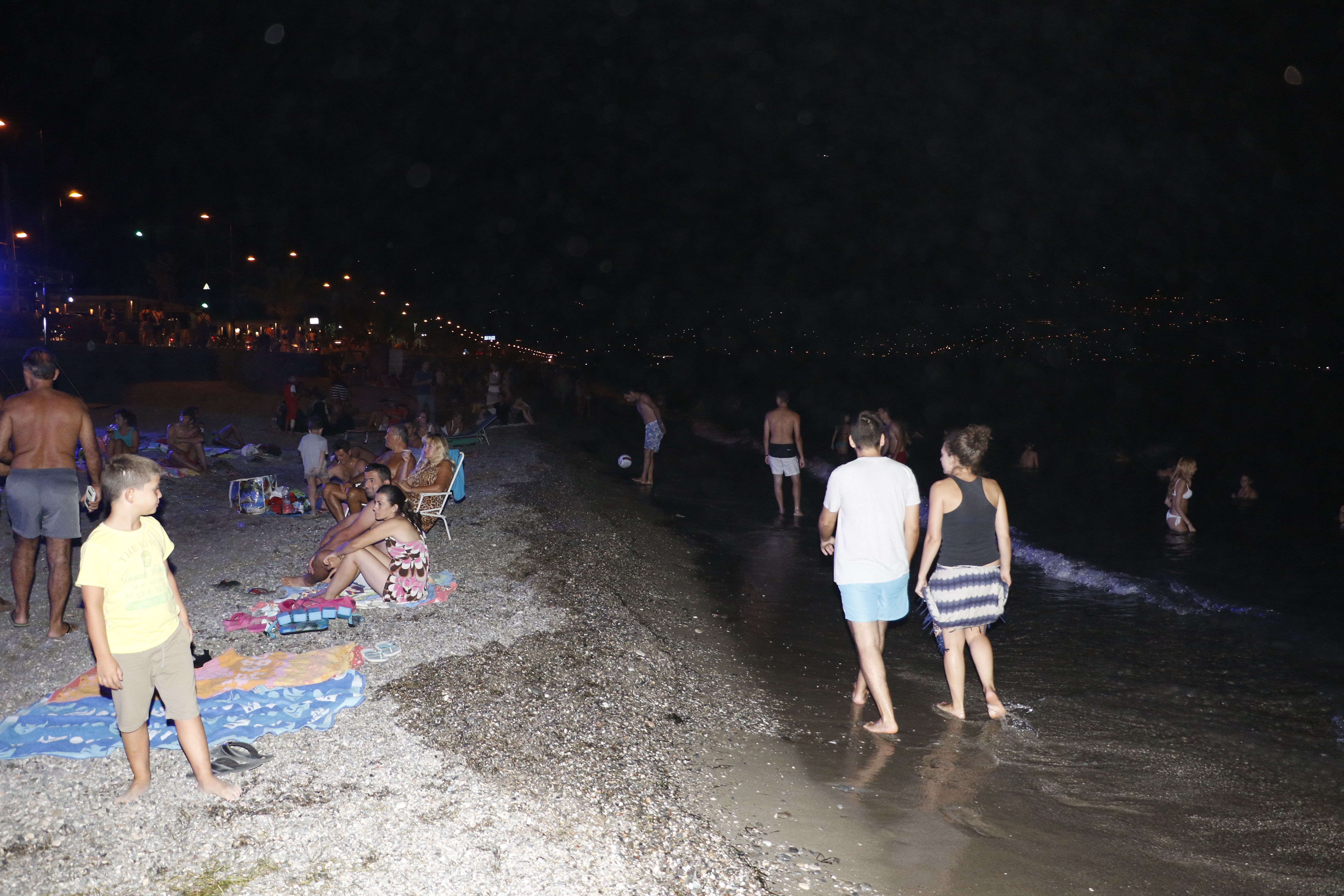 Πριν τις 9 το βράδυ της η οδός Ναυαρίνου πλημμύρισε από αυτοκίνητα και πεζούς που πήγαιναν για νυχτερινό μπάνιο. Λίγη ώρα αργότερα ο κόσμος κατέκλυζε την παραλία απολαμβάνοντας το μπάνιο του.