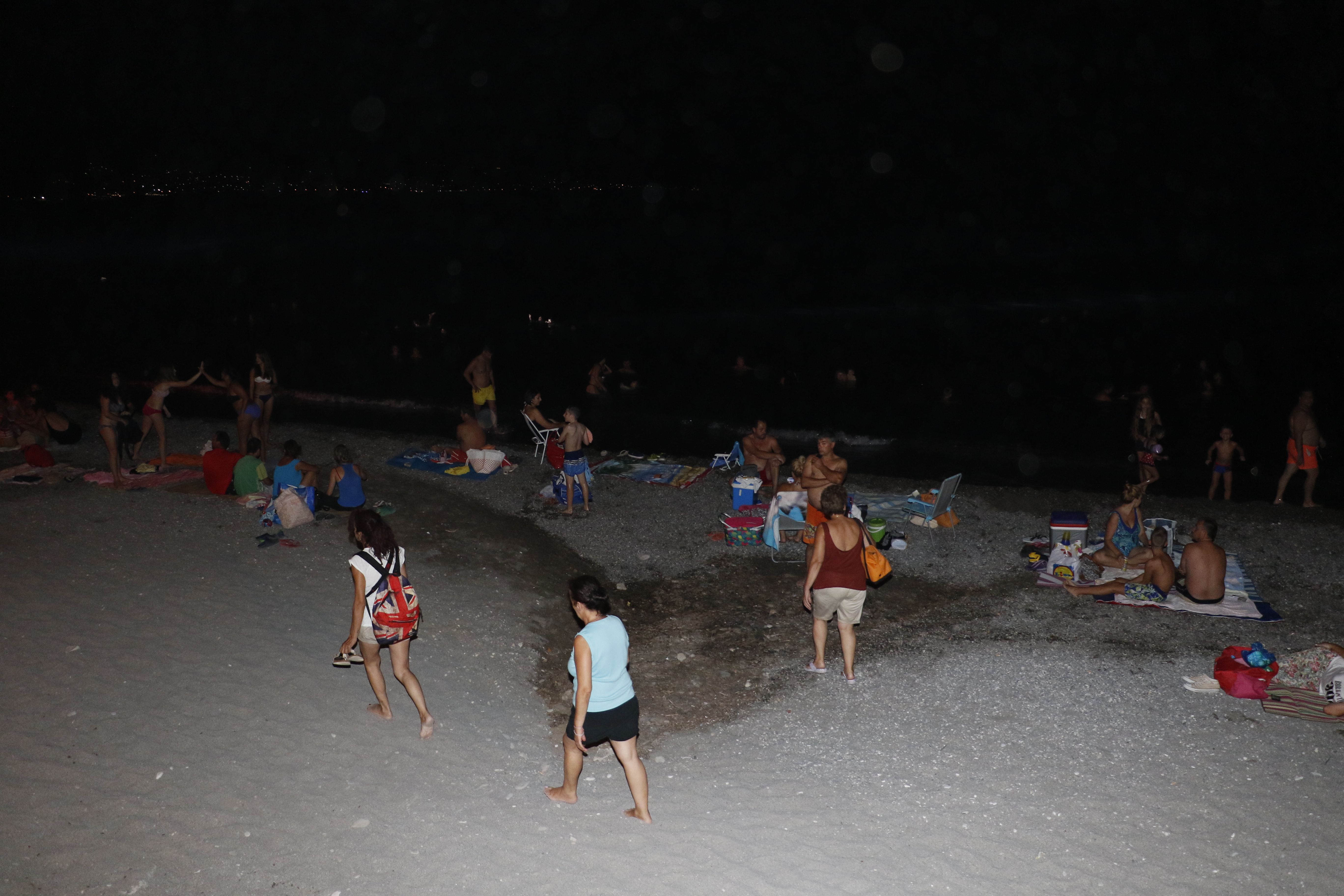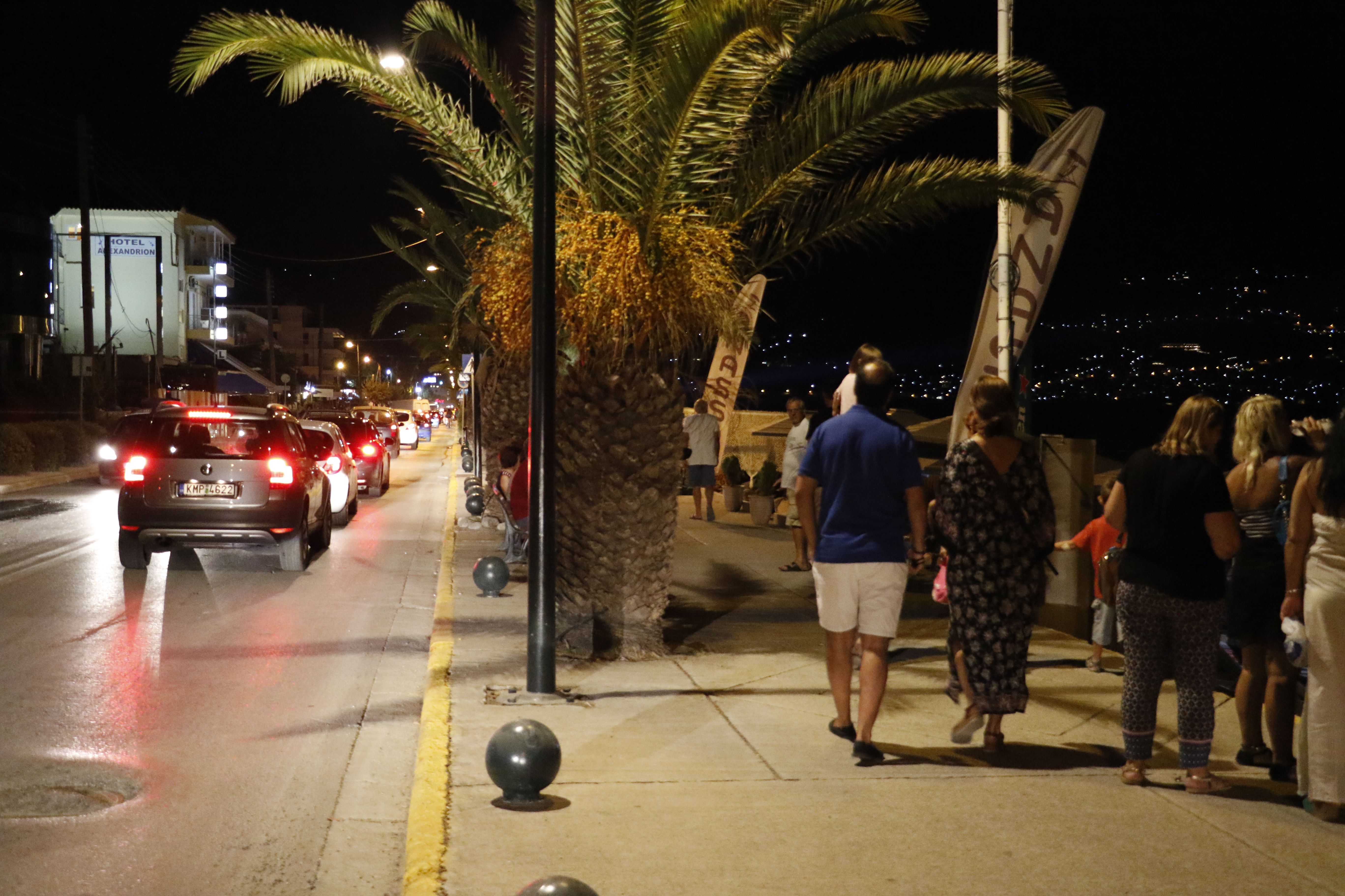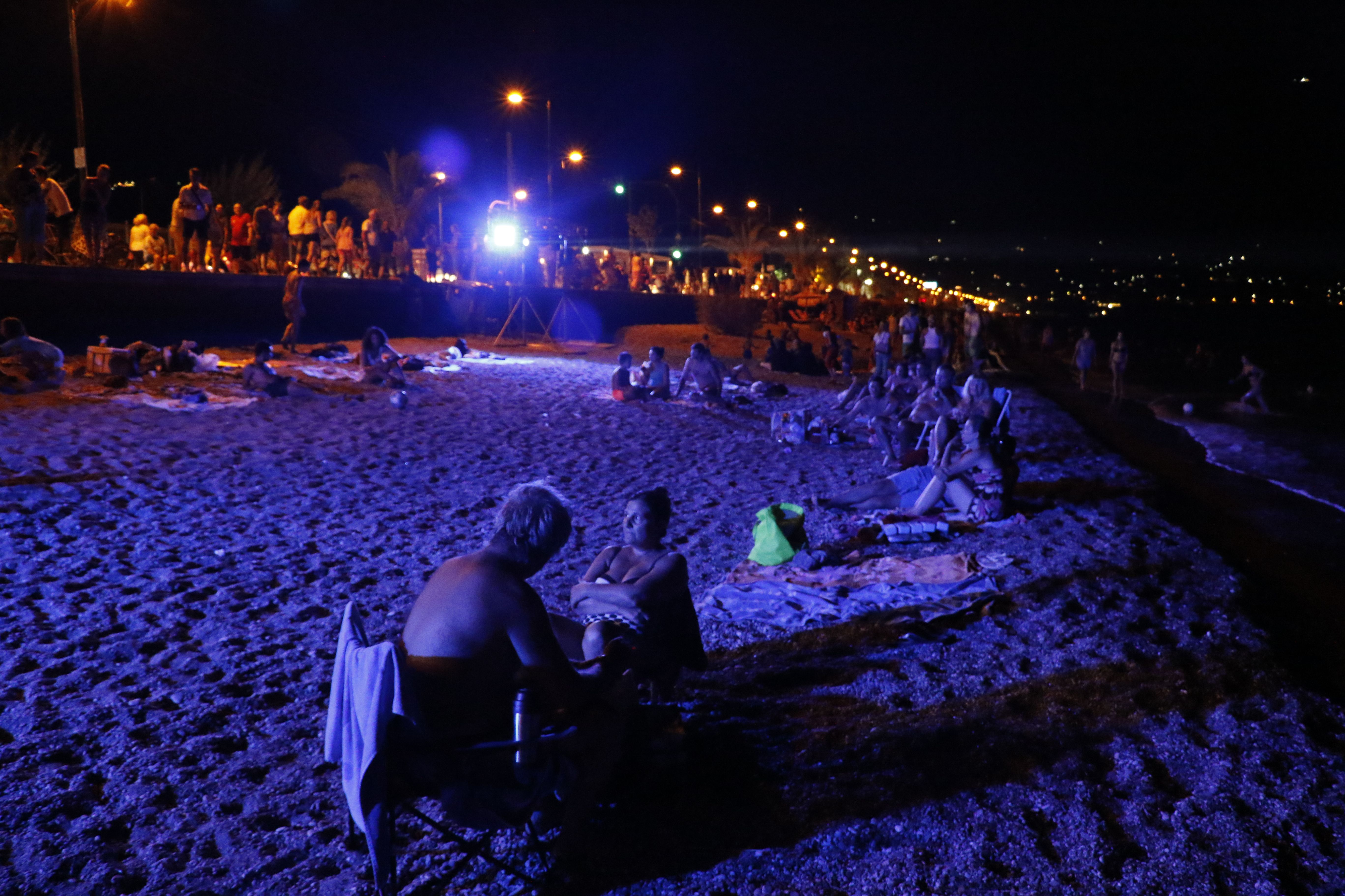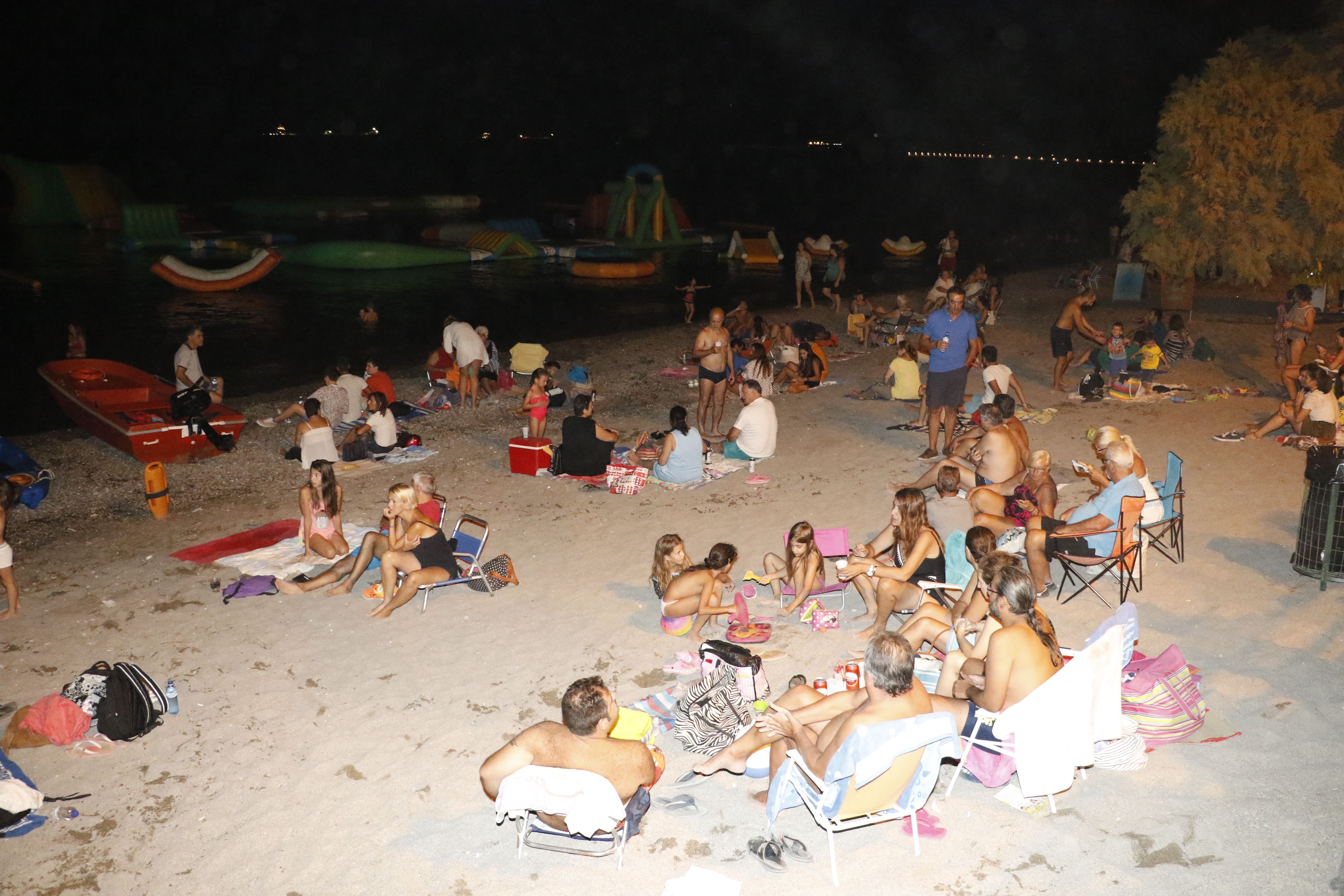 Πριν τις 9 το βράδυ της η οδός Ναυαρίνου πλημμύρισε από αυτοκίνητα και πεζούς που πήγαιναν για νυχτερινό μπάνιο. Λίγη ώρα αργότερα ο κόσμος κατέκλυζε την παραλία απολαμβάνοντας το μπάνιο του.