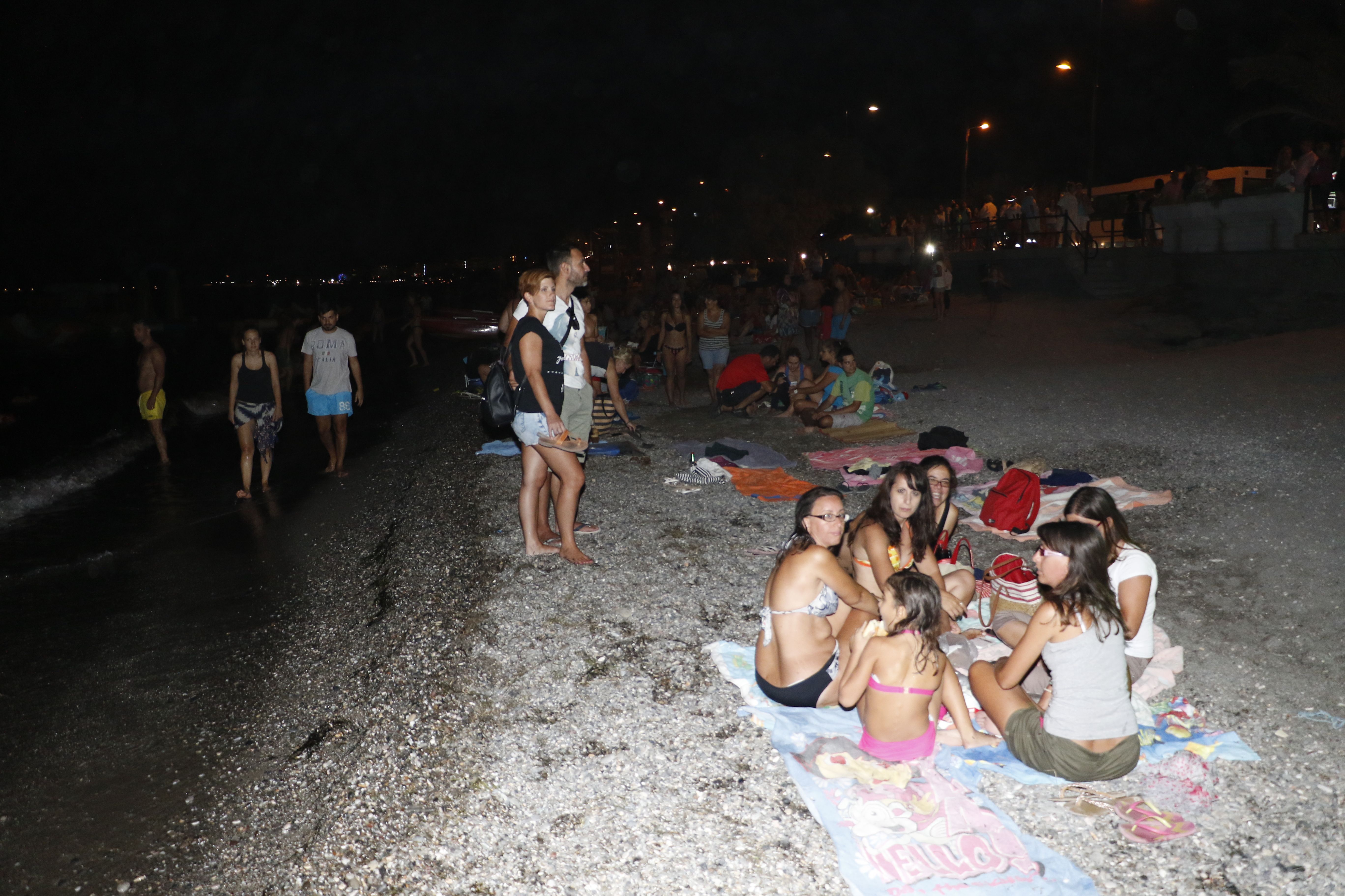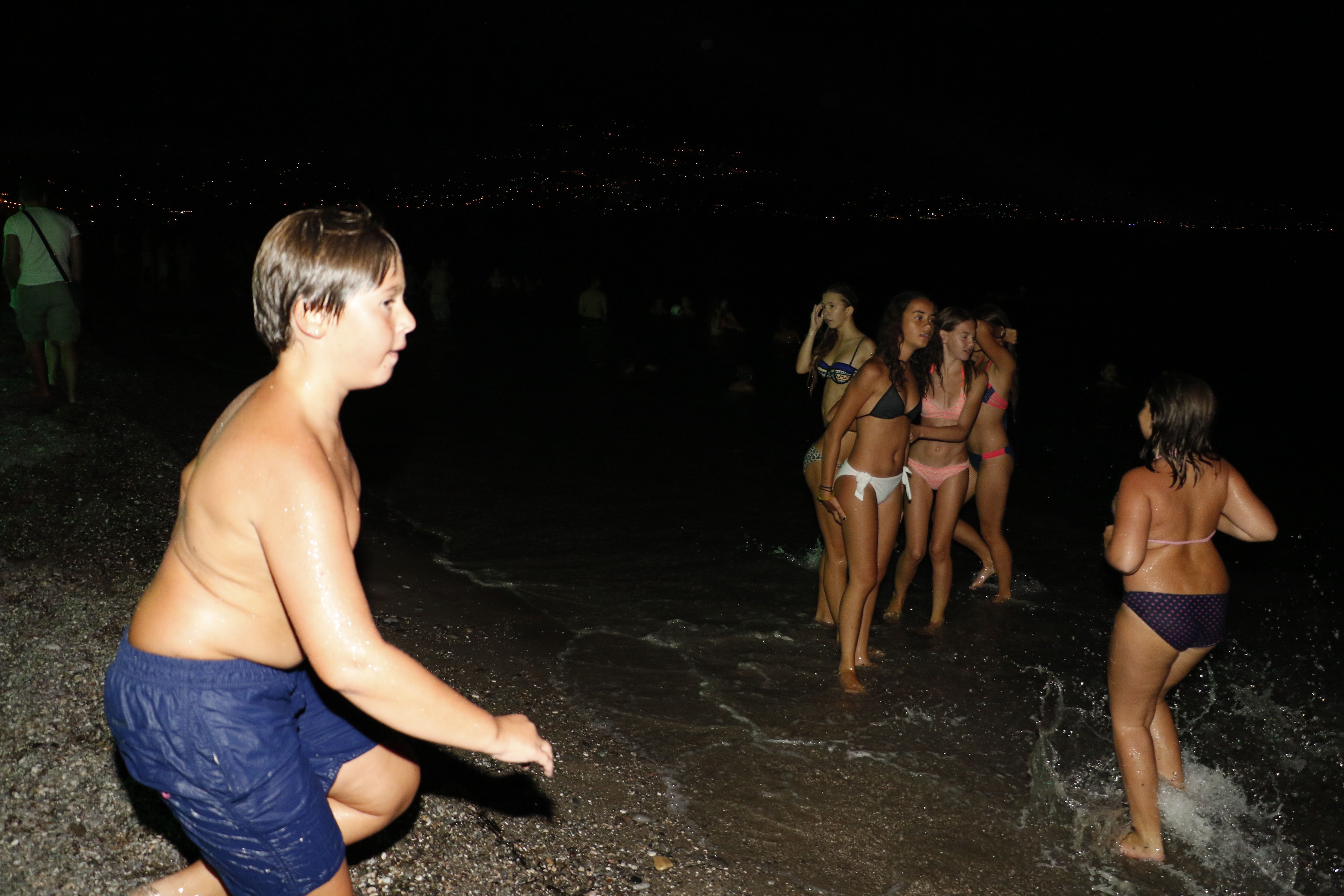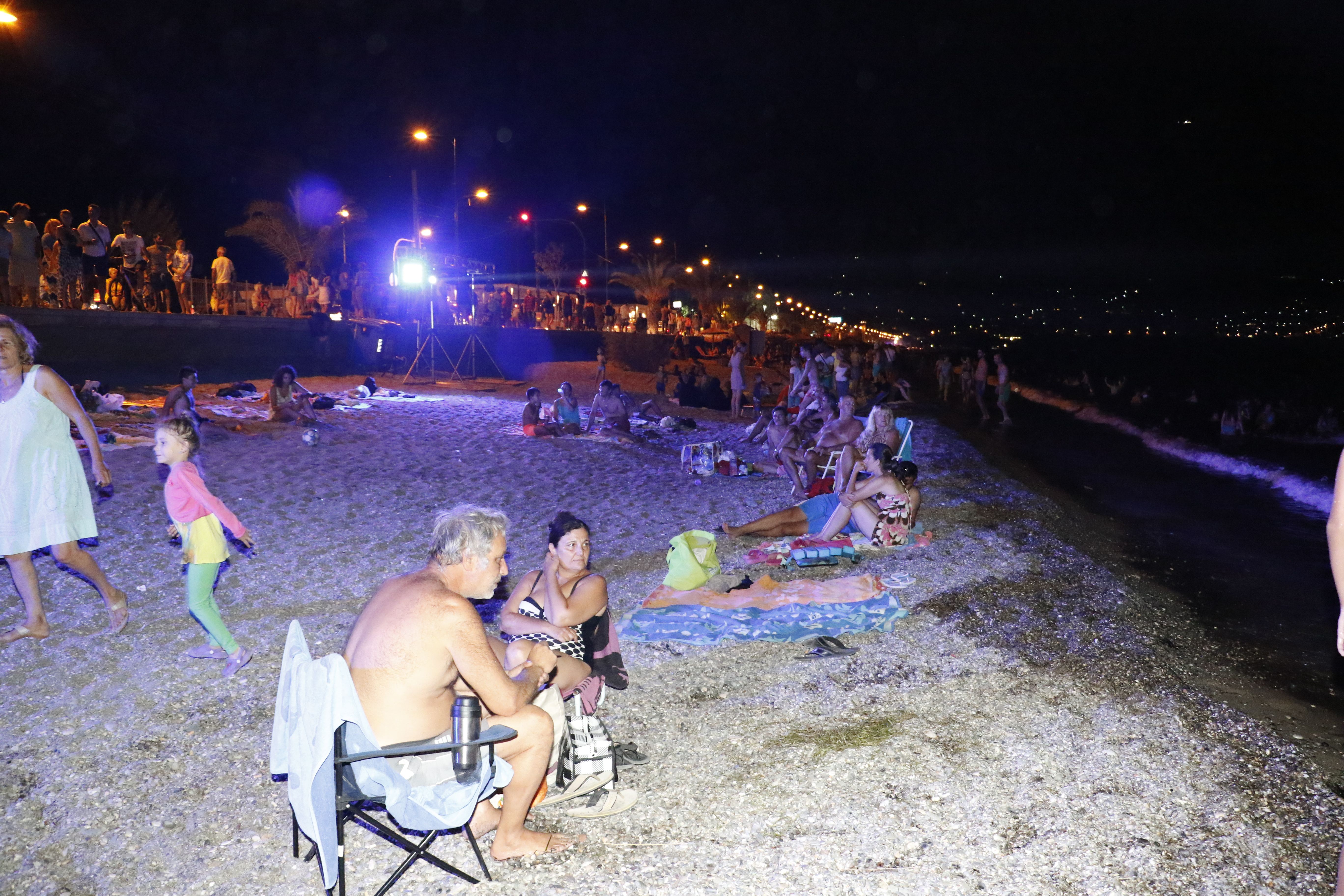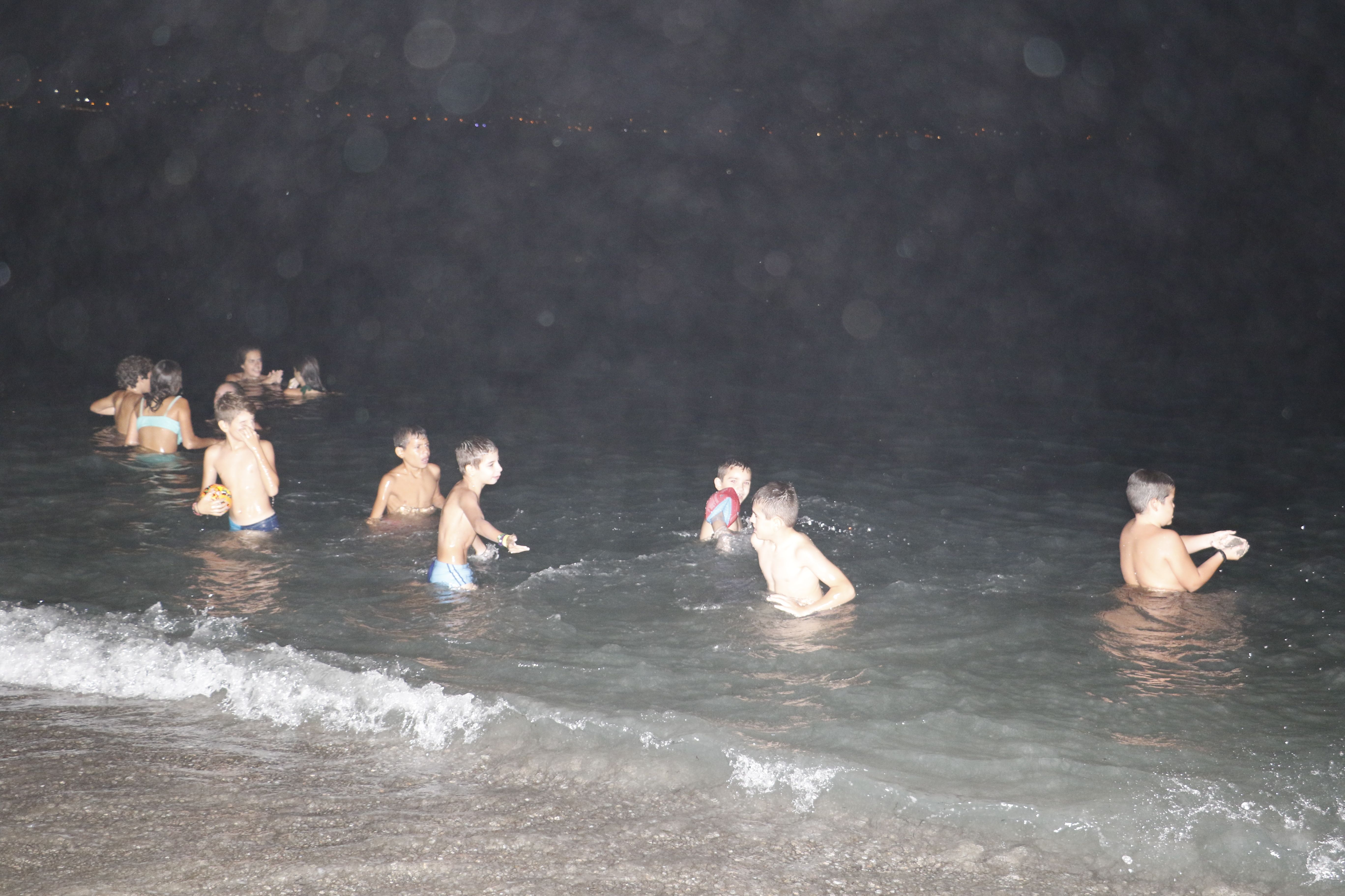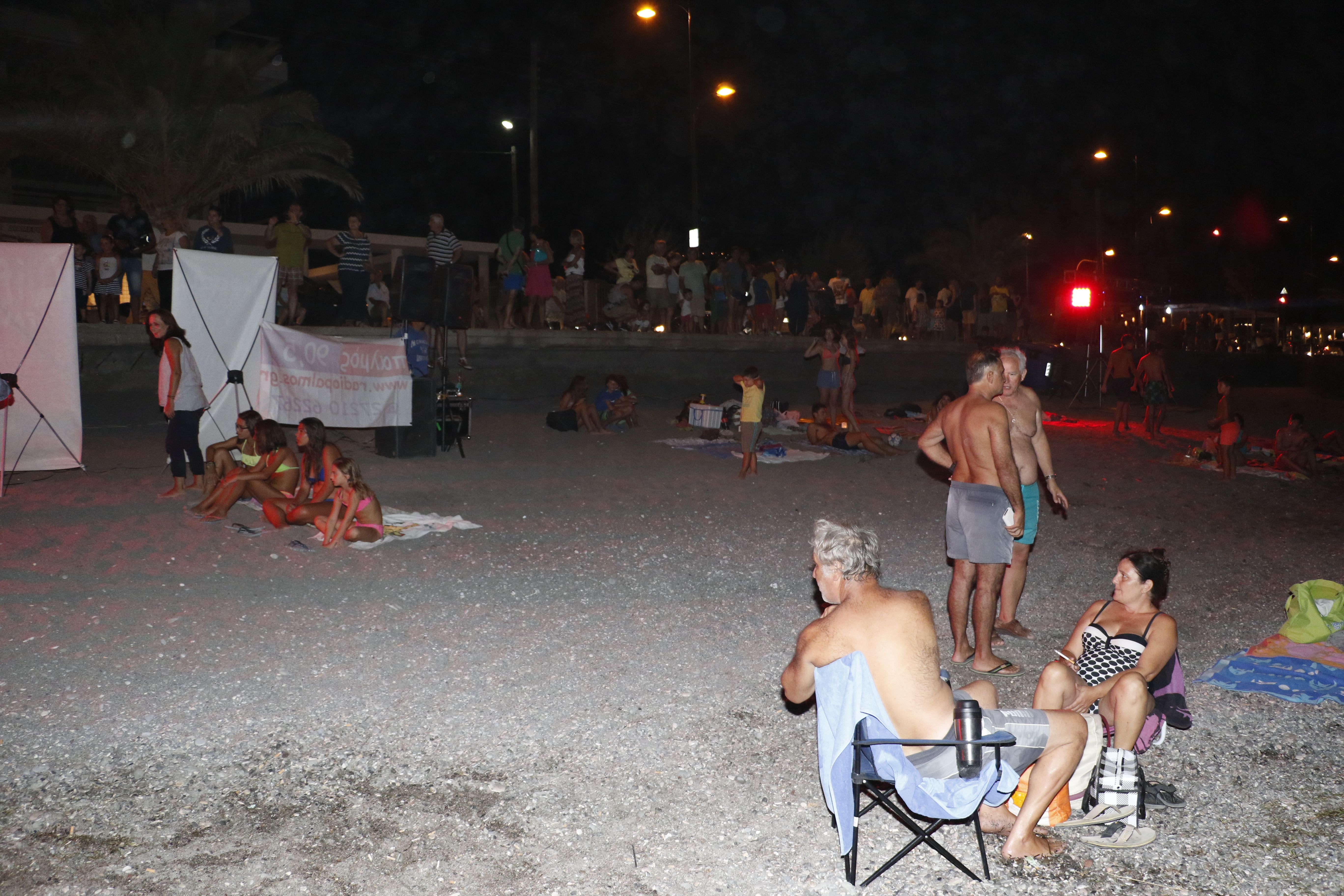 Πριν τις 9 το βράδυ της η οδός Ναυαρίνου πλημμύρισε από αυτοκίνητα και πεζούς που πήγαιναν για νυχτερινό μπάνιο. Λίγη ώρα αργότερα ο κόσμος κατέκλυζε την παραλία απολαμβάνοντας το μπάνιο του.
