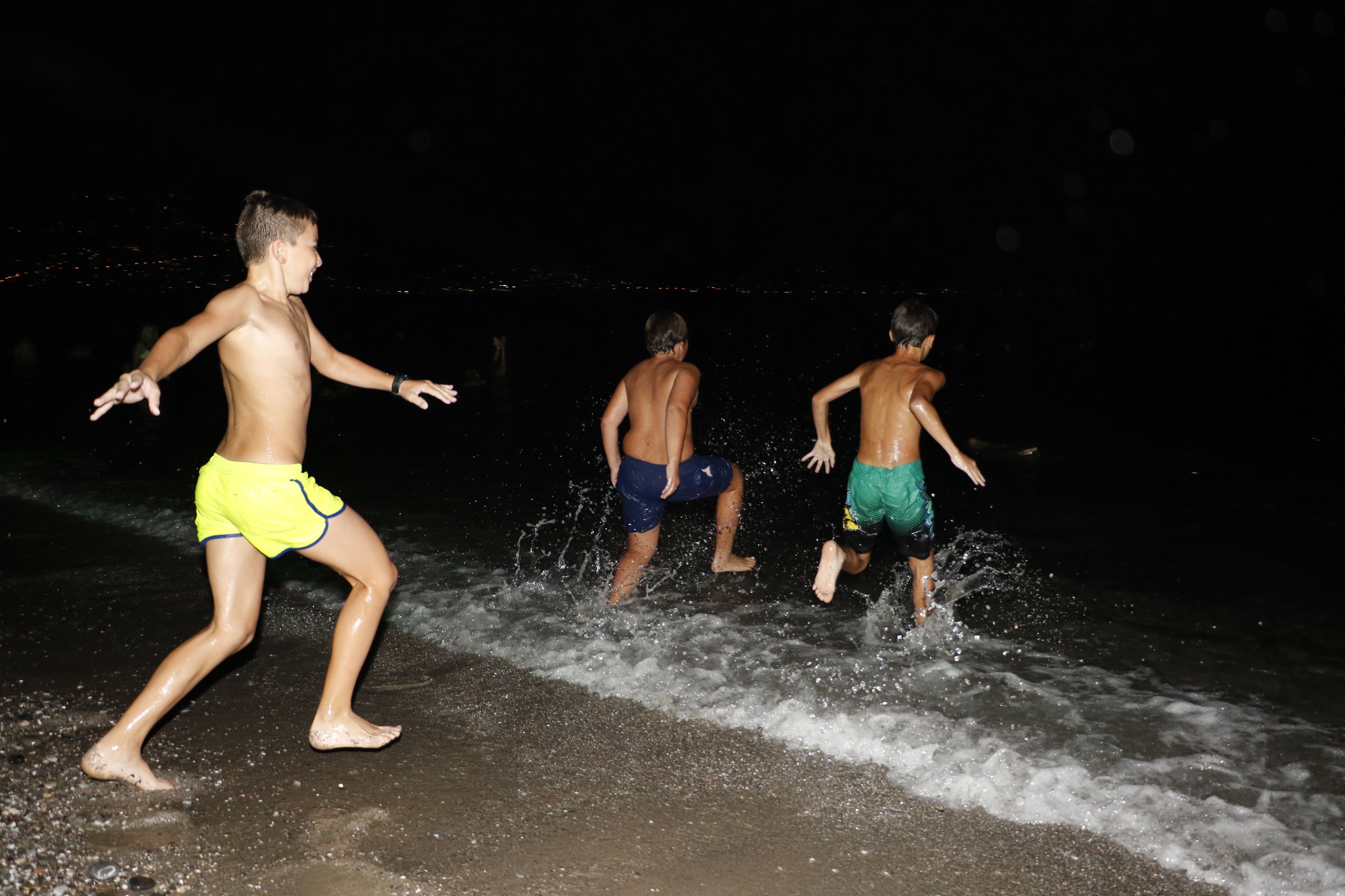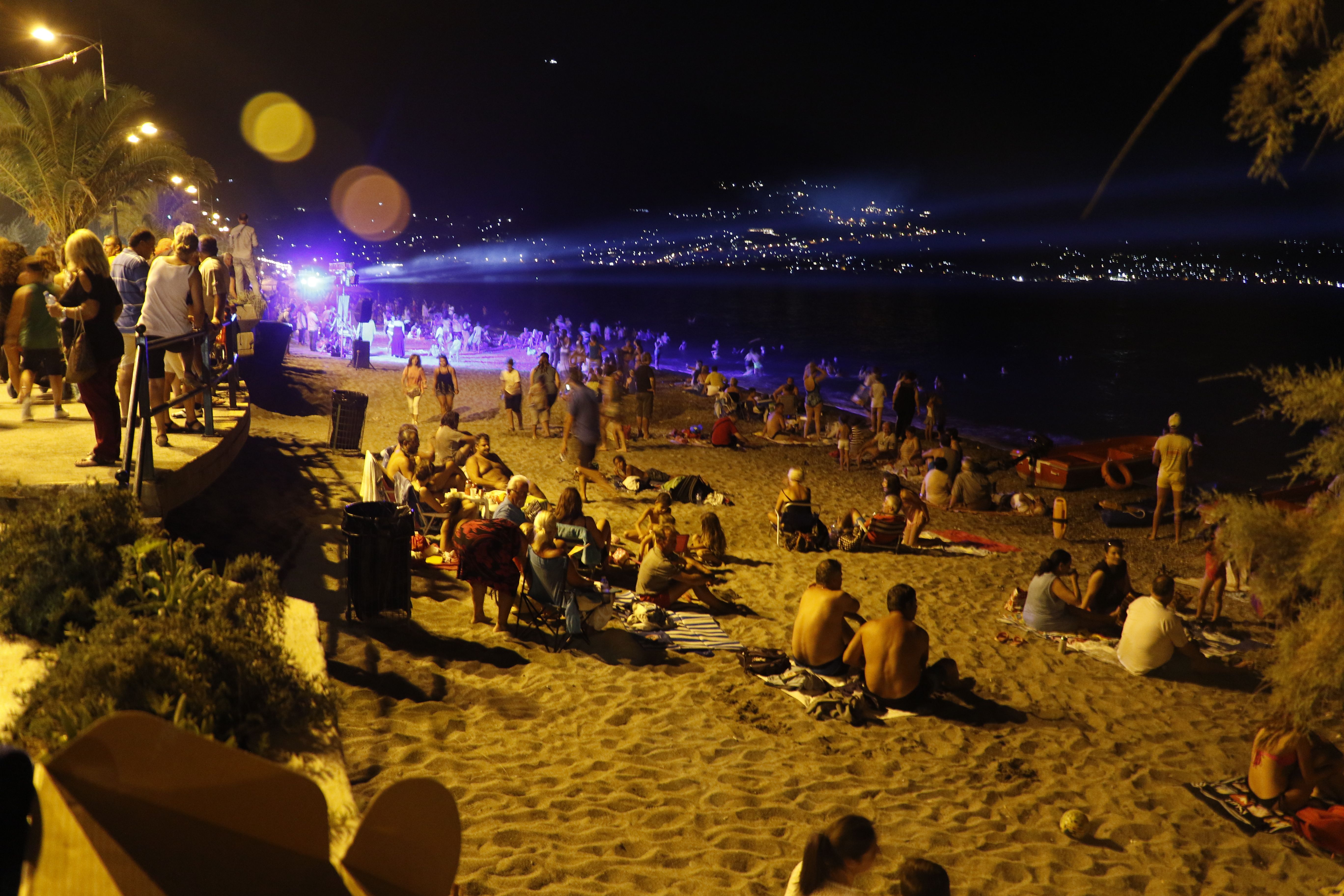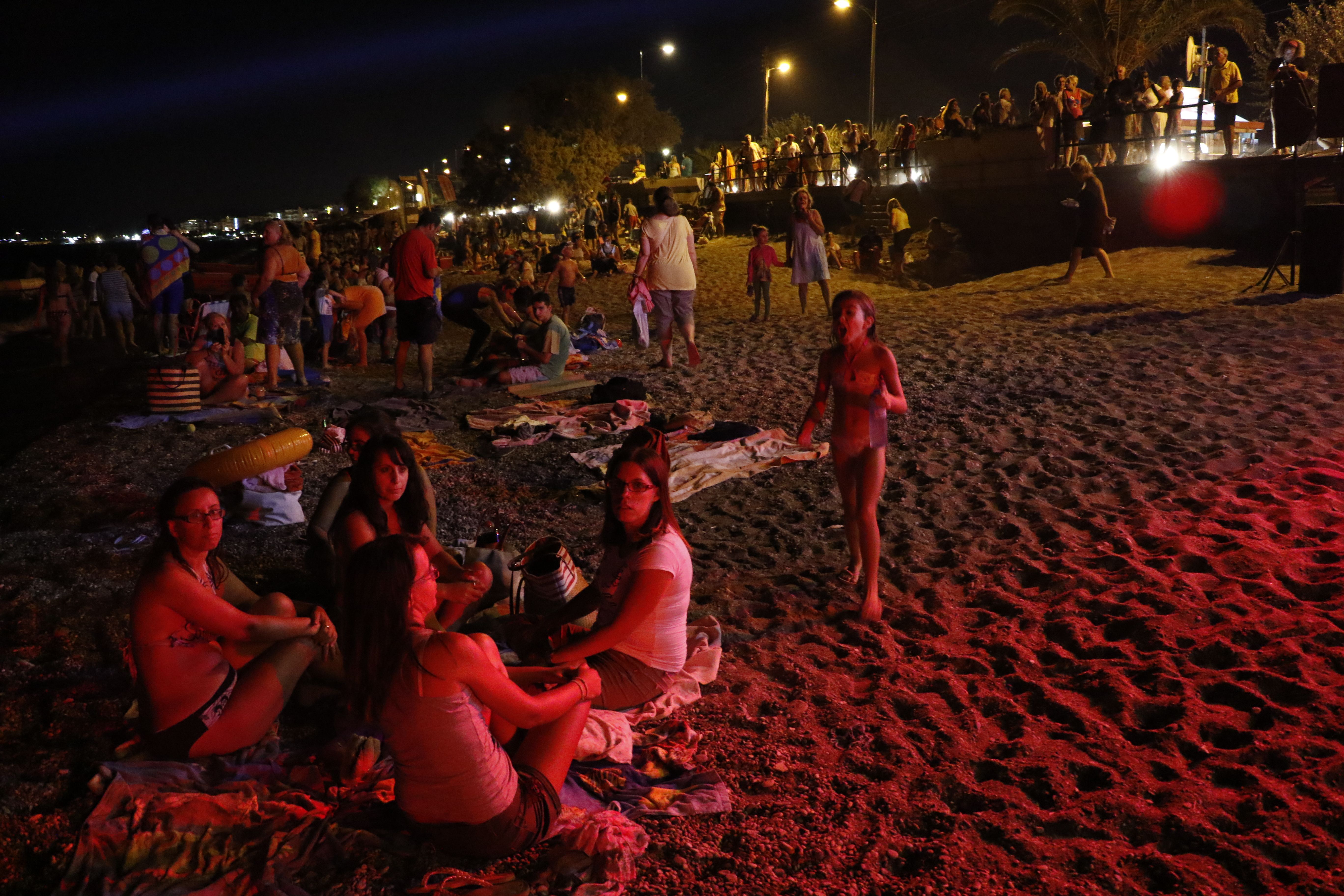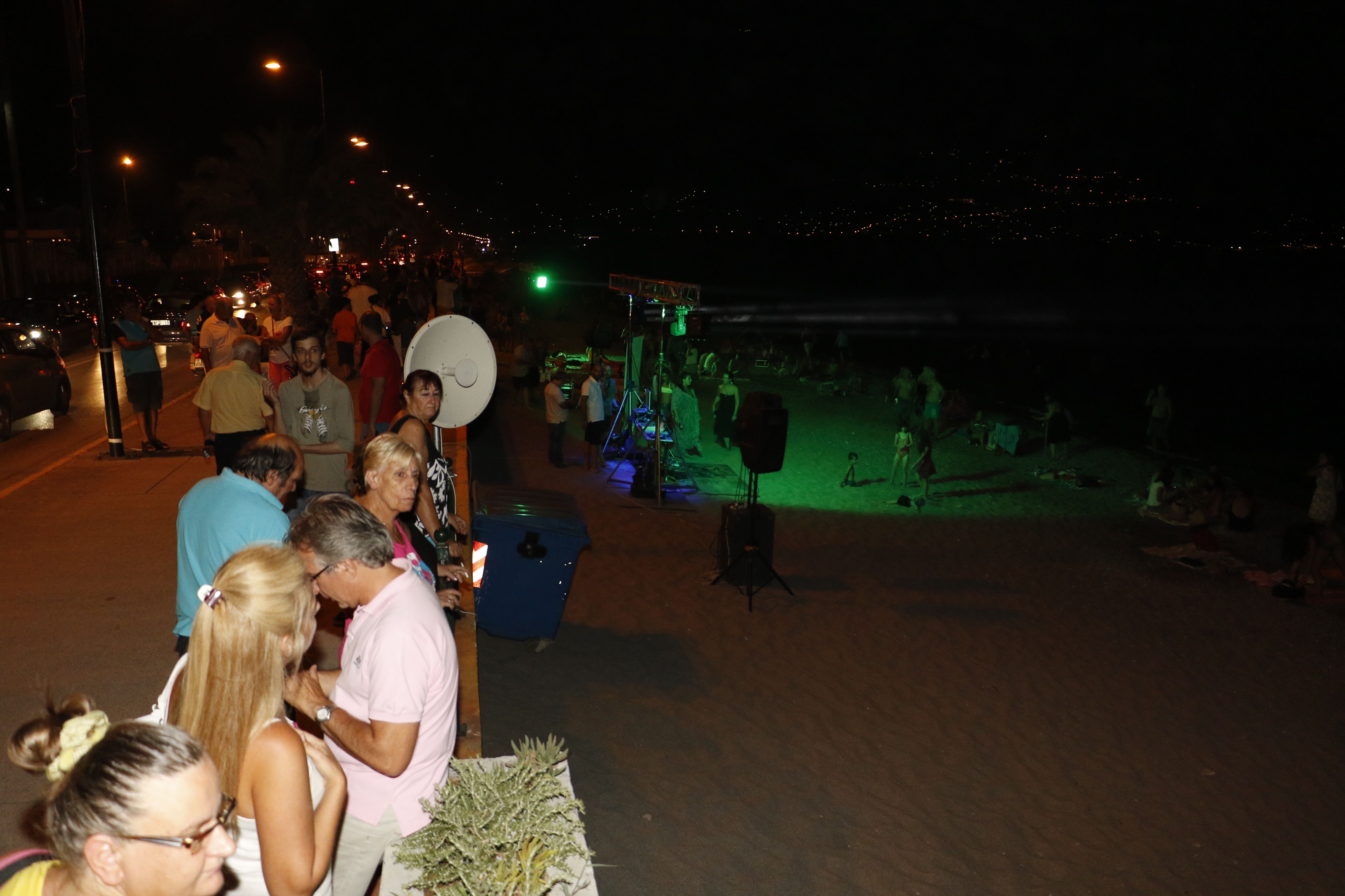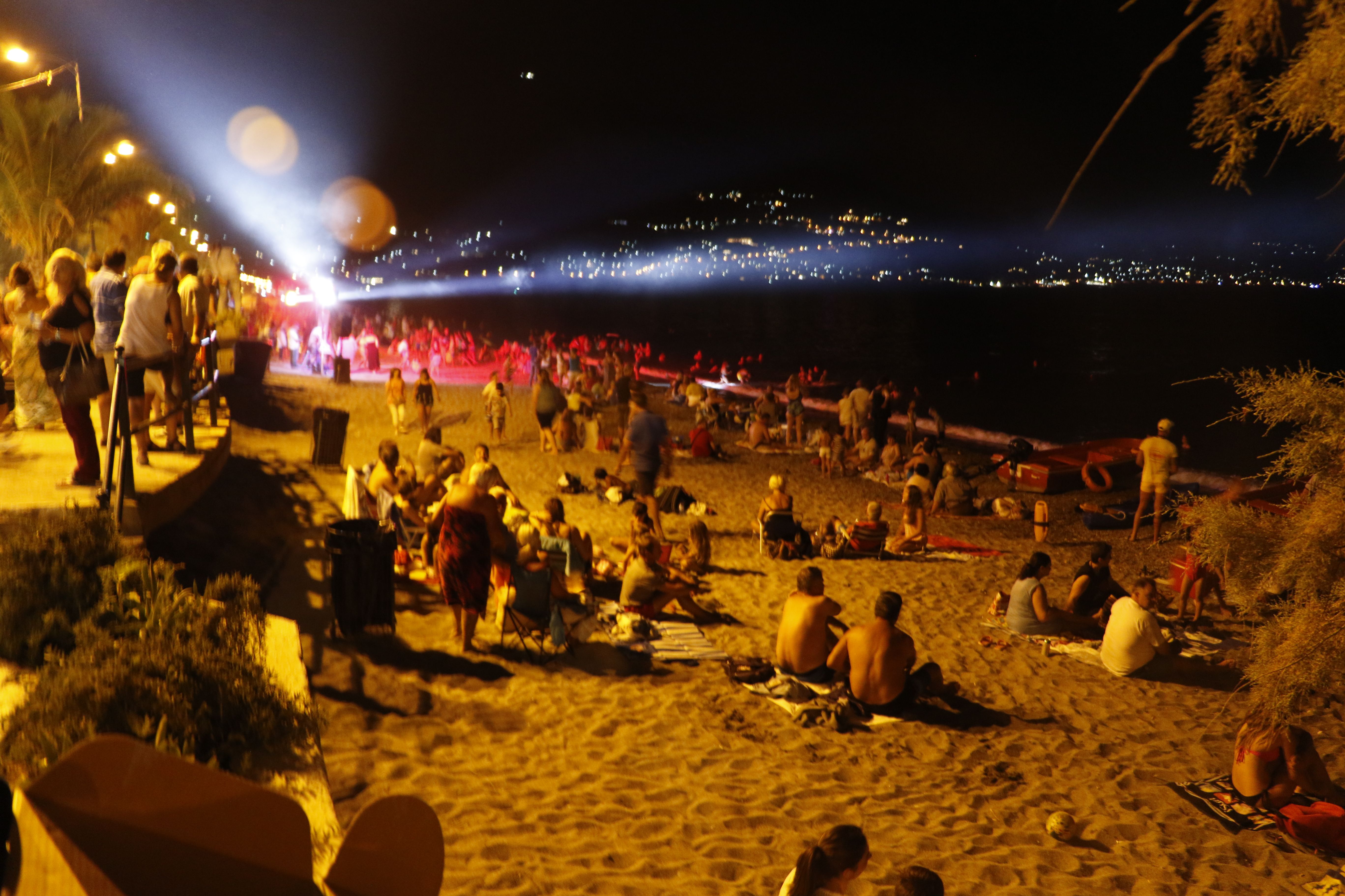 Πριν τις 9 το βράδυ της η οδός Ναυαρίνου πλημμύρισε από αυτοκίνητα και πεζούς που πήγαιναν για νυχτερινό μπάνιο. Λίγη ώρα αργότερα ο κόσμος κατέκλυζε την παραλία απολαμβάνοντας το μπάνιο του.