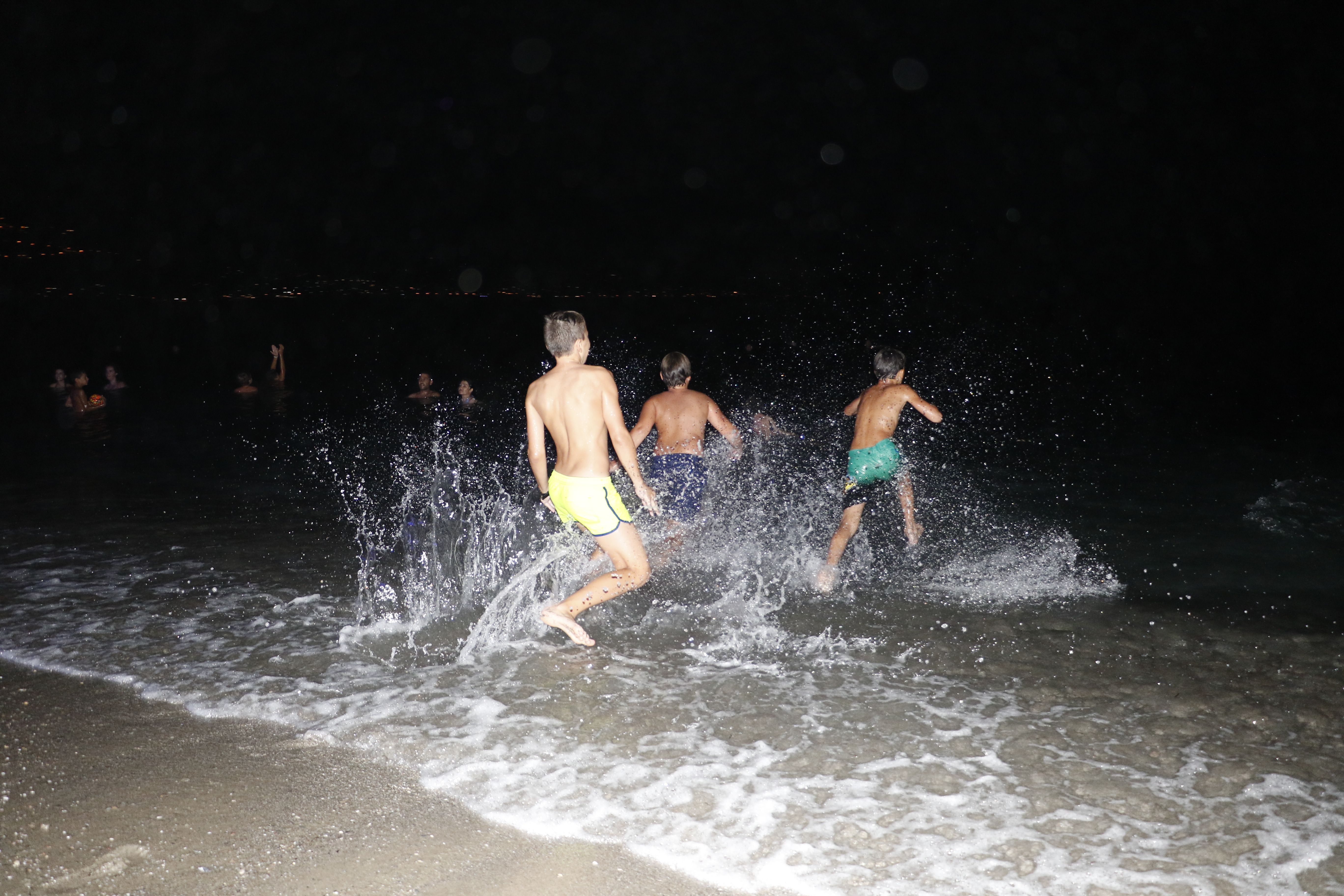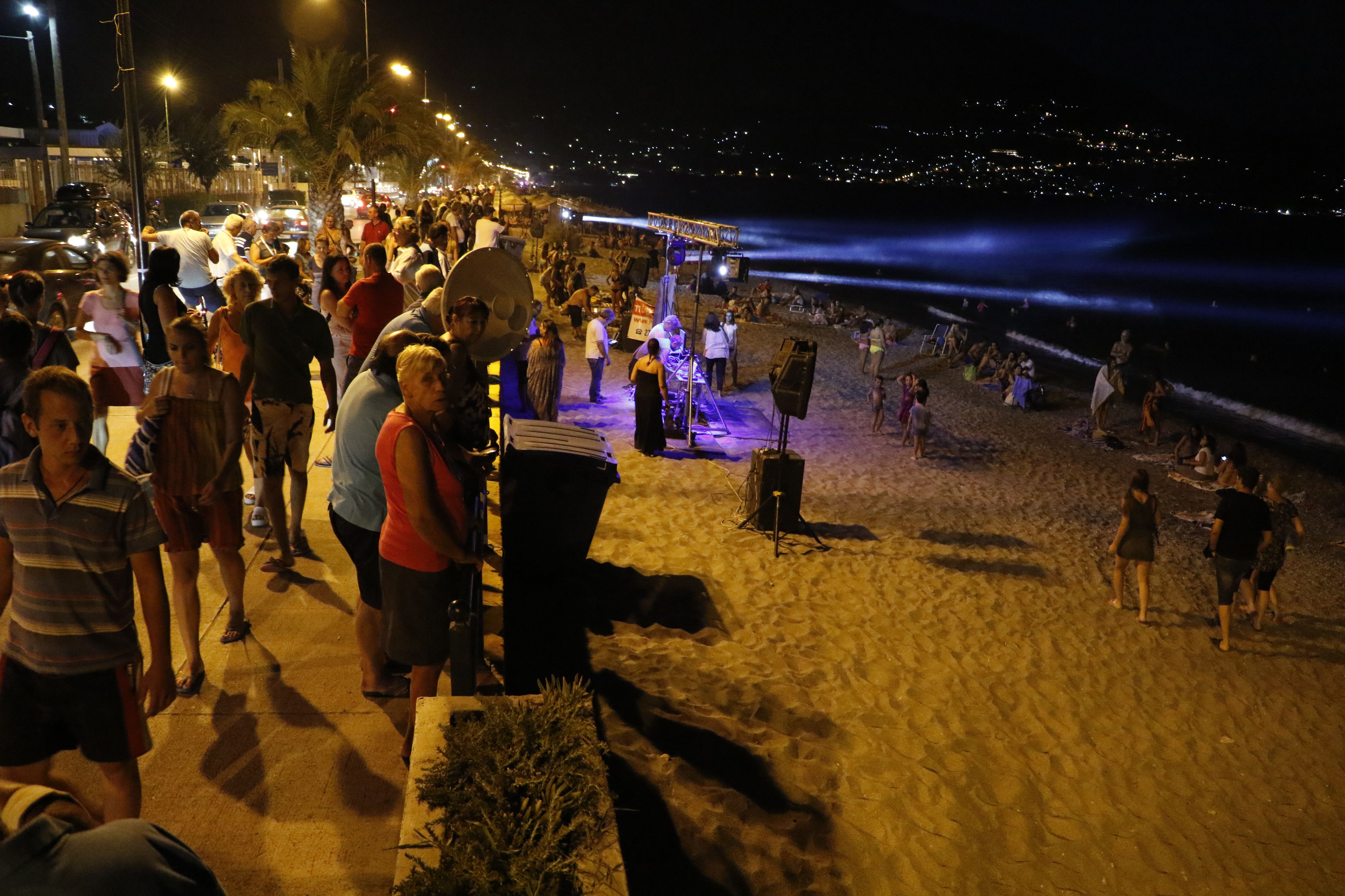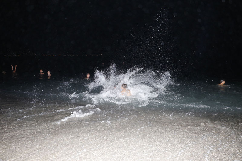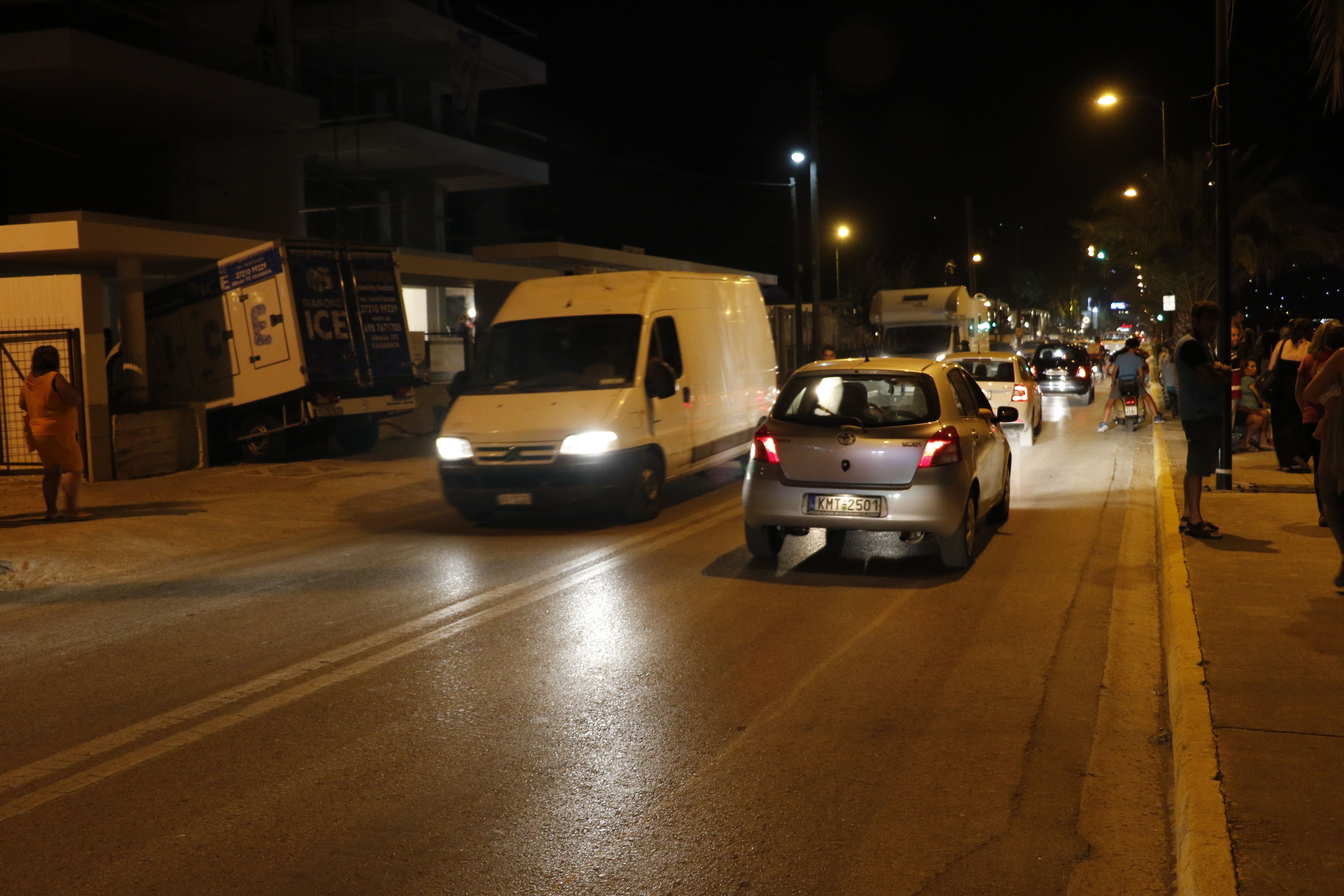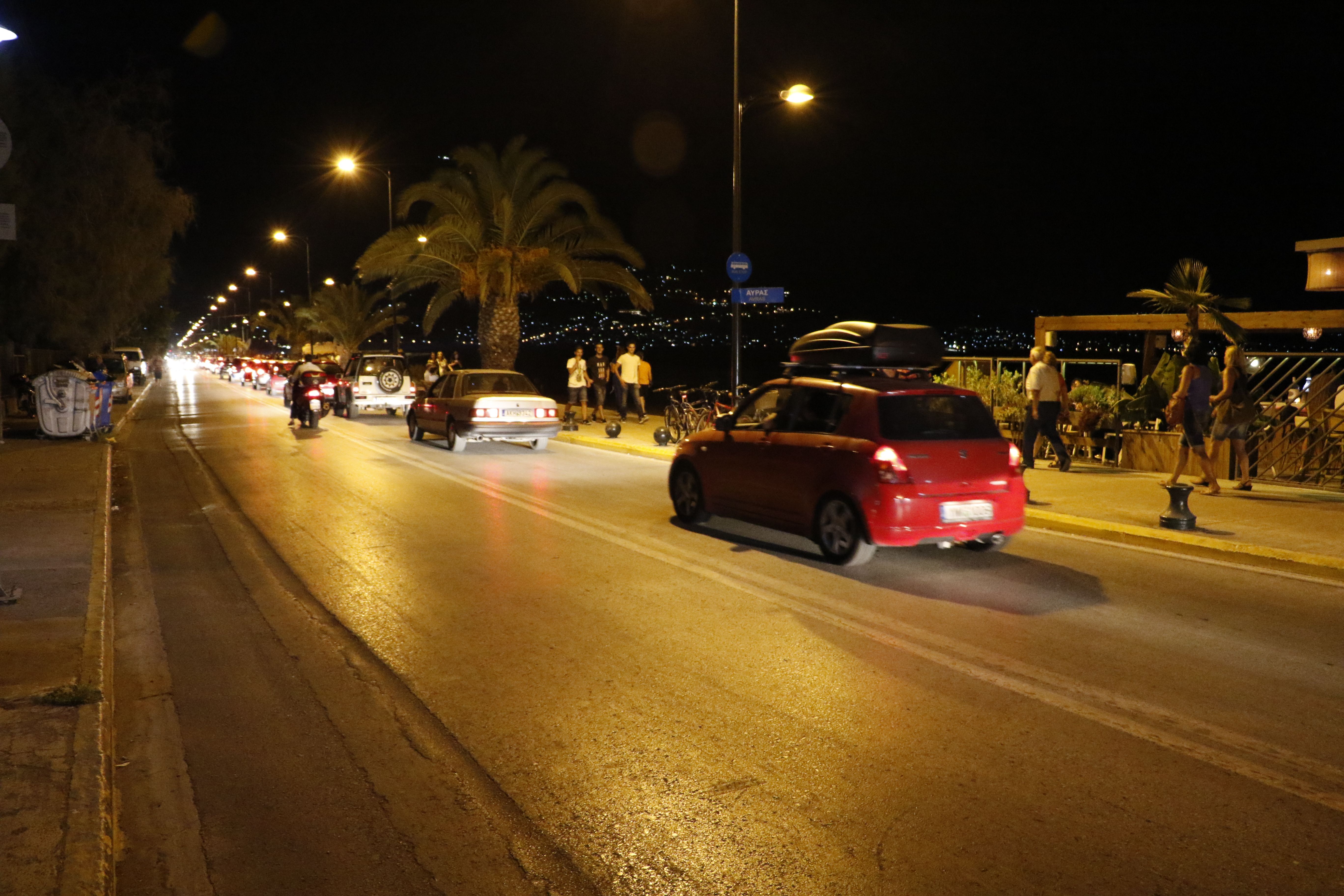 Πριν τις 9 το βράδυ της η οδός Ναυαρίνου πλημμύρισε από αυτοκίνητα και πεζούς που πήγαιναν για νυχτερινό μπάνιο. Λίγη ώρα αργότερα ο κόσμος κατέκλυζε την παραλία απολαμβάνοντας το μπάνιο του.