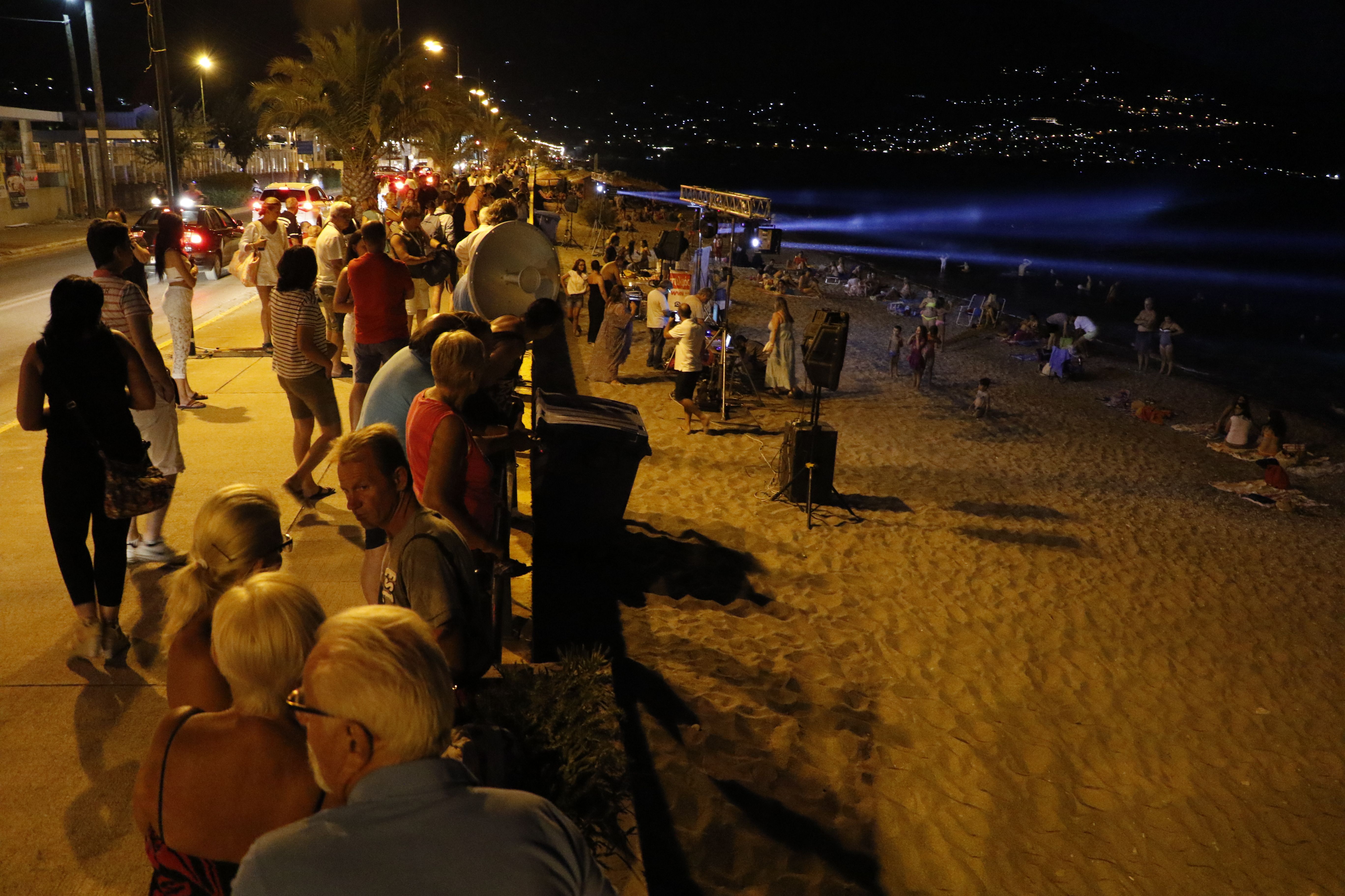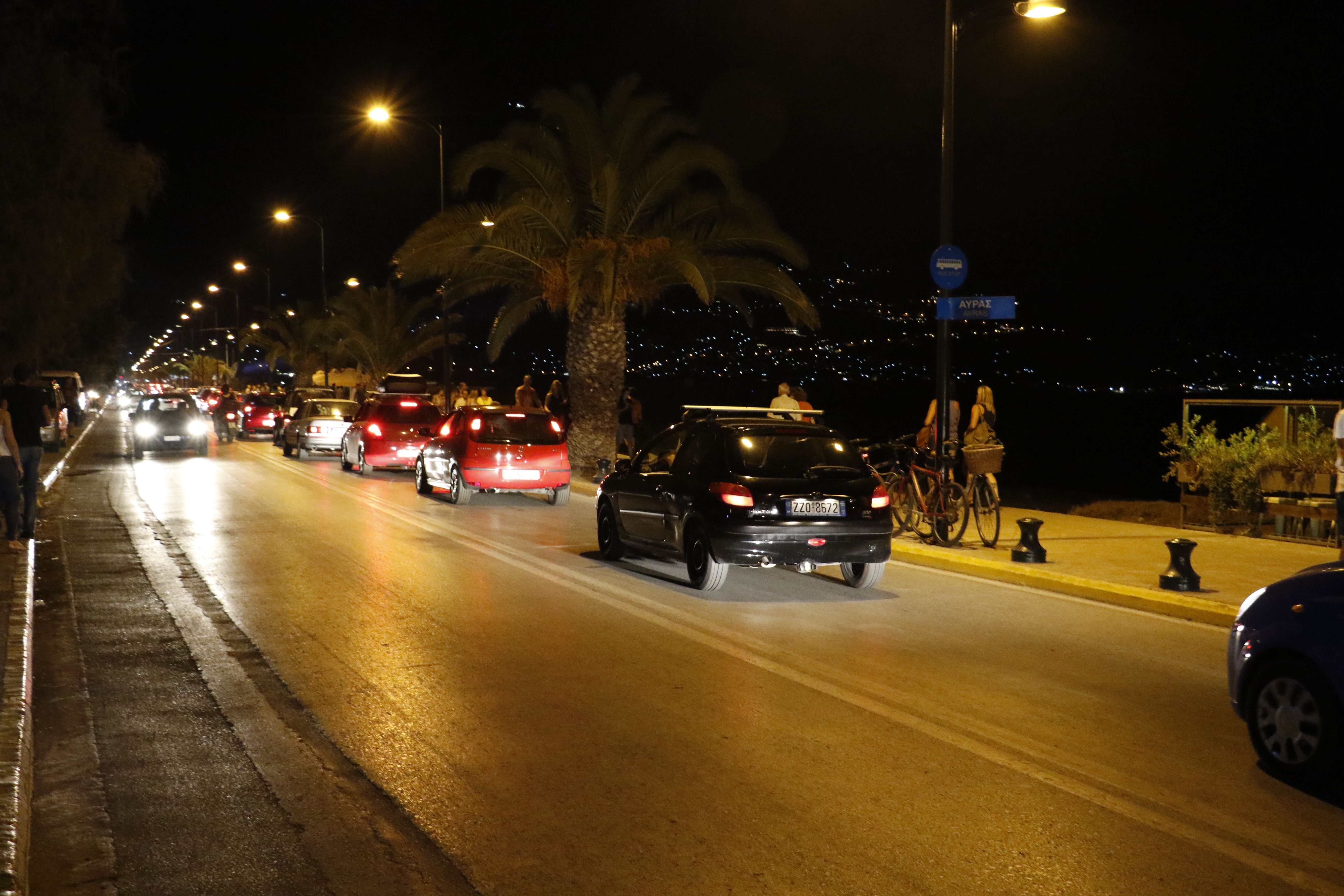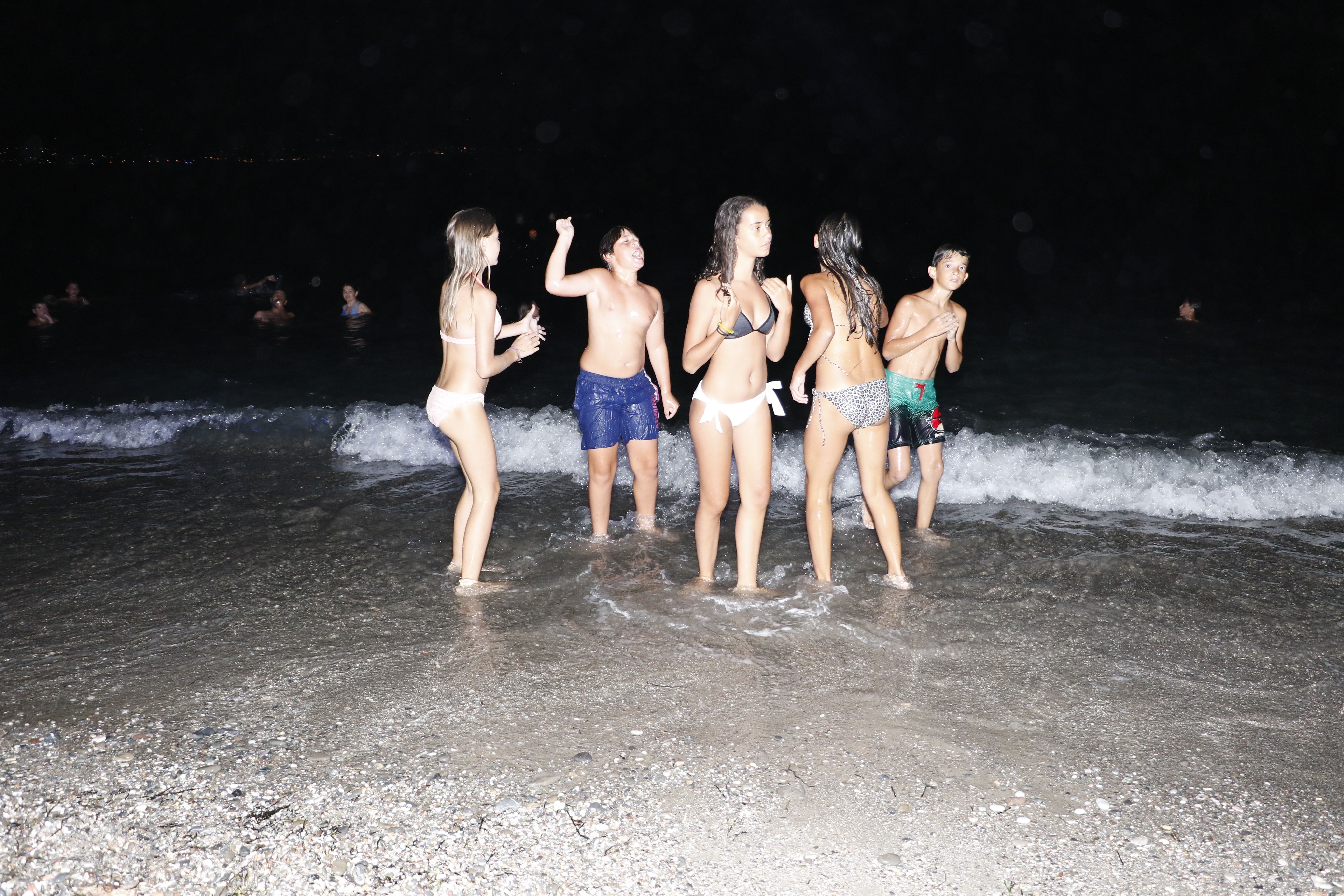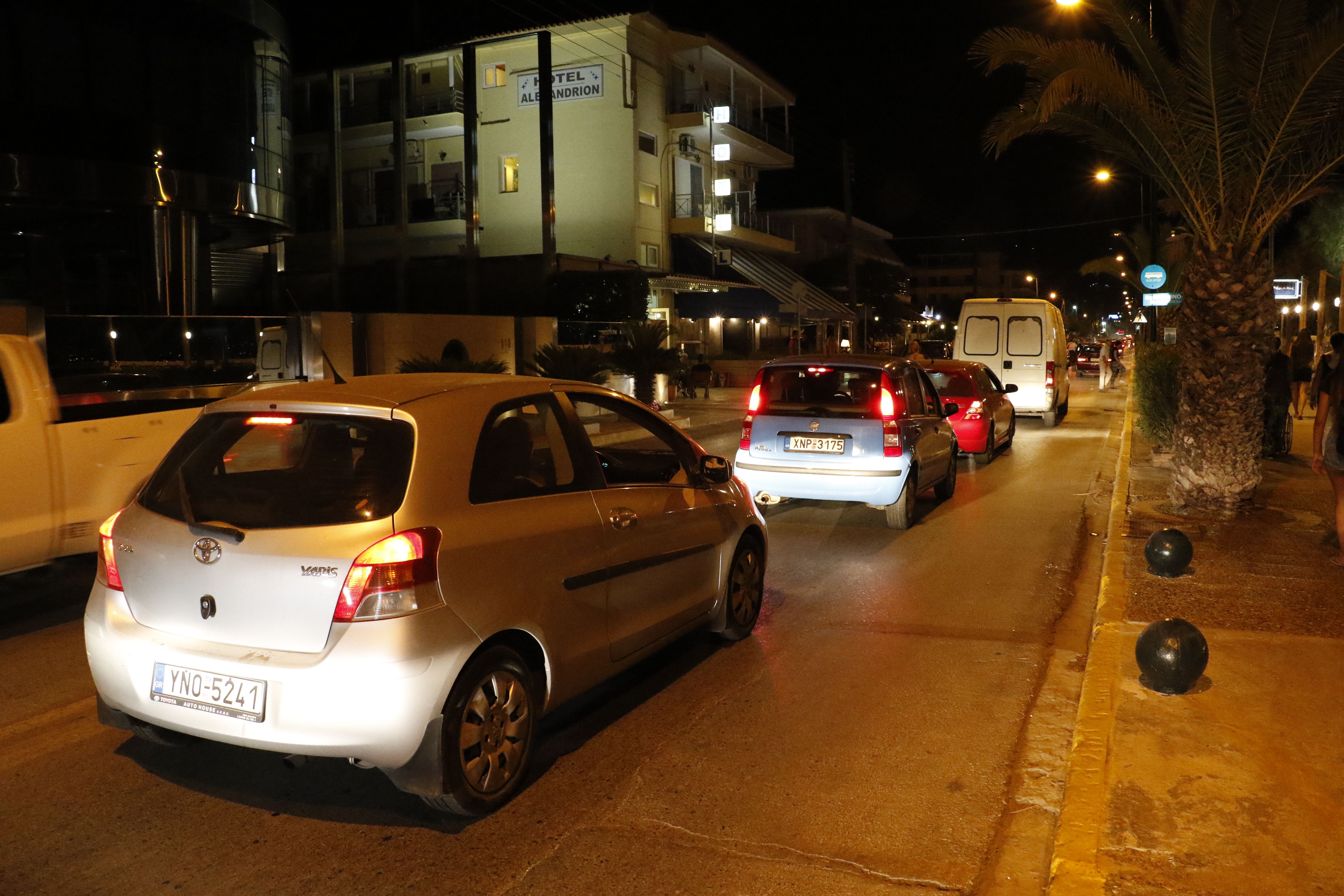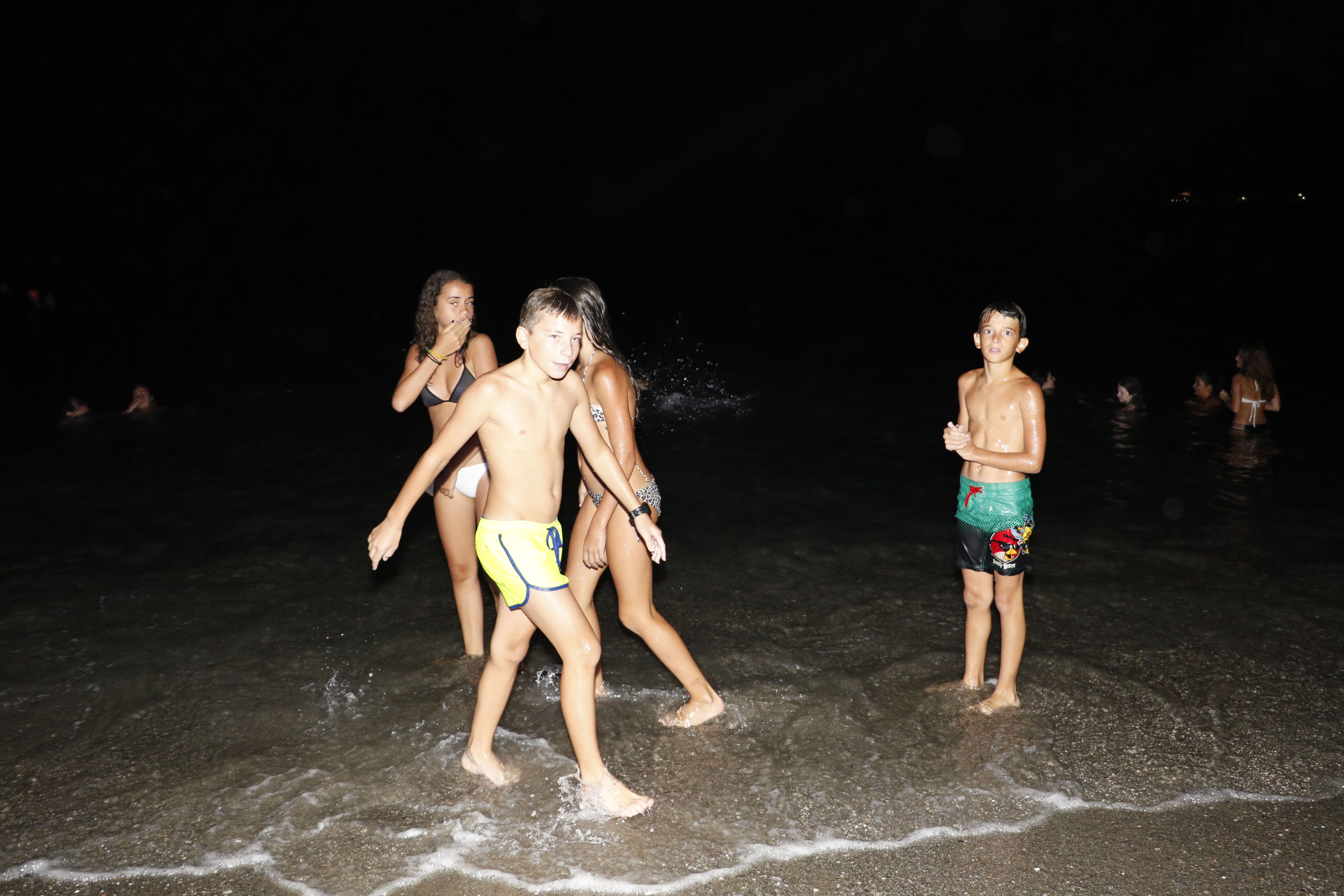 Πριν τις 9 το βράδυ της η οδός Ναυαρίνου πλημμύρισε από αυτοκίνητα και πεζούς που πήγαιναν για νυχτερινό μπάνιο. Λίγη ώρα αργότερα ο κόσμος κατέκλυζε την παραλία απολαμβάνοντας το μπάνιο του.