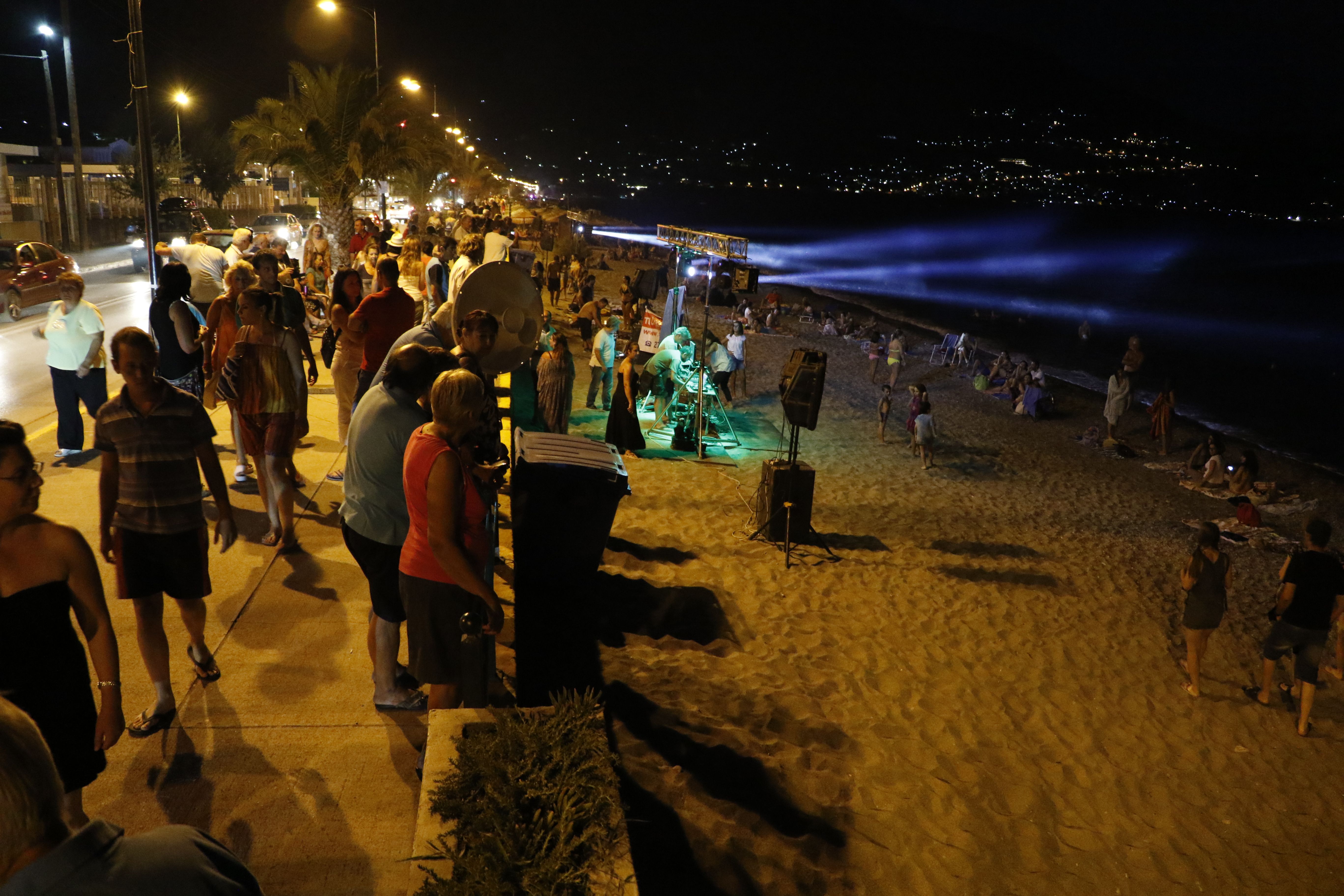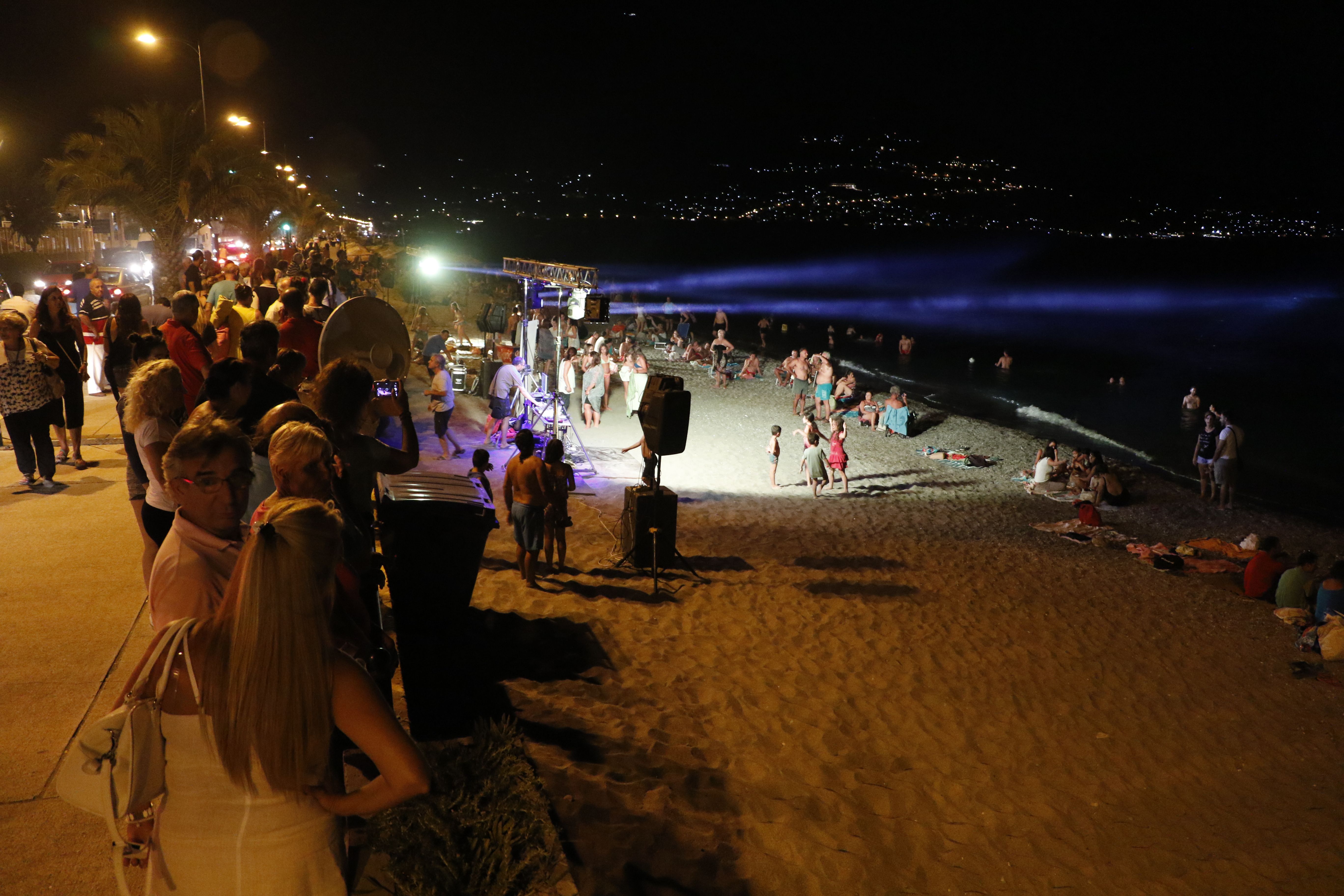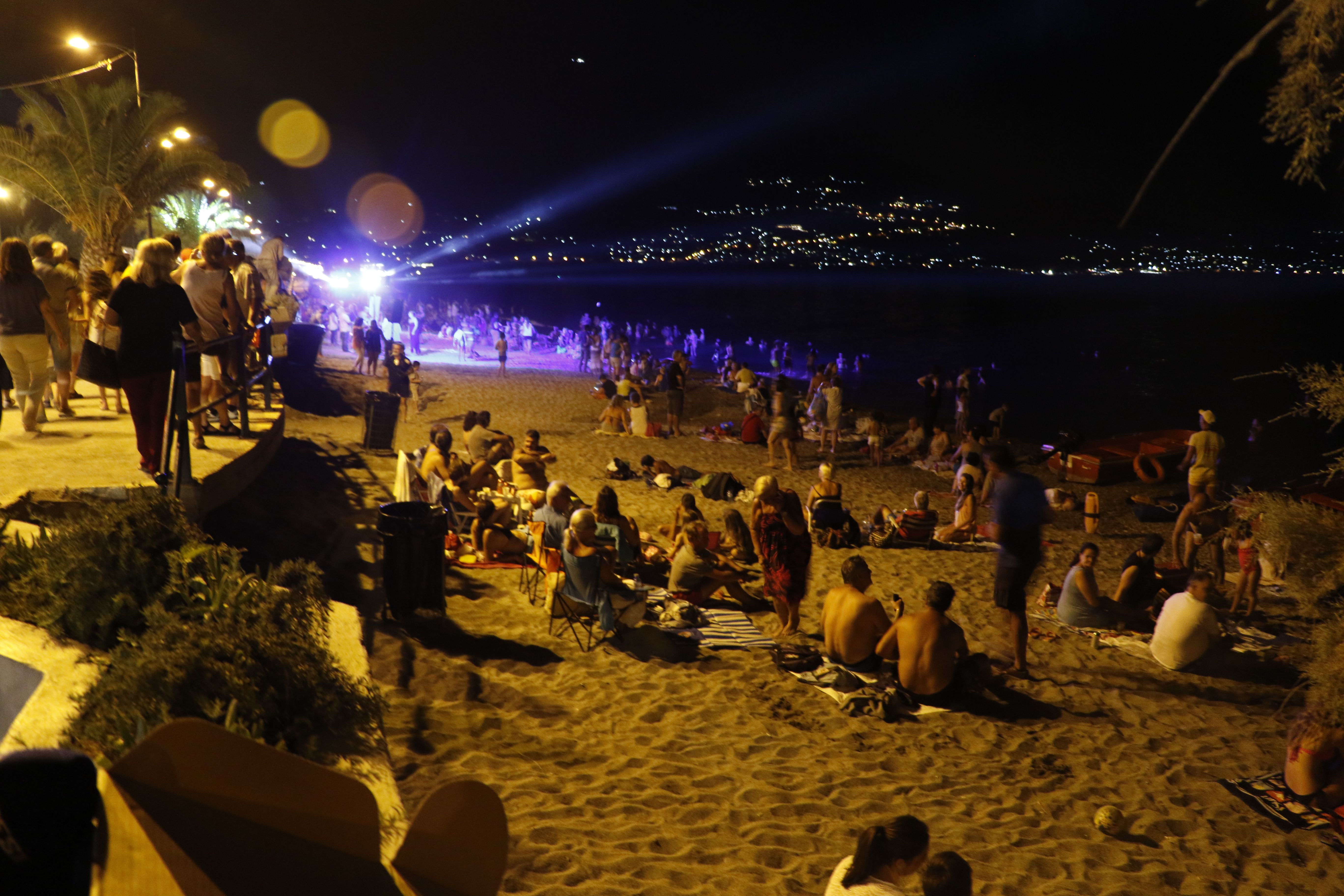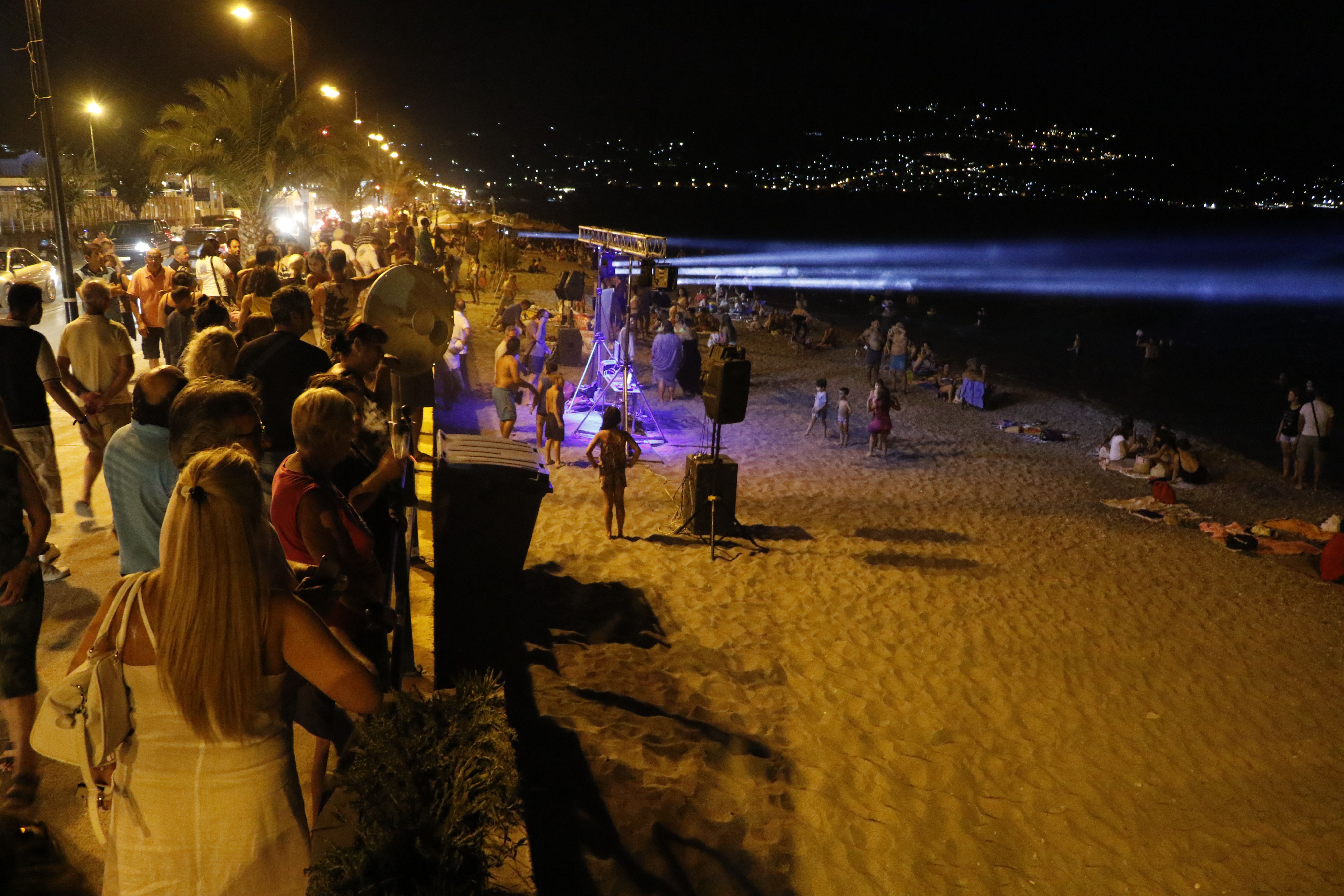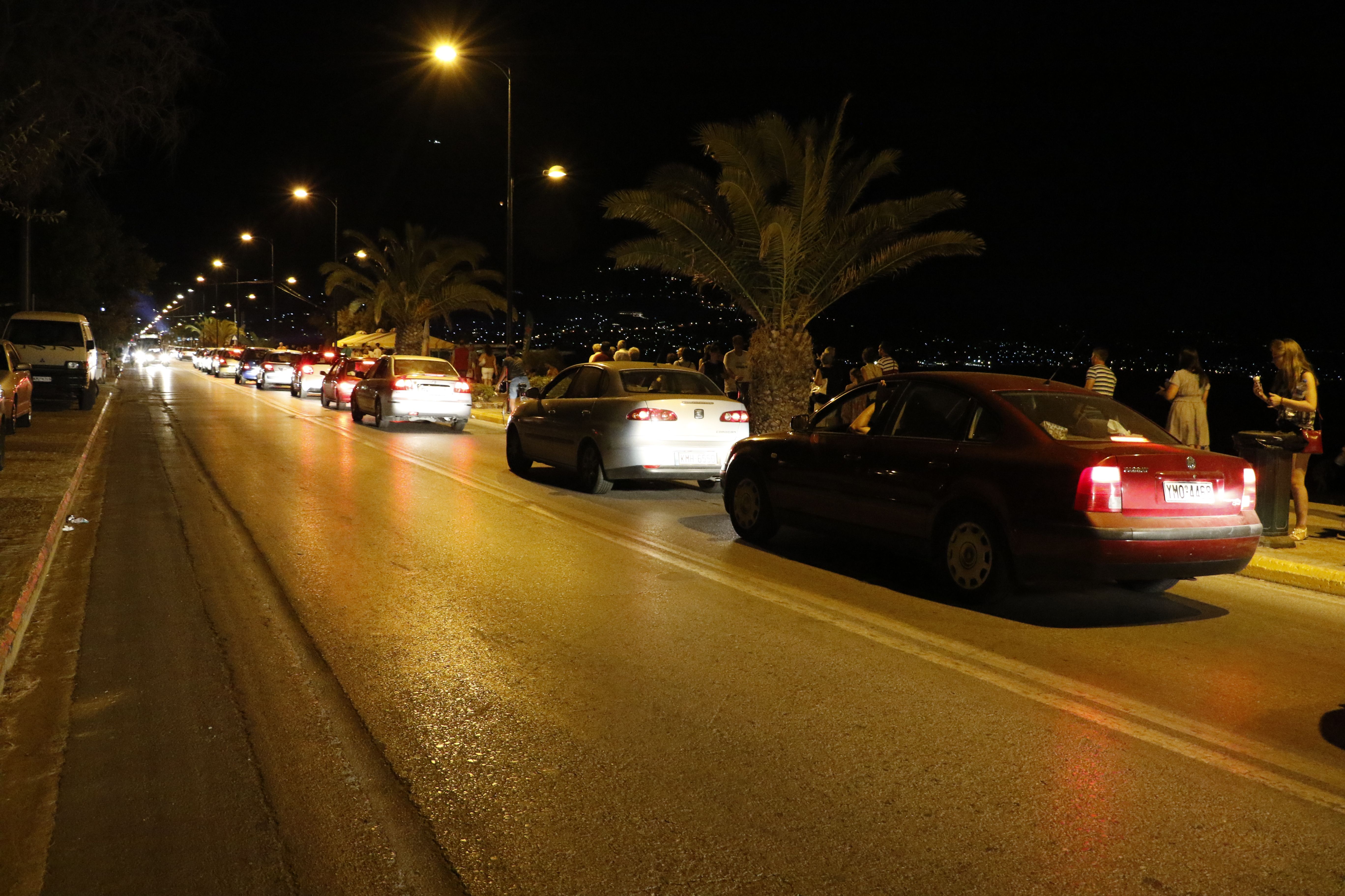 Πριν τις 9 το βράδυ της η οδός Ναυαρίνου πλημμύρισε από αυτοκίνητα και πεζούς που πήγαιναν για νυχτερινό μπάνιο. Λίγη ώρα αργότερα ο κόσμος κατέκλυζε την παραλία απολαμβάνοντας το μπάνιο του.