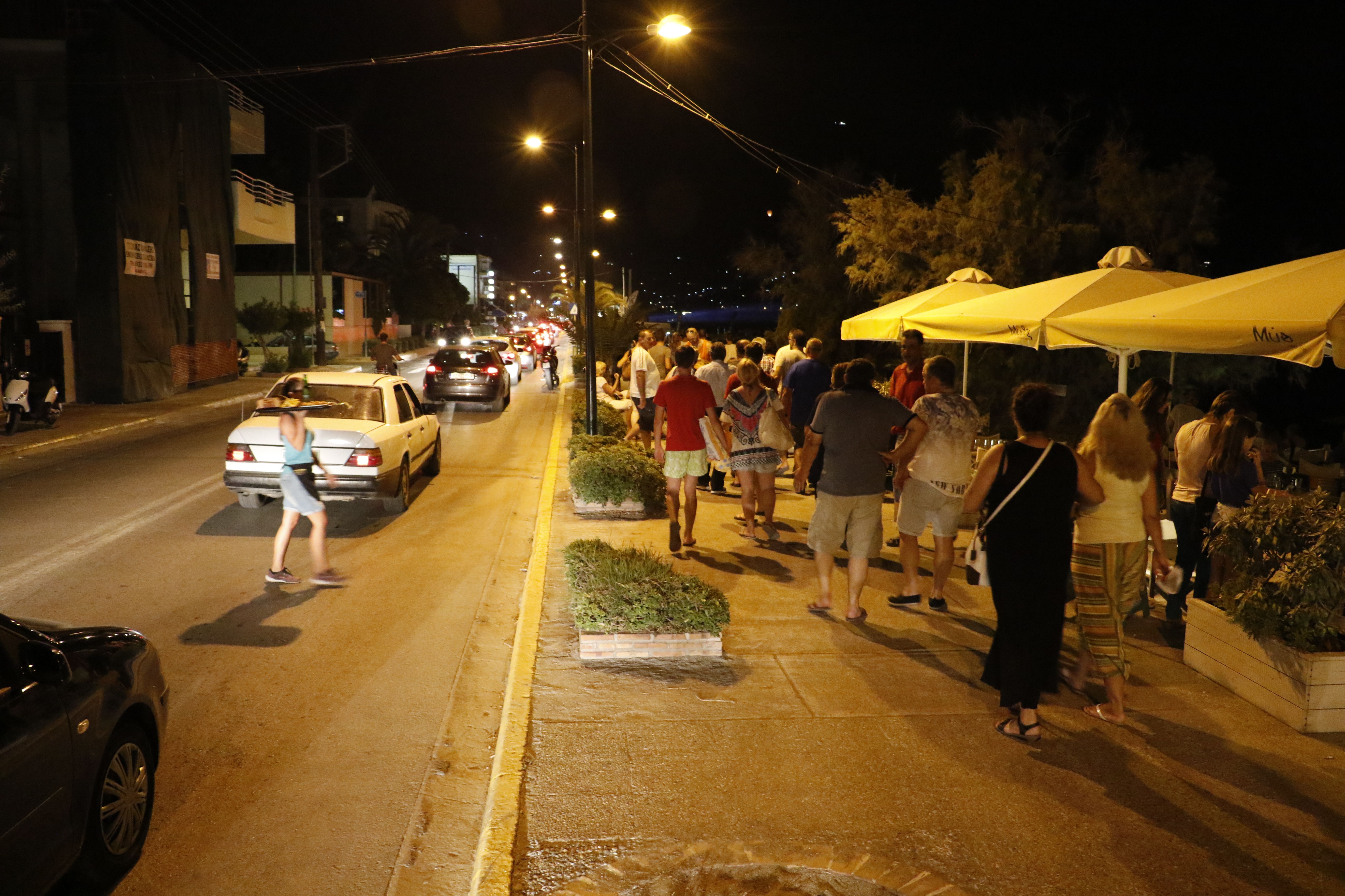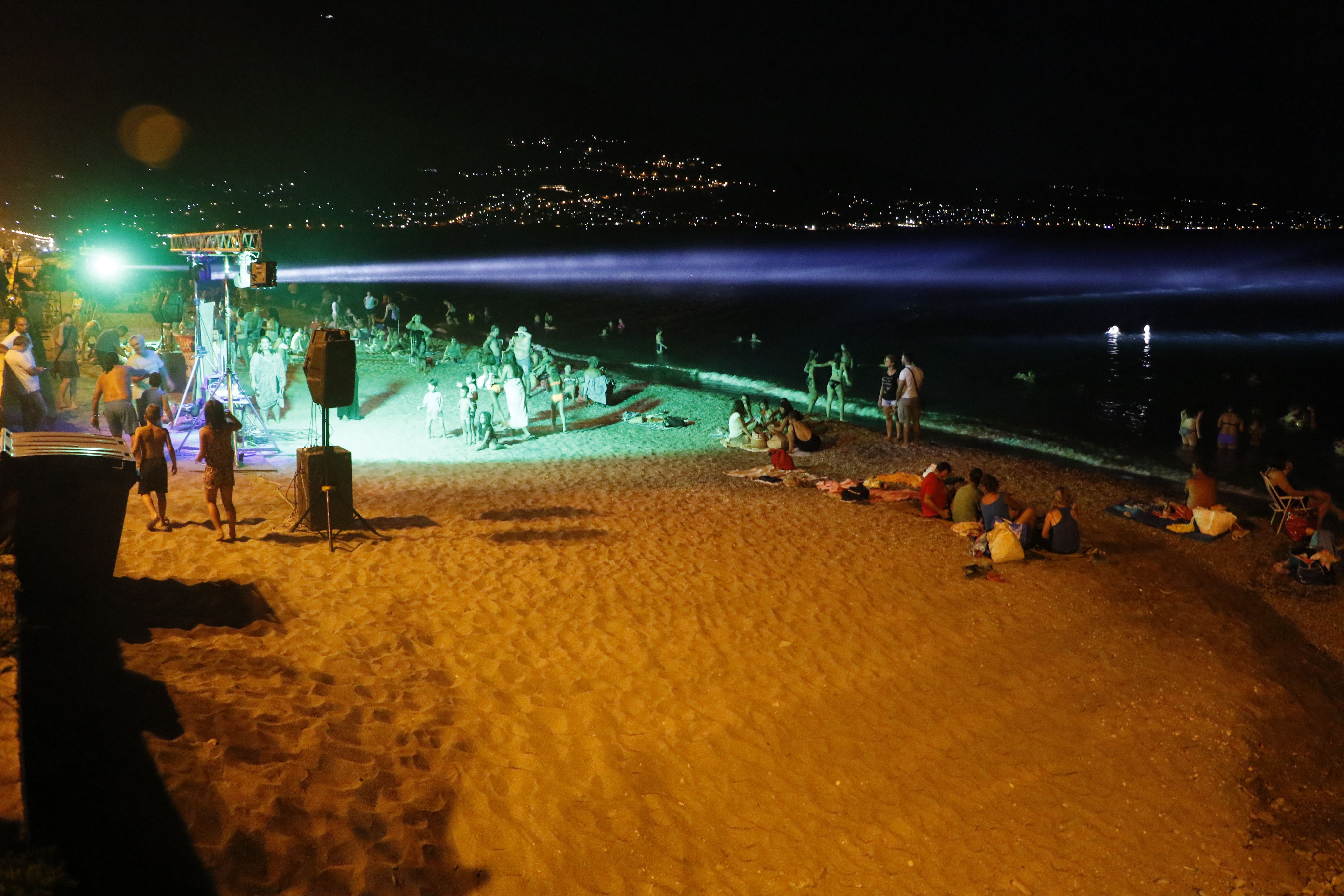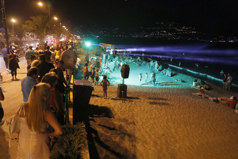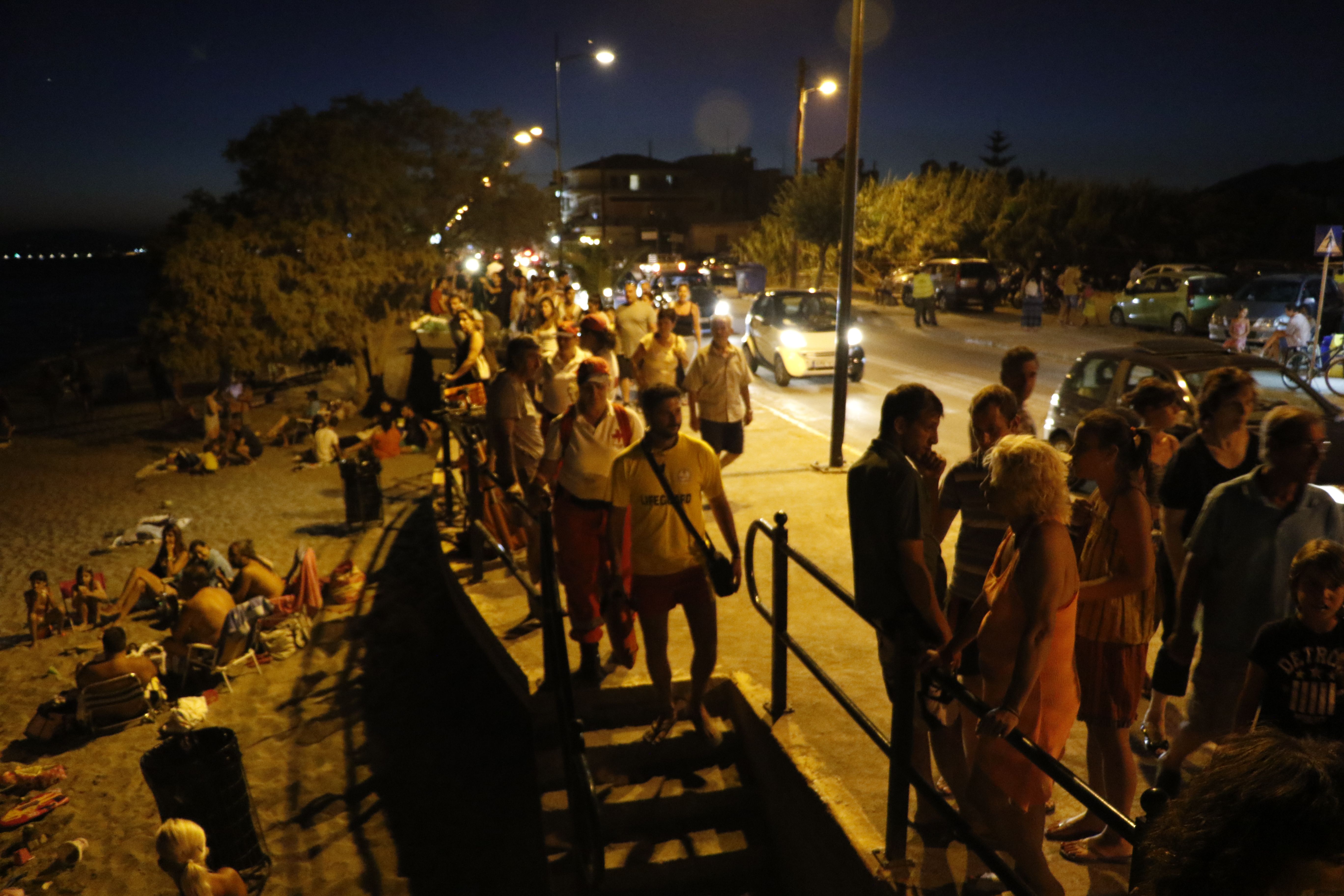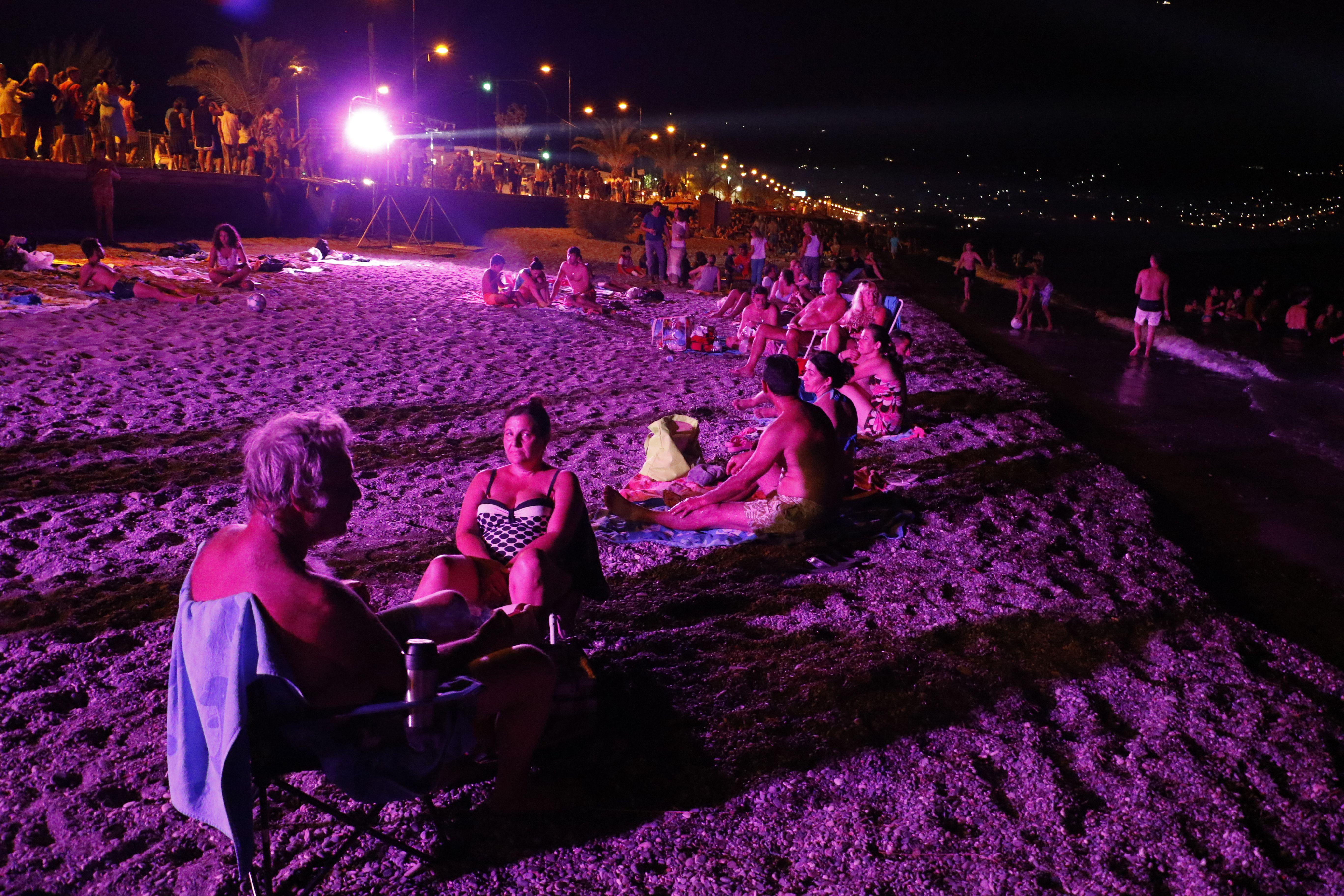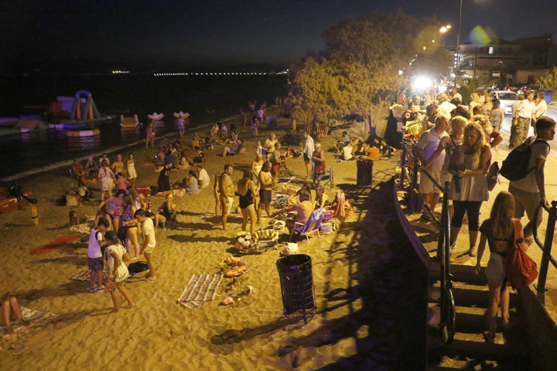 Πριν τις 9 το βράδυ της η οδός Ναυαρίνου πλημμύρισε από αυτοκίνητα και πεζούς που πήγαιναν για νυχτερινό μπάνιο. Λίγη ώρα αργότερα ο κόσμος κατέκλυζε την παραλία απολαμβάνοντας το μπάνιο του.