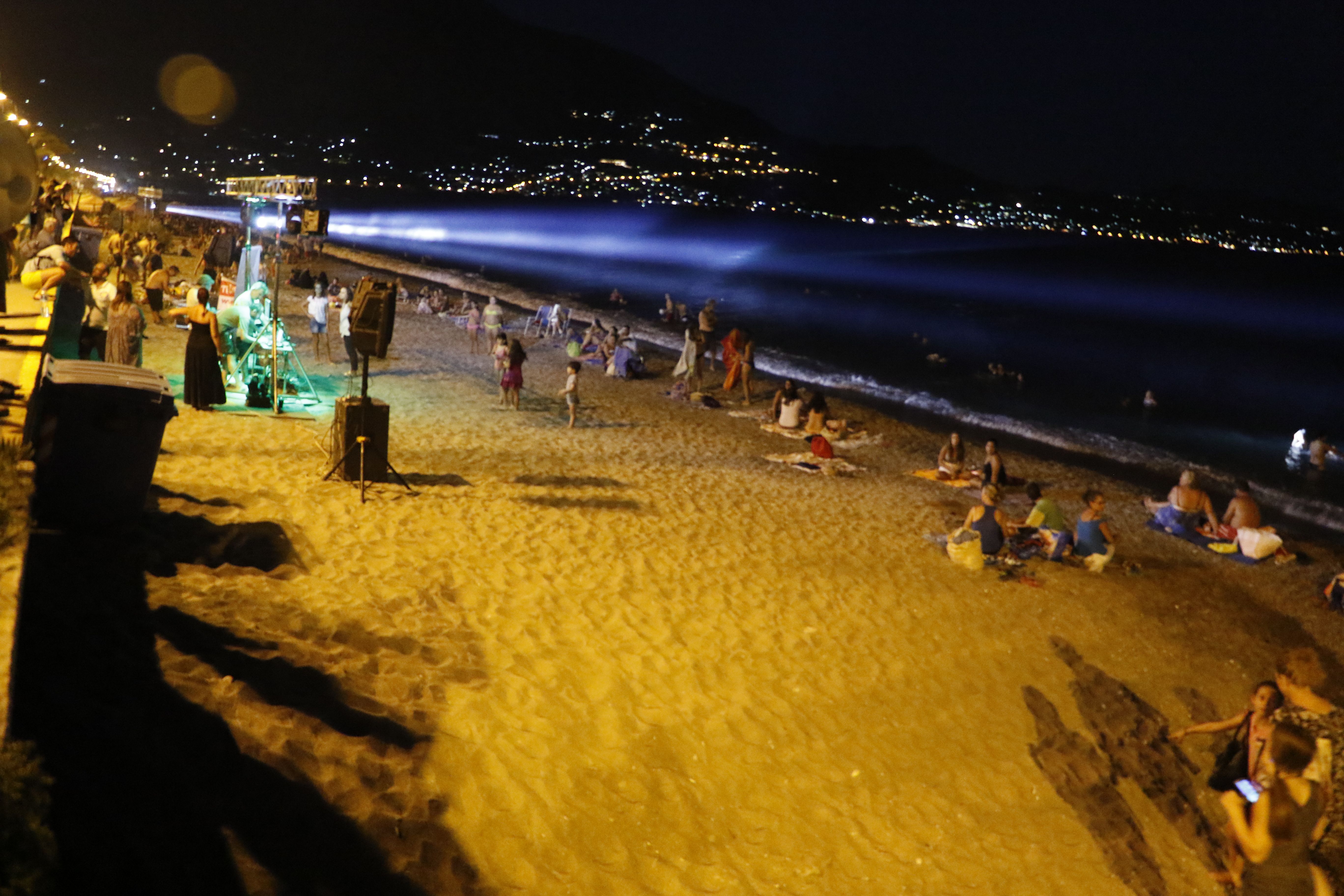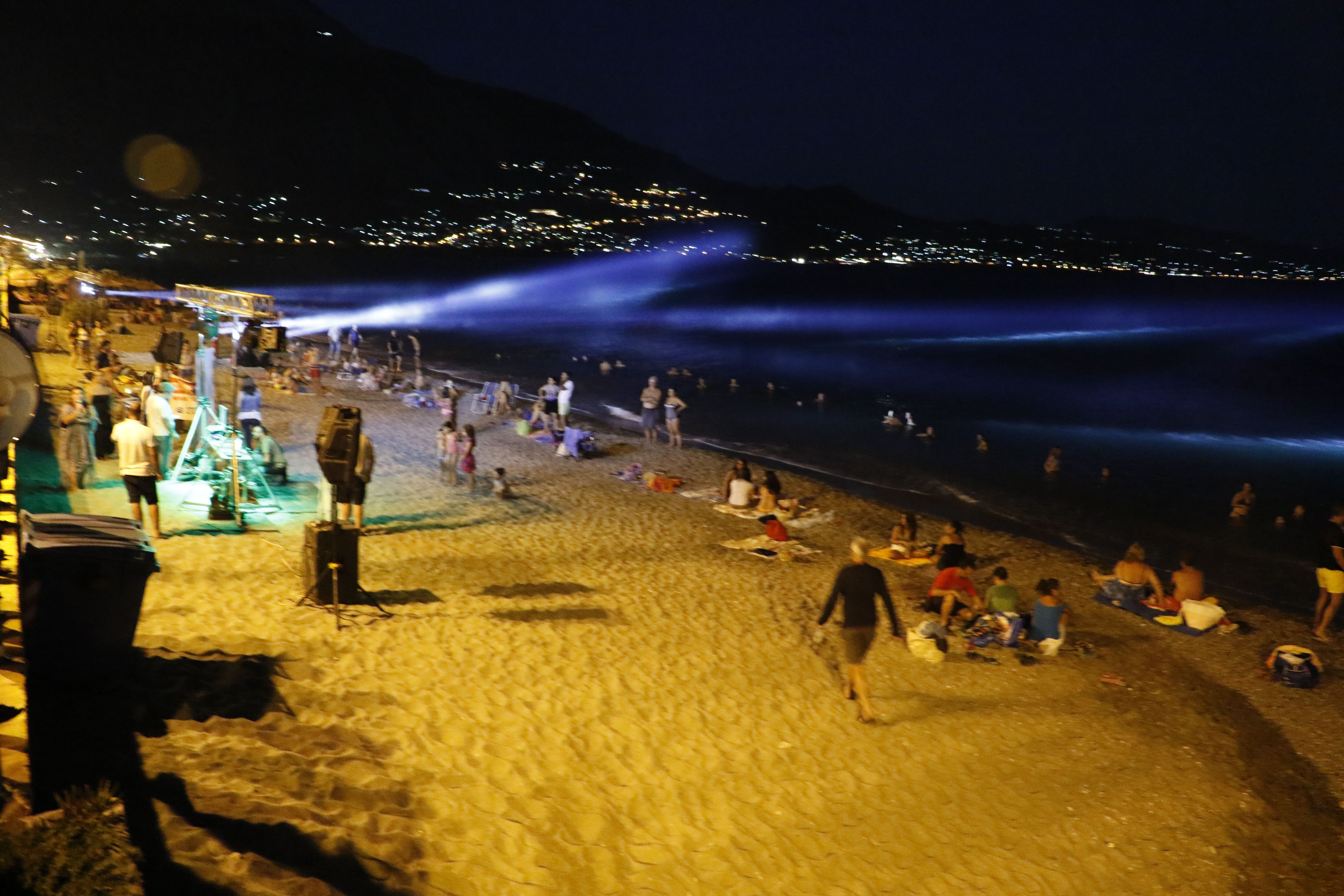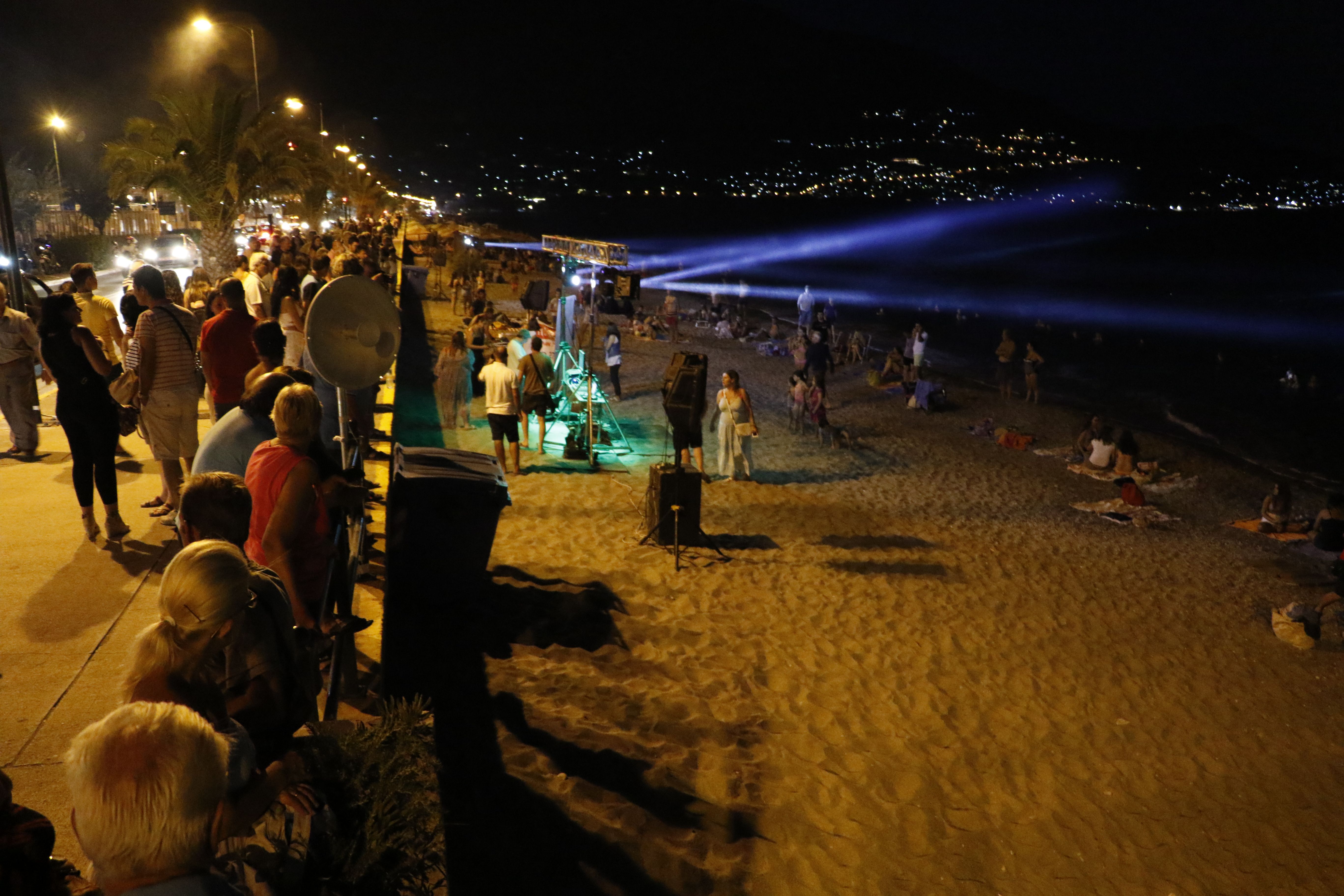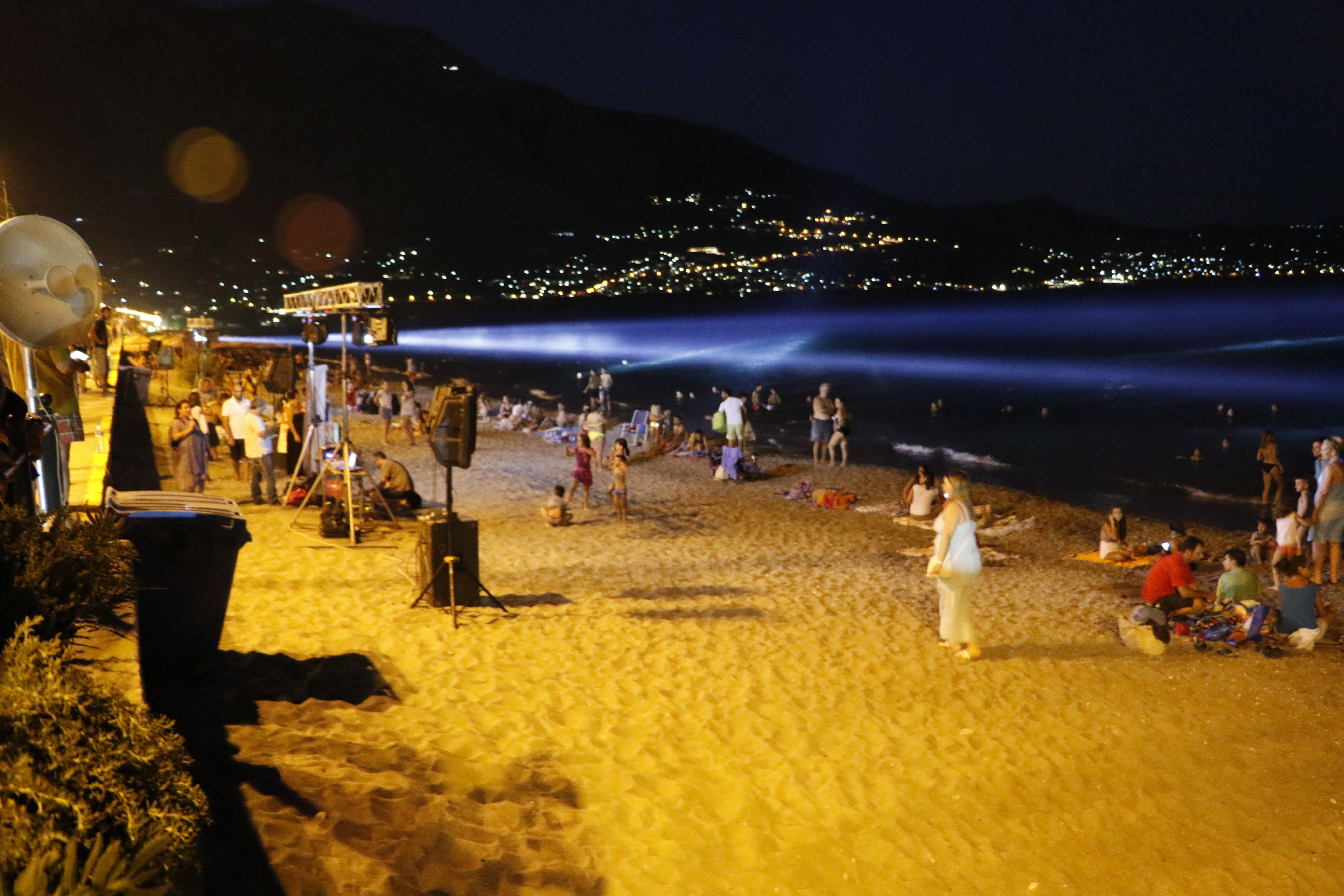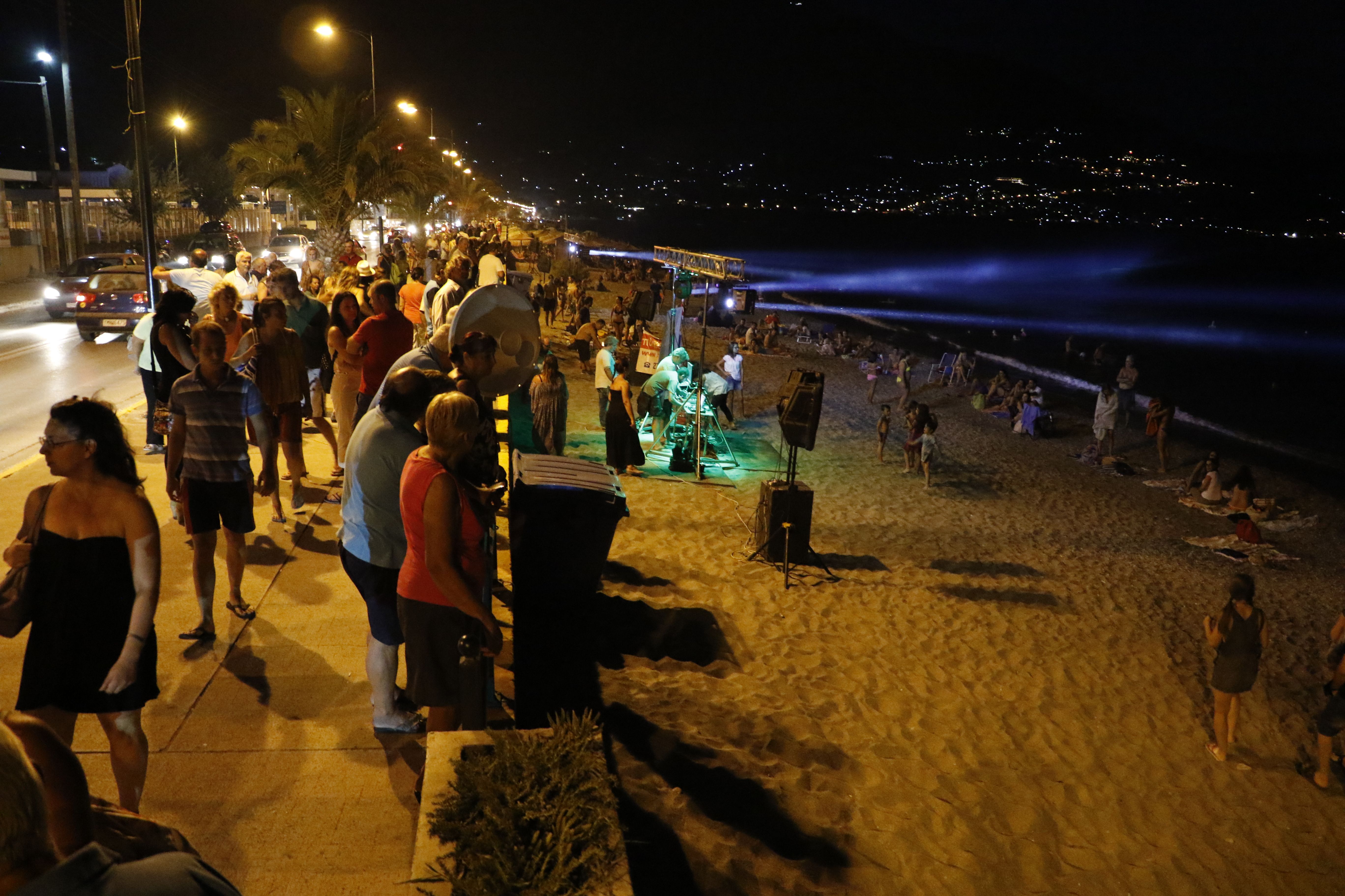 Πριν τις 9 το βράδυ της η οδός Ναυαρίνου πλημμύρισε από αυτοκίνητα και πεζούς που πήγαιναν για νυχτερινό μπάνιο. Λίγη ώρα αργότερα ο κόσμος κατέκλυζε την παραλία απολαμβάνοντας το μπάνιο του.