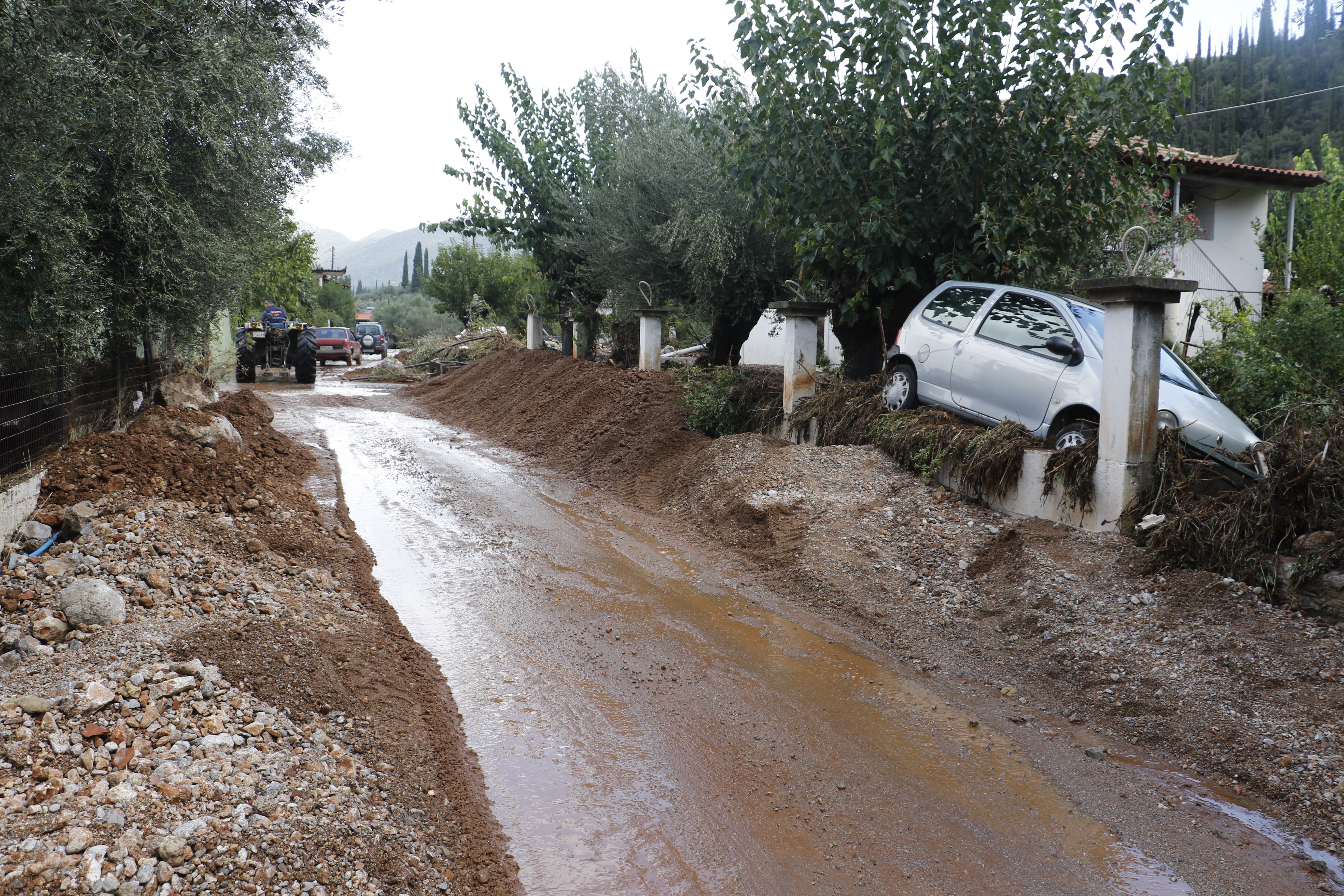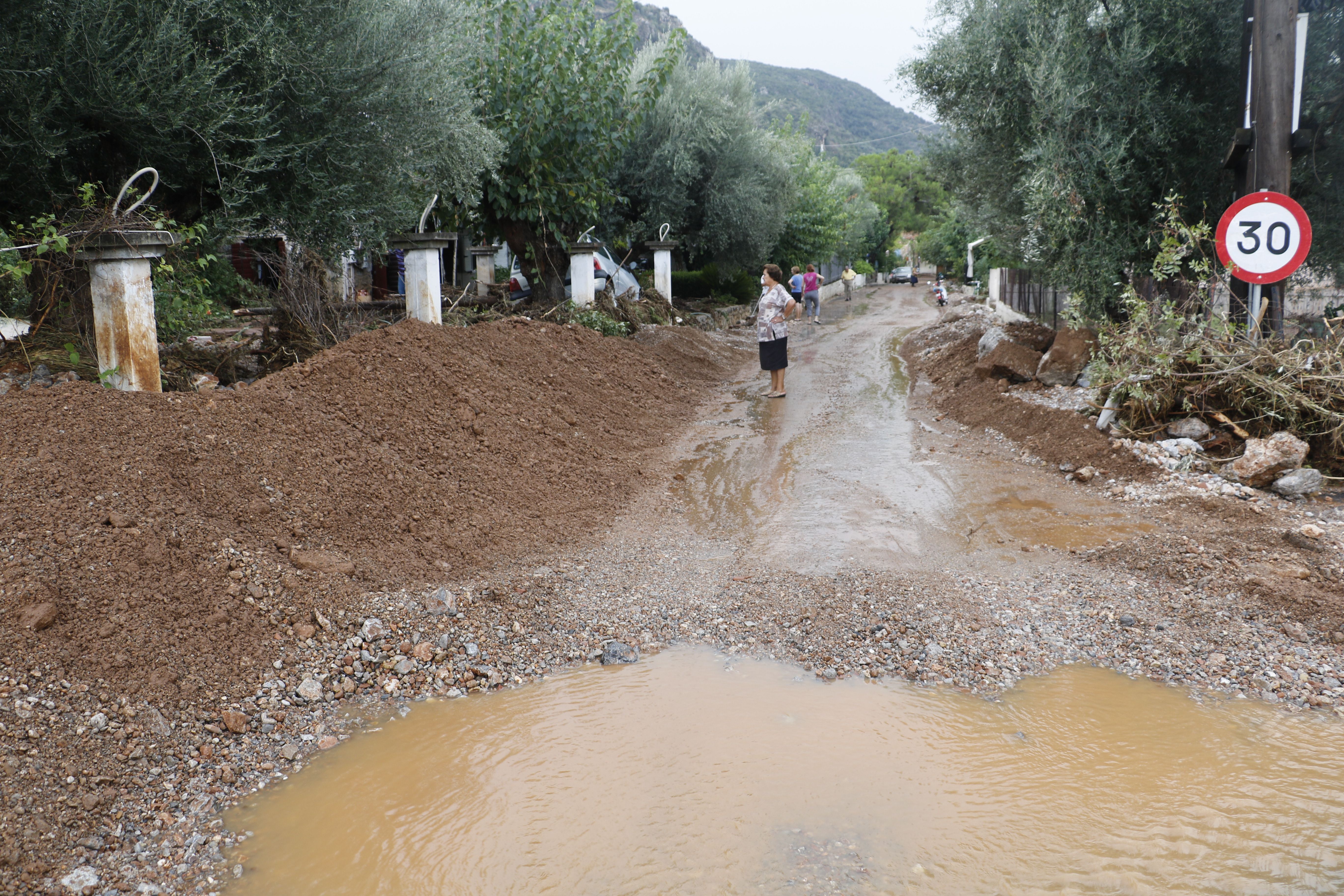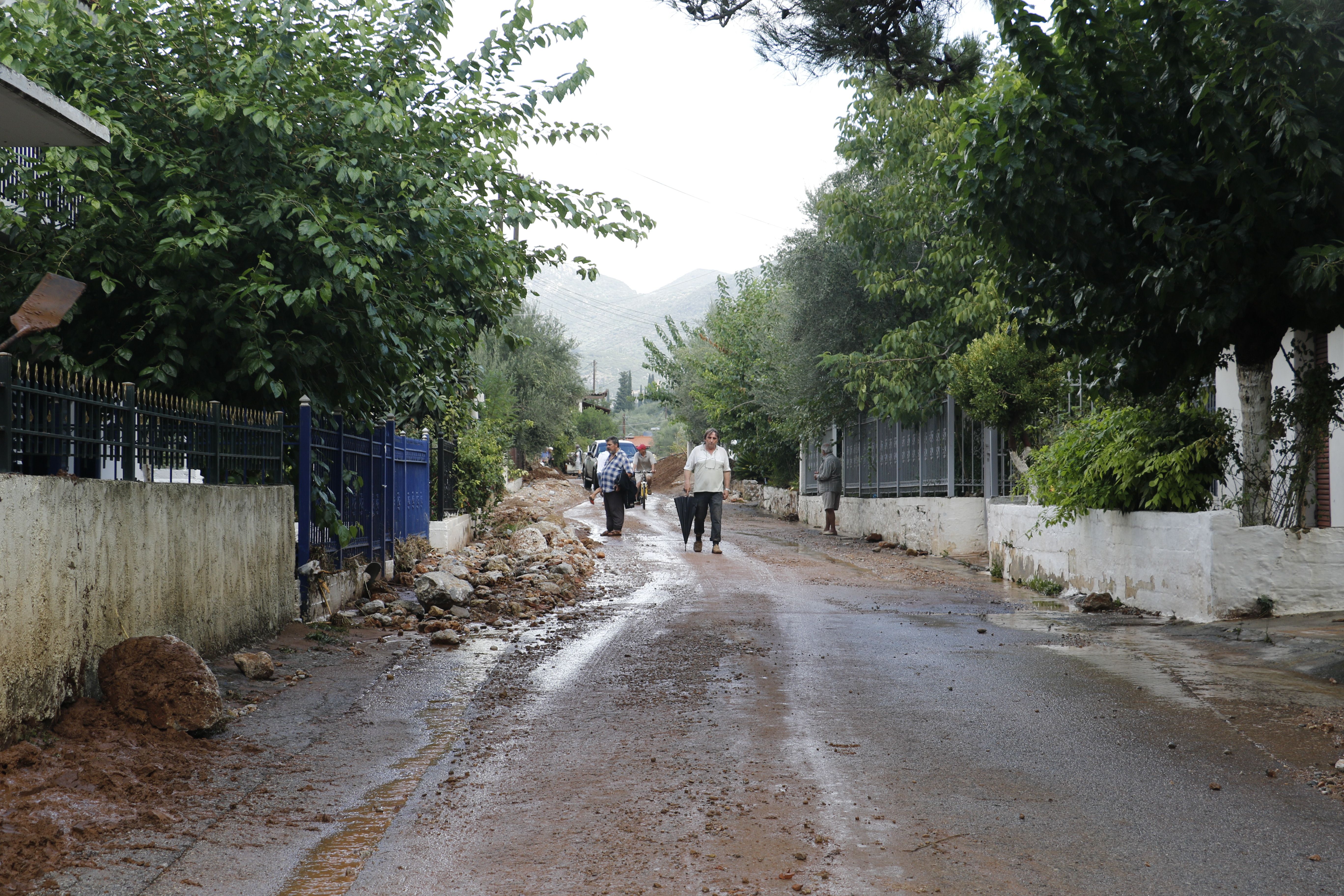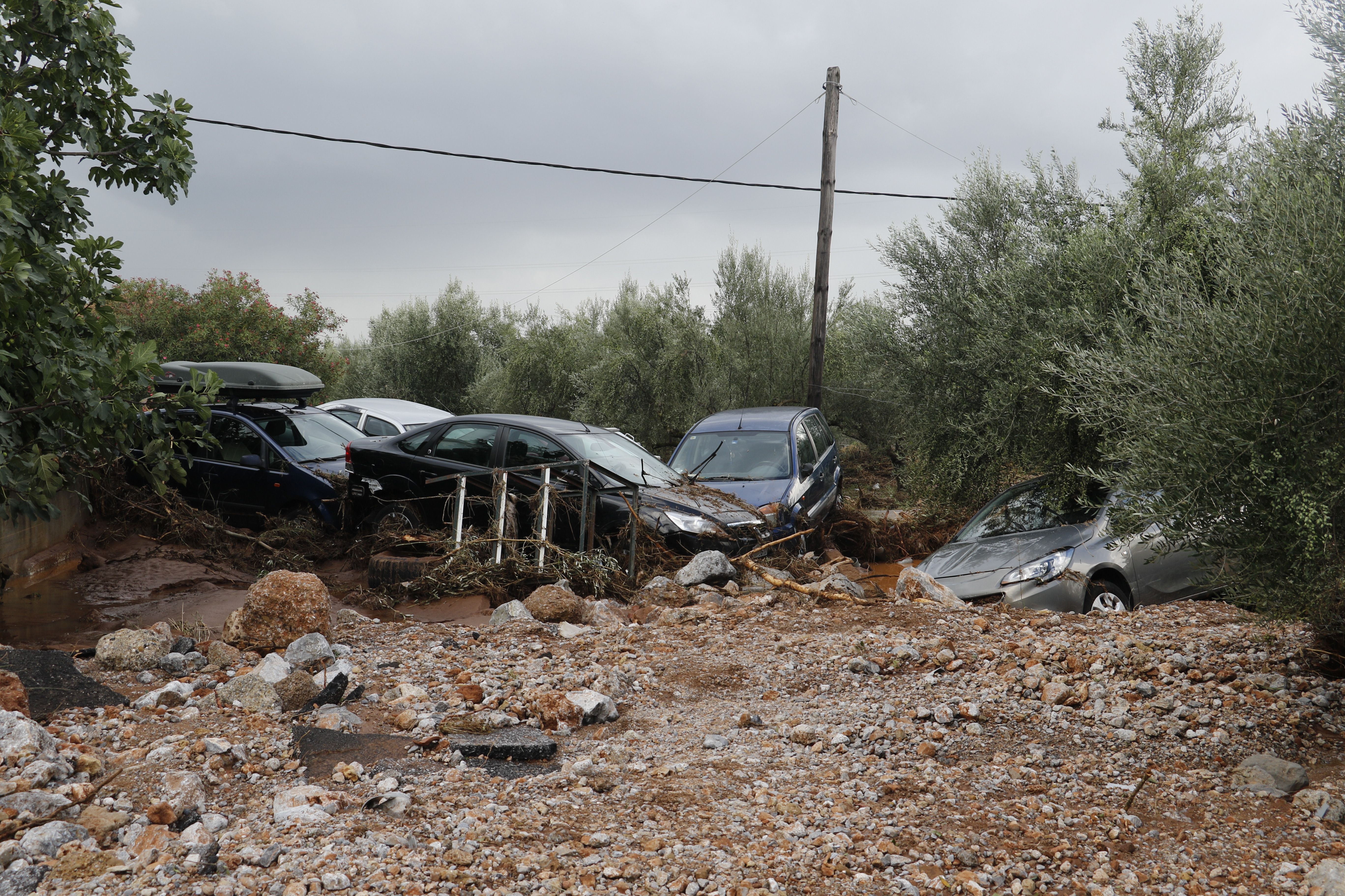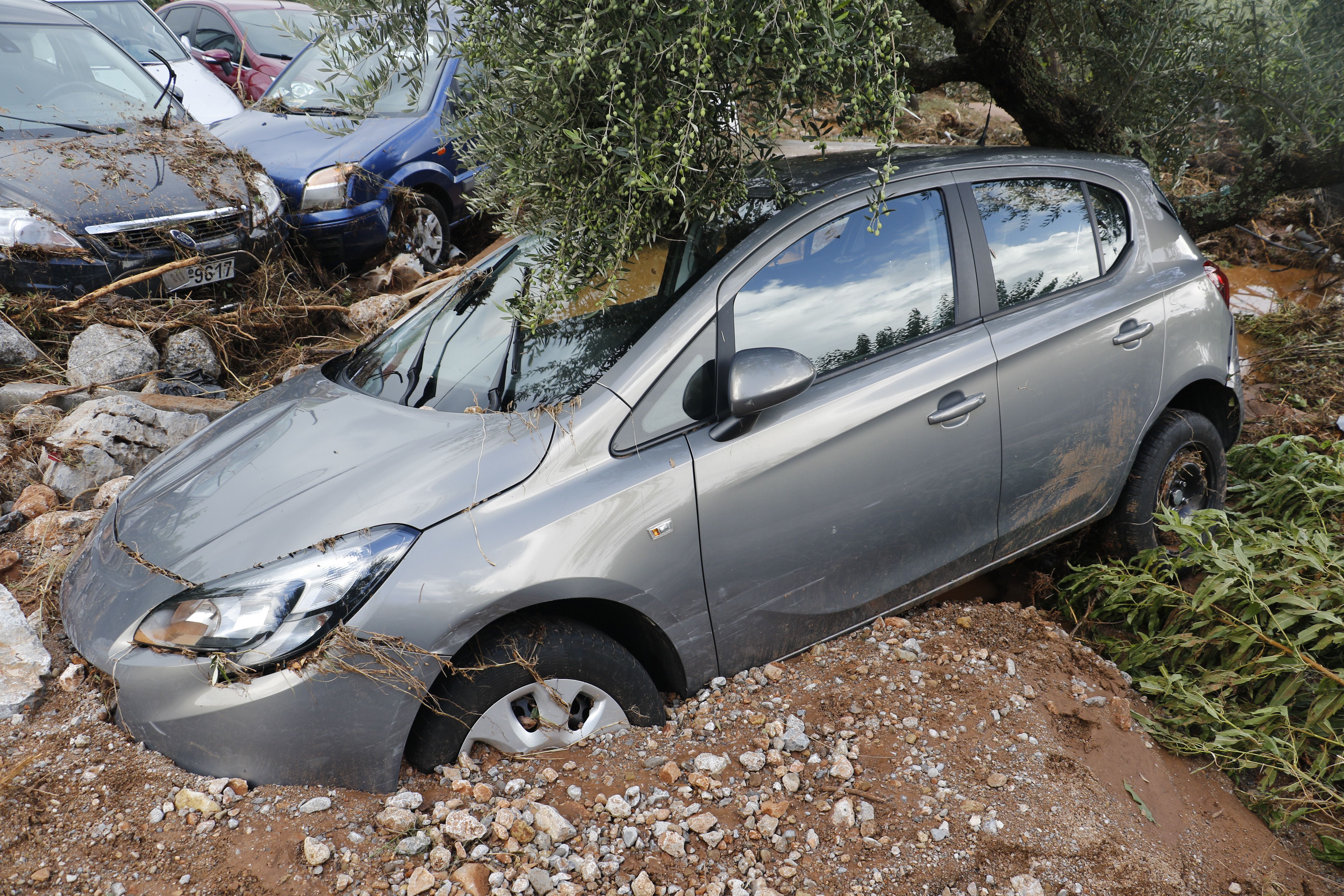 Τα νερά της βροχής μετέφεραν πέτρες και χώματα, κάτω από τα οποία θάφτηκαν αυτοκίνητα.