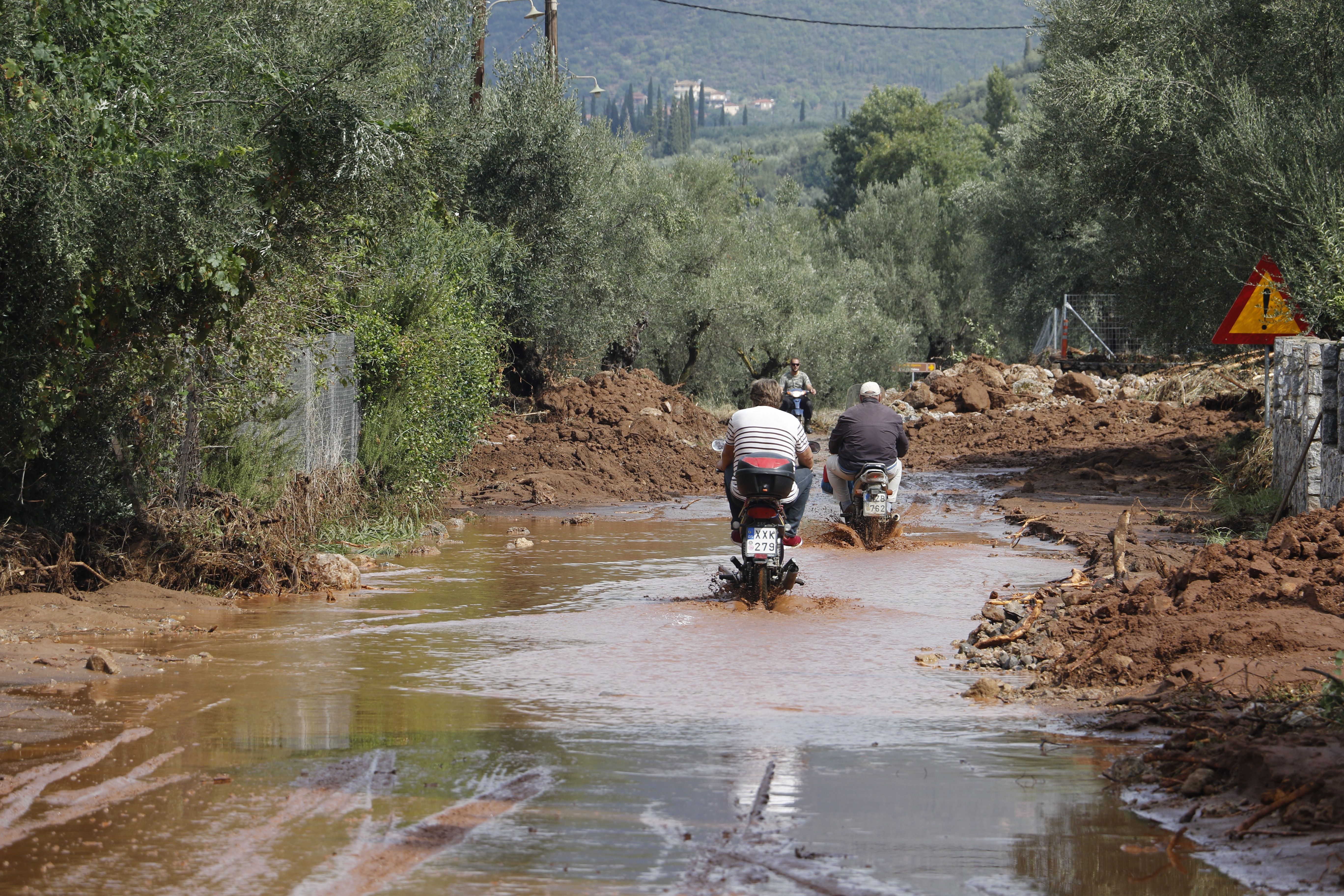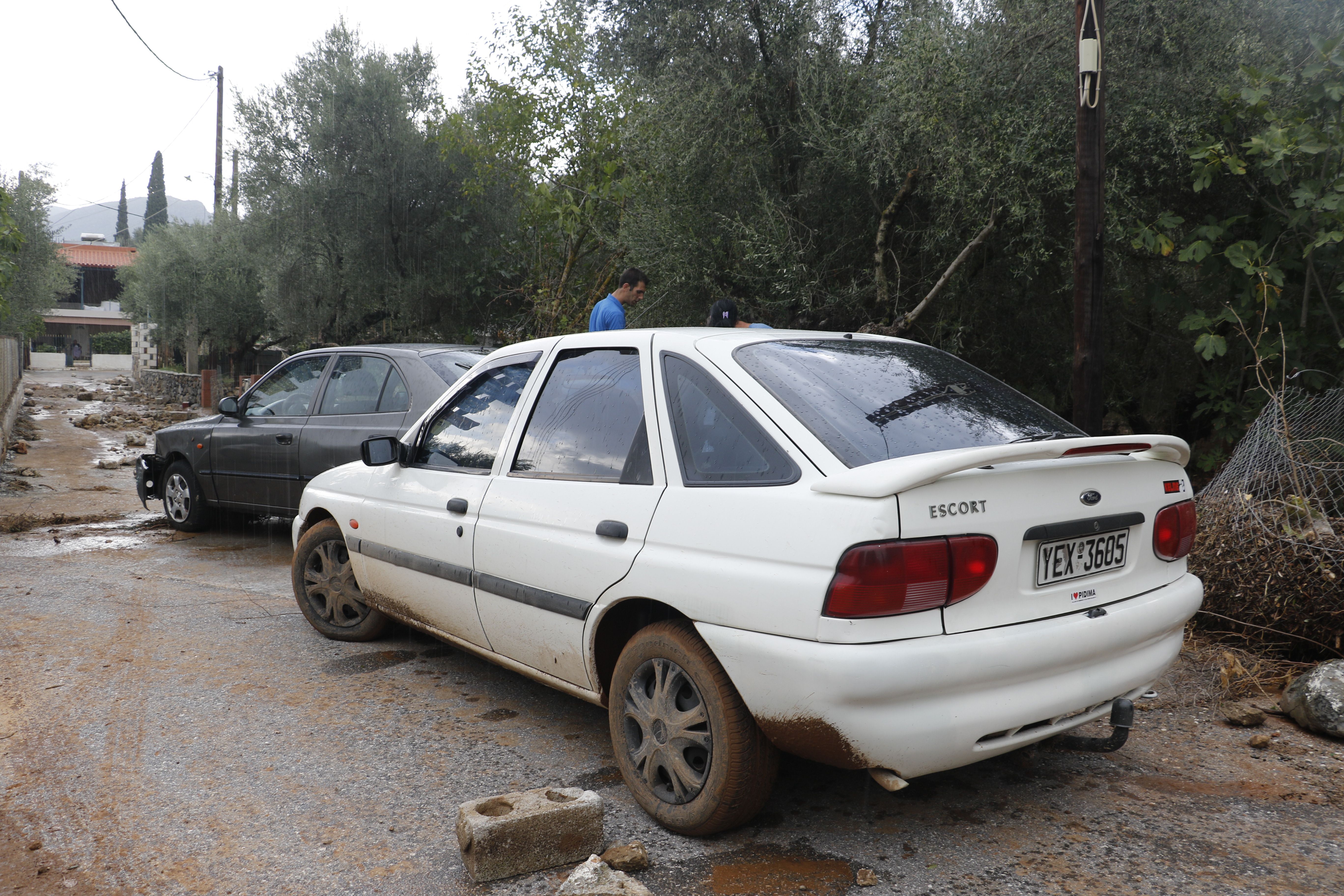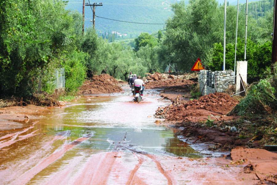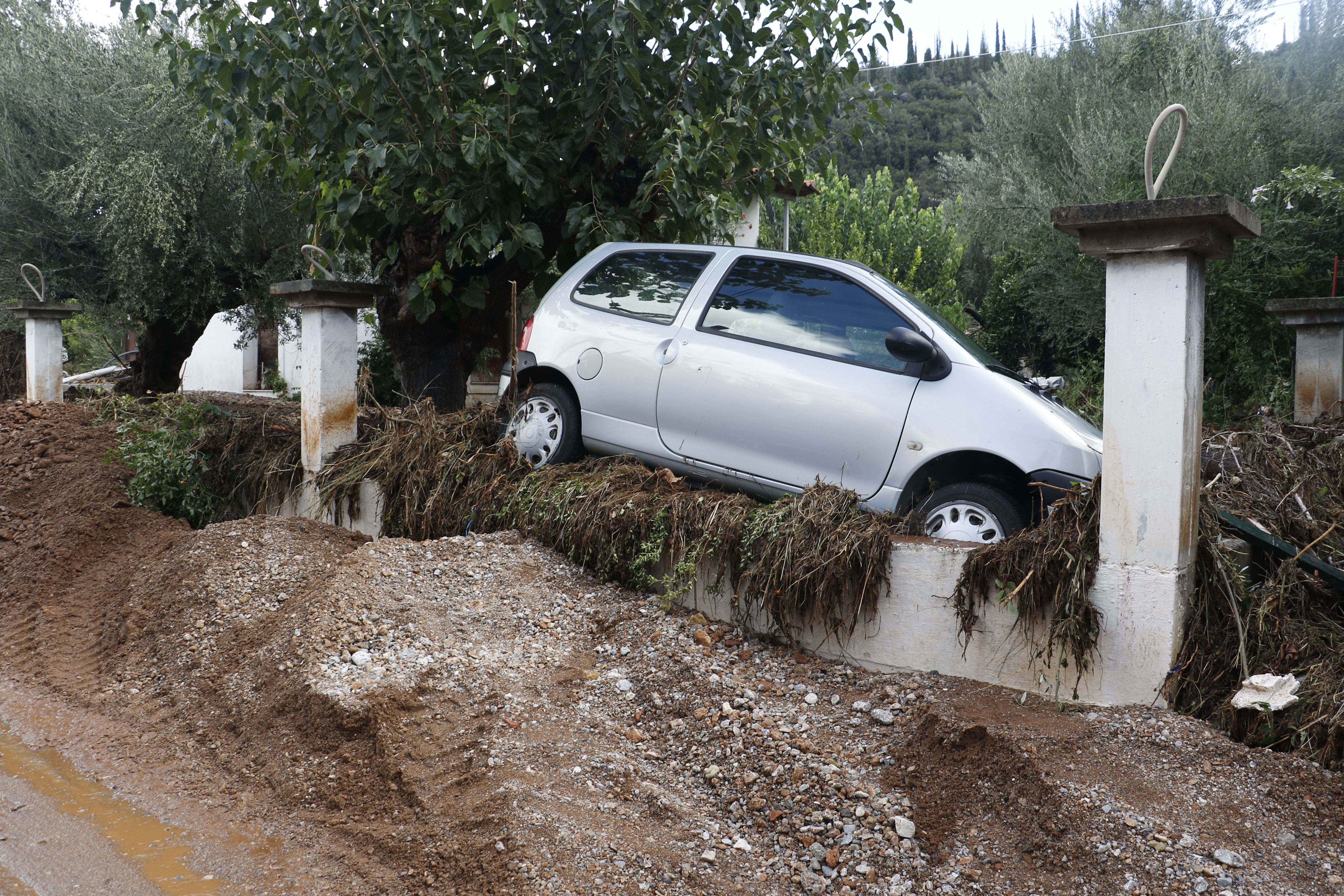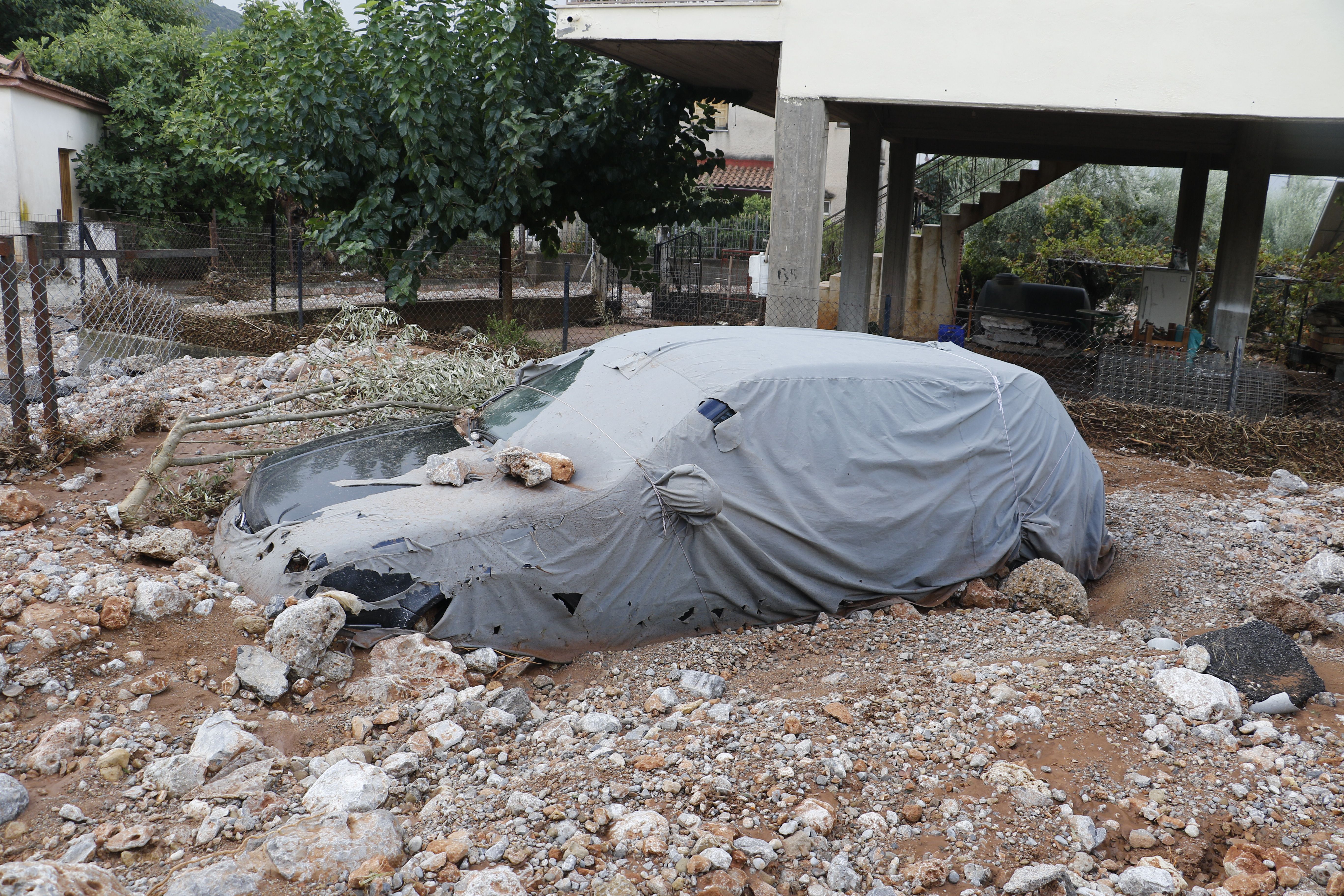 Τα νερά της βροχής μετέφεραν πέτρες και χώματα, κάτω από τα οποία θάφτηκαν αυτοκίνητα.