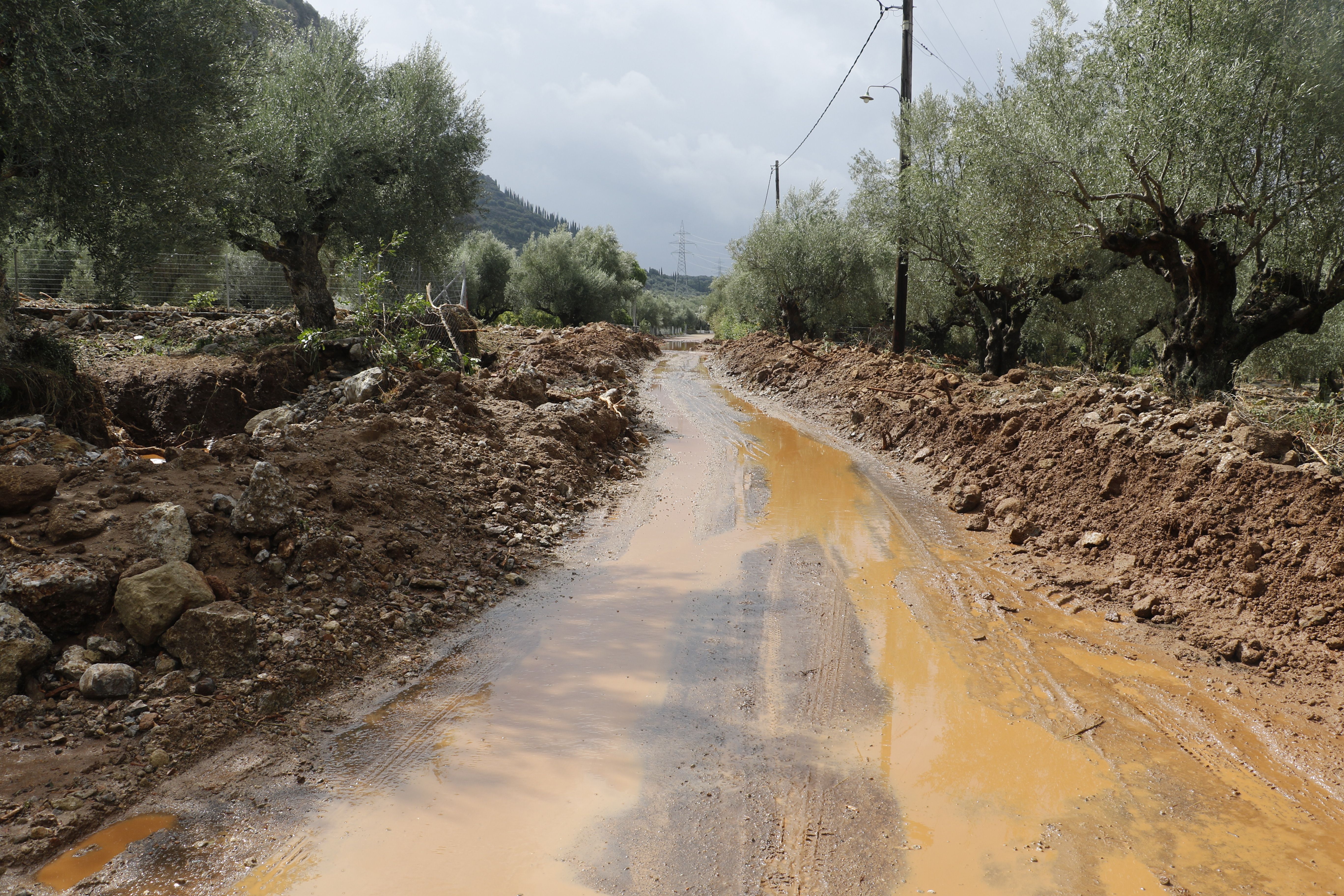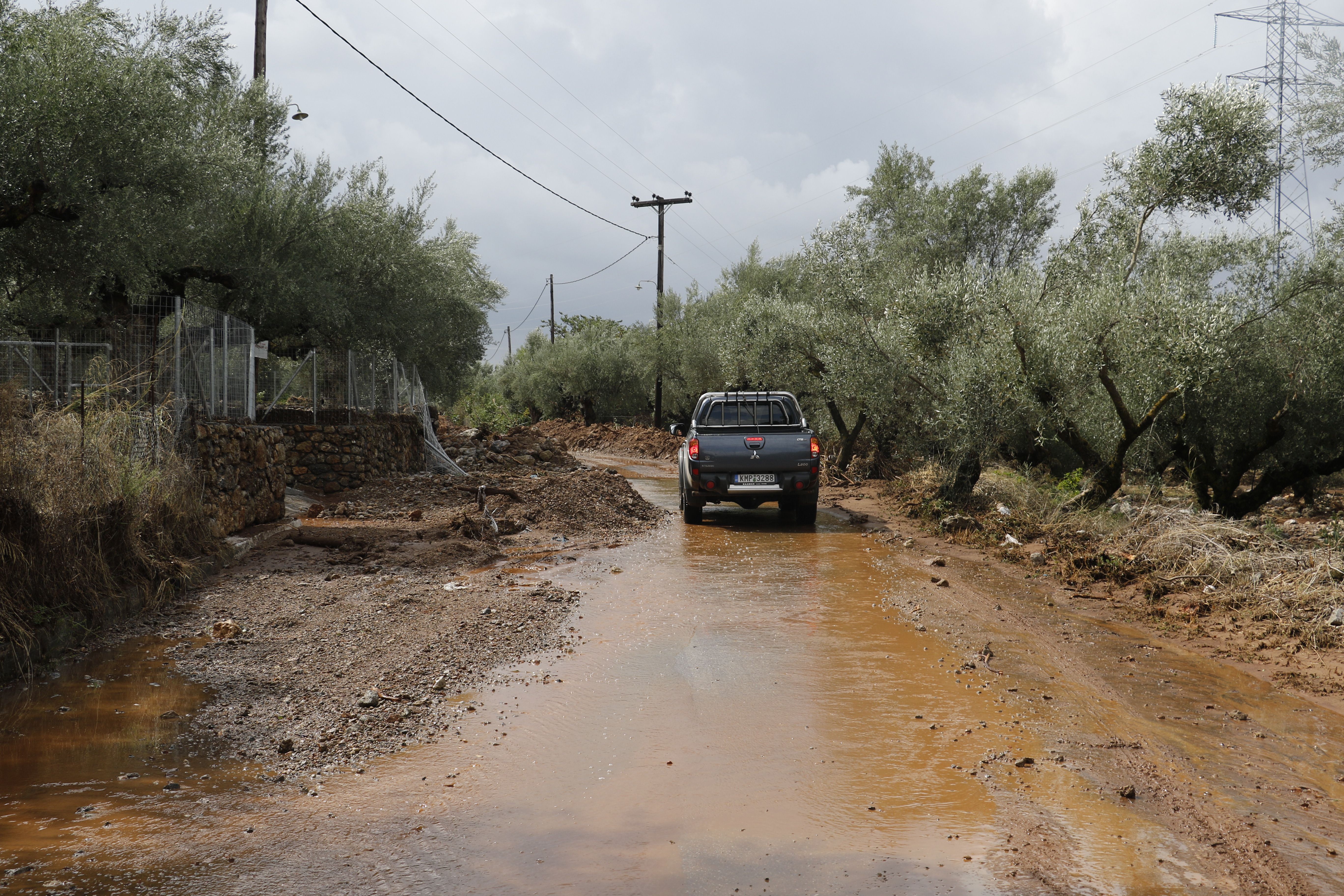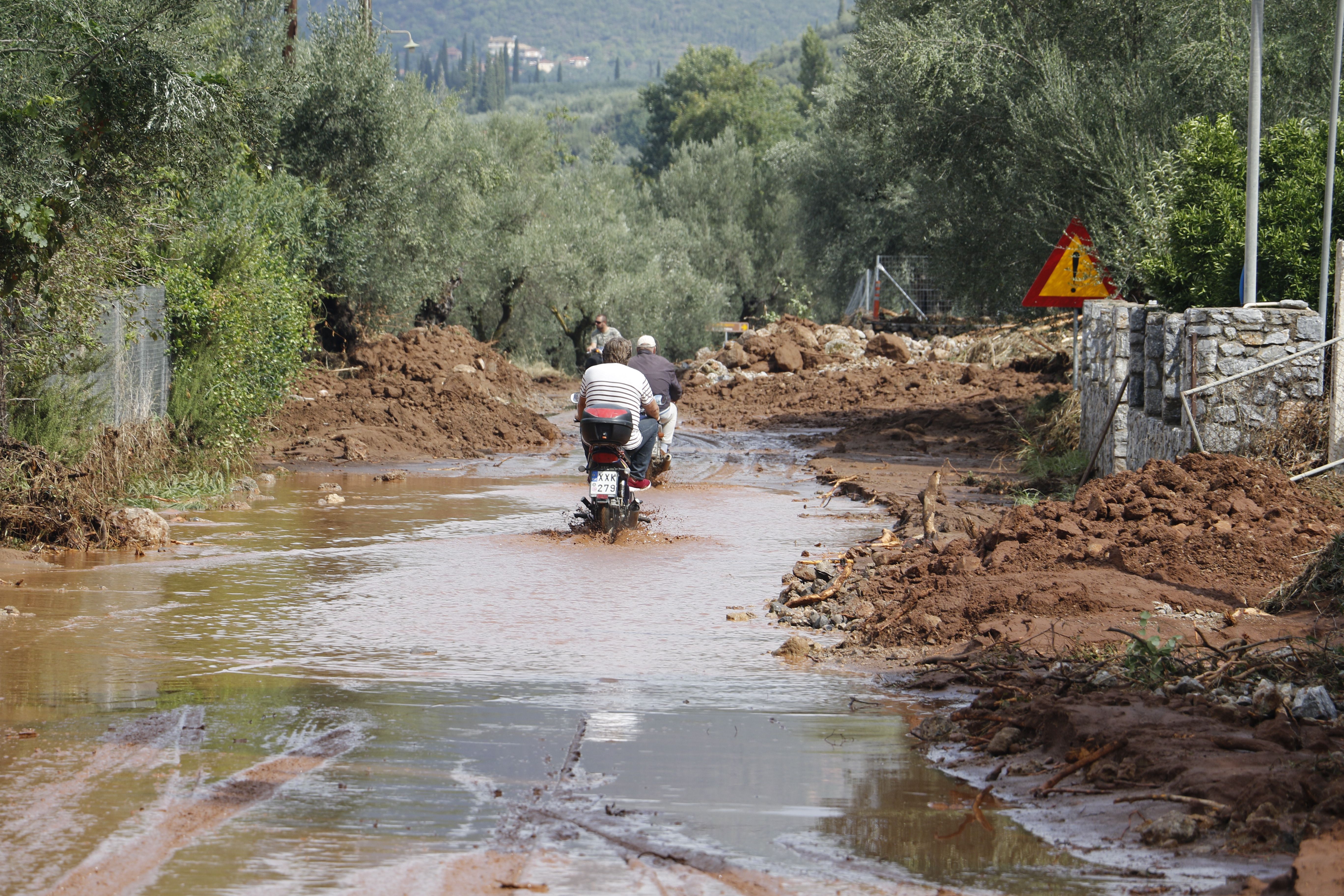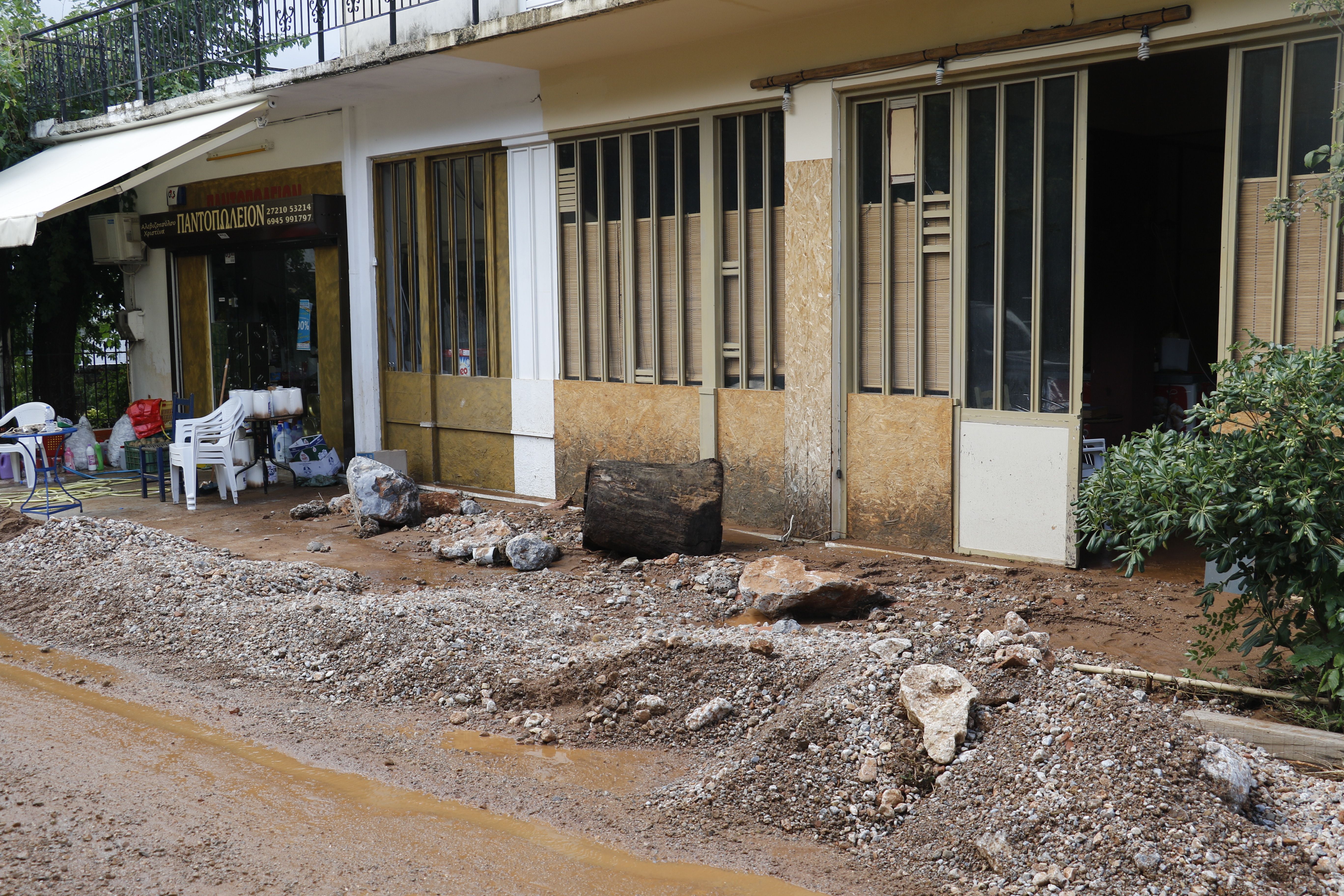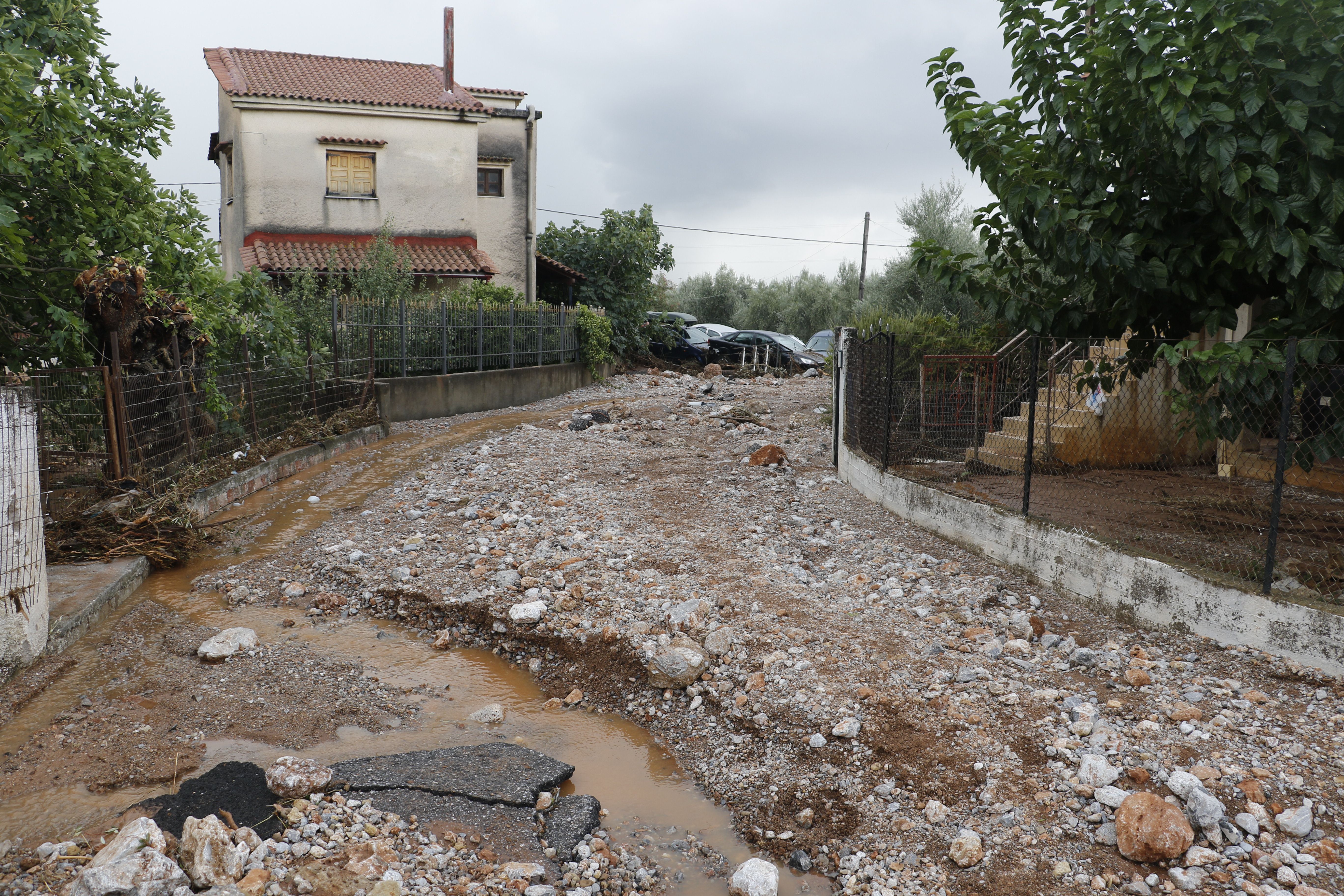 Τα νερά της βροχής μετέφεραν πέτρες και χώματα, κάτω από τα οποία θάφτηκαν αυτοκίνητα.