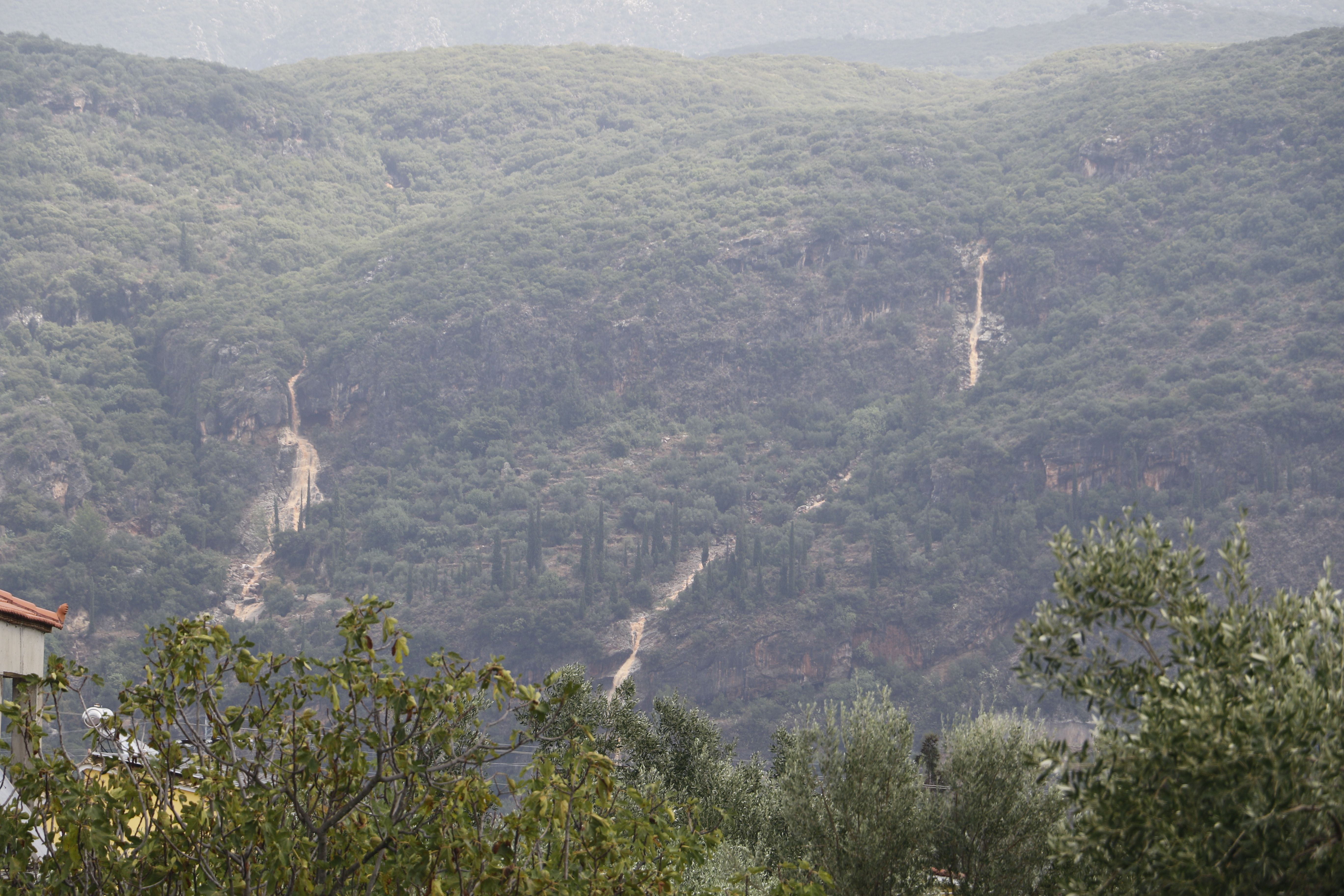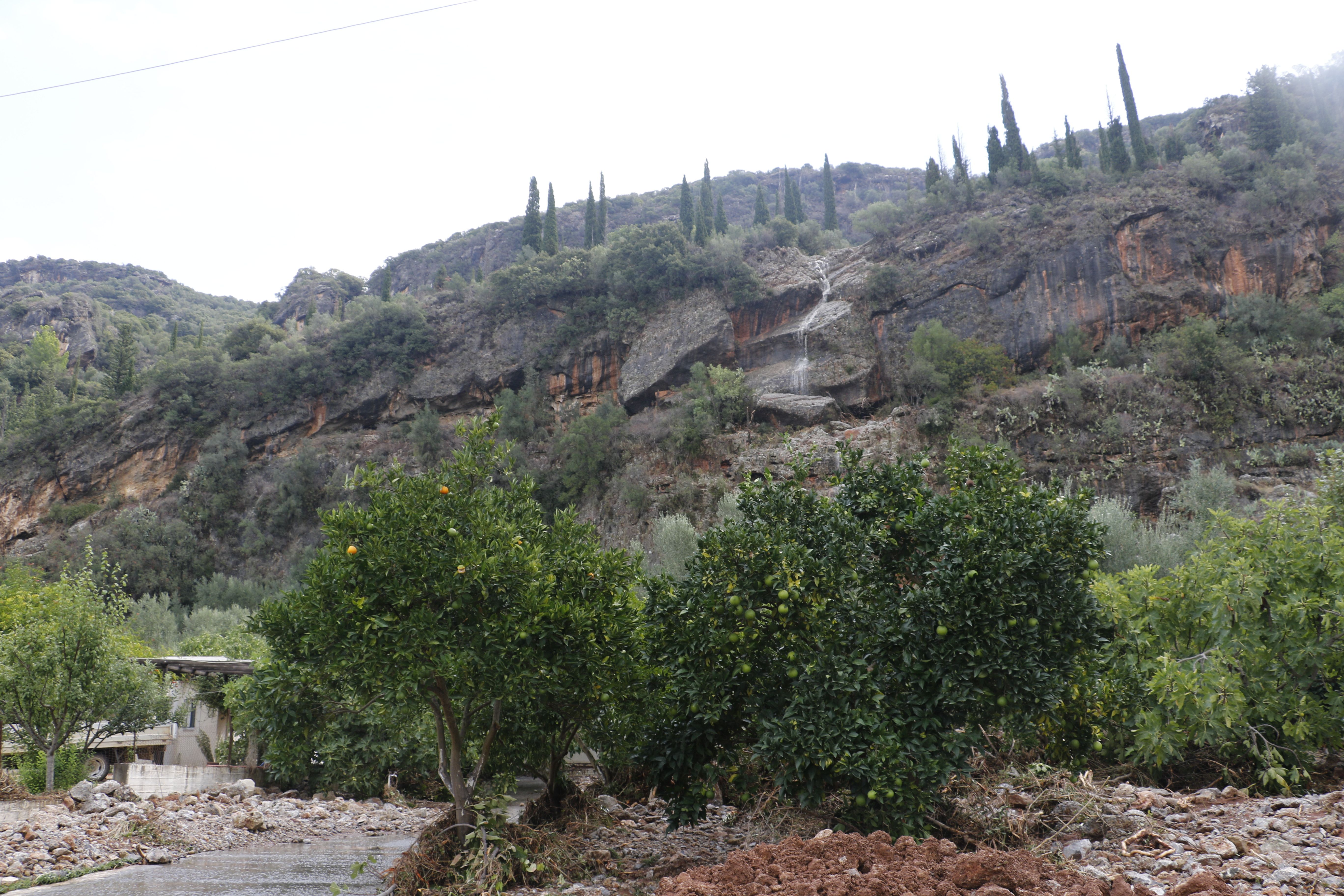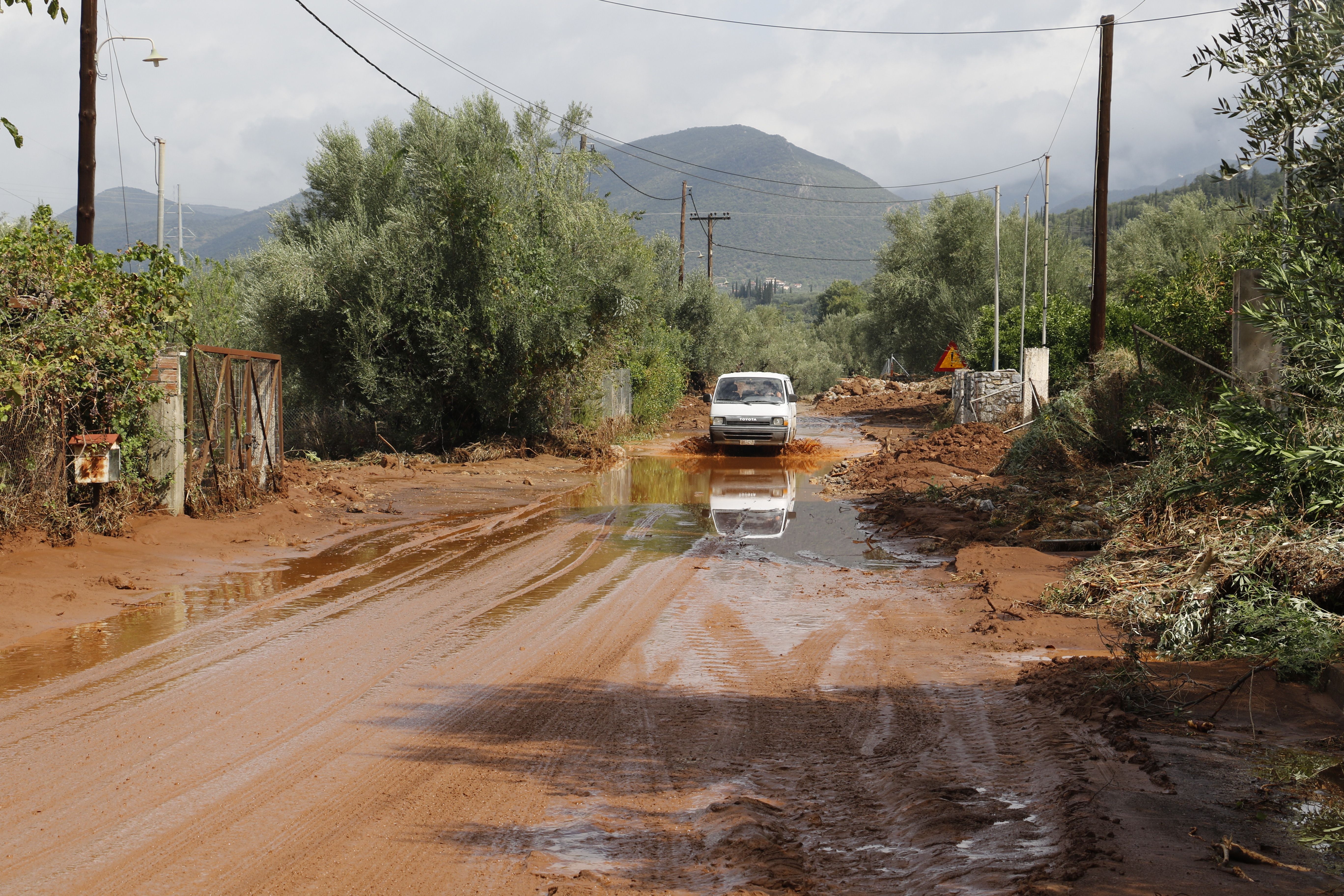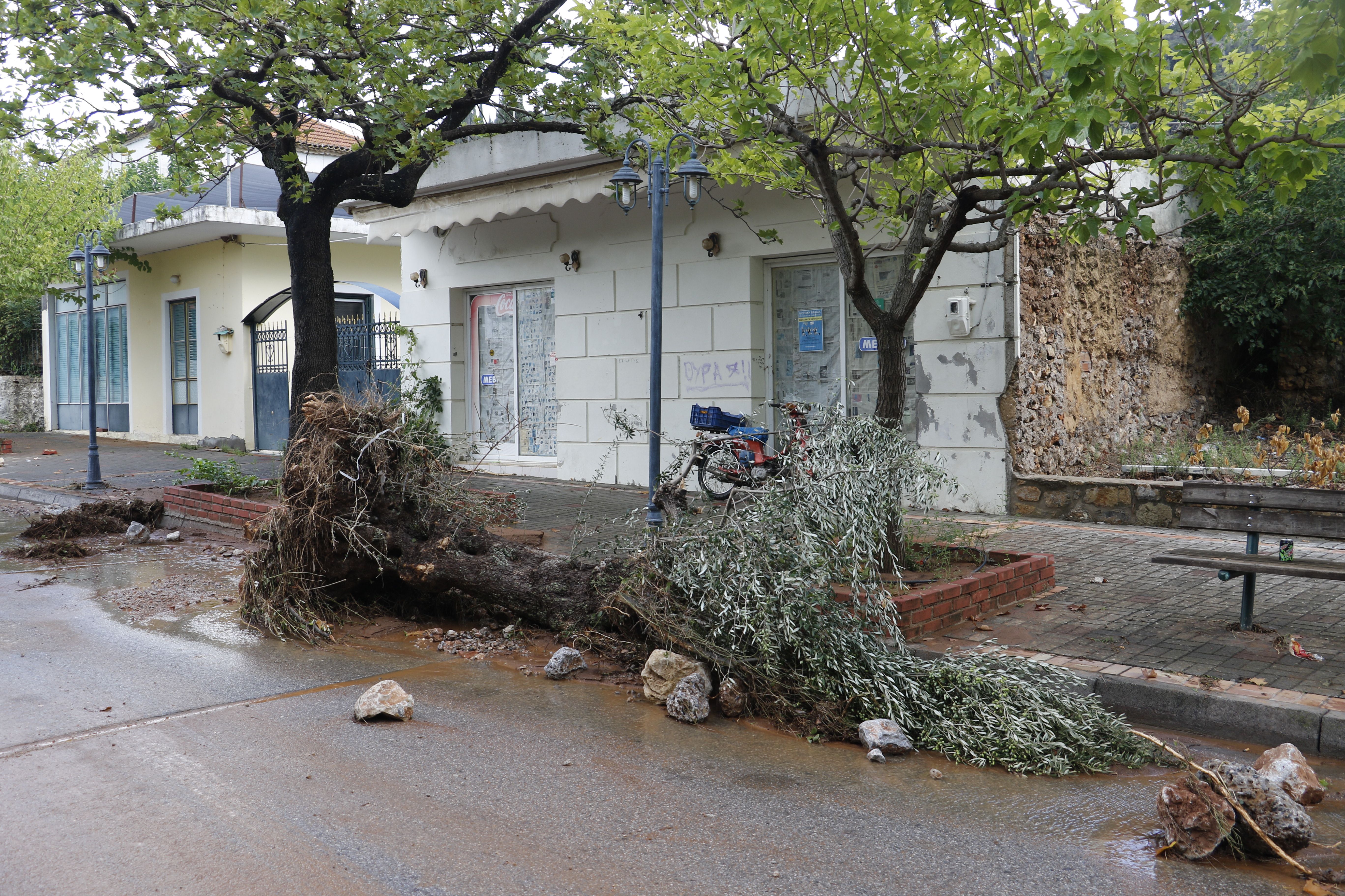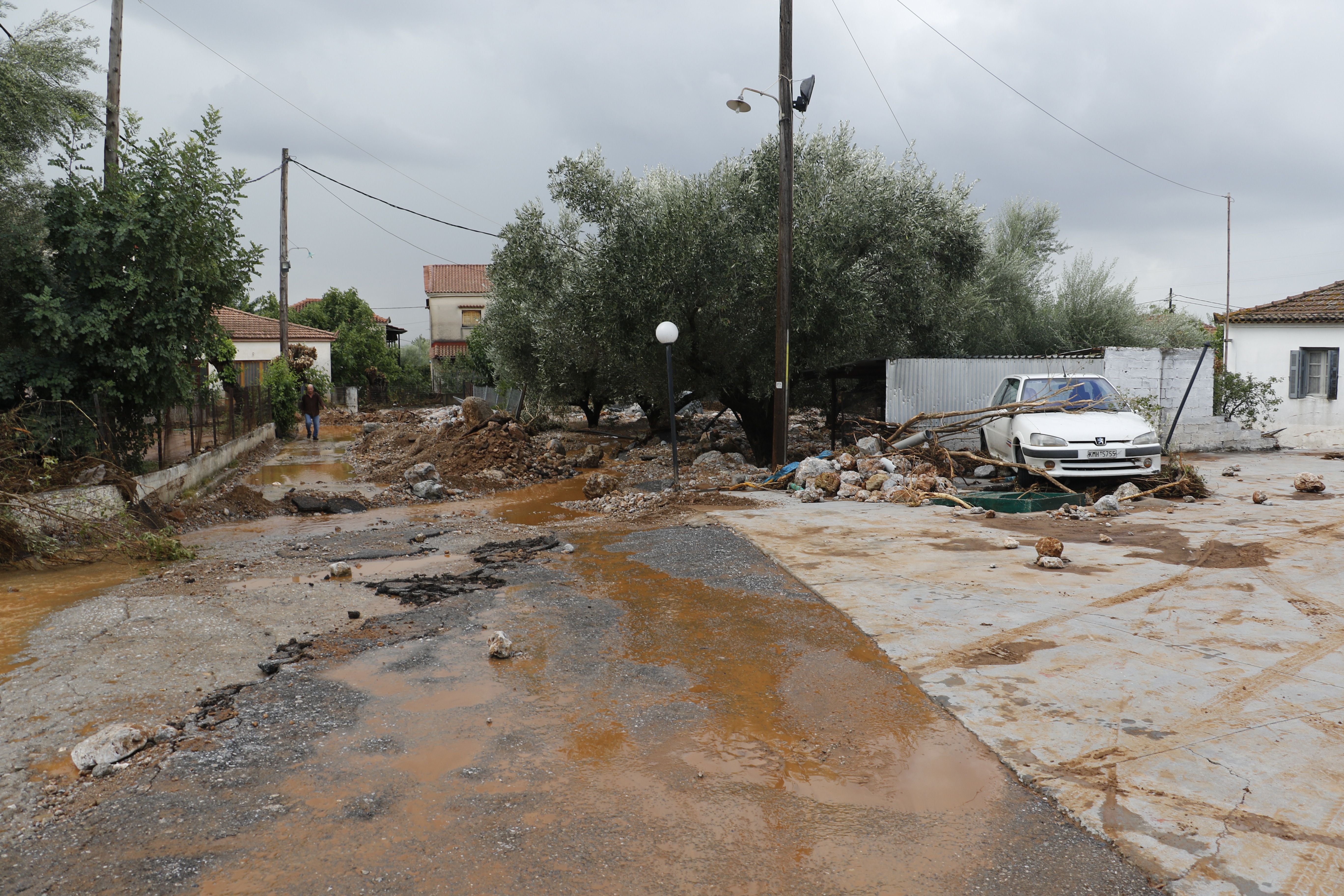 Τα νερά της βροχής μετέφεραν πέτρες και χώματα, κάτω από τα οποία θάφτηκαν αυτοκίνητα.