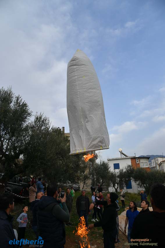 Πρόκειται για ένα έθιμο, που περνάει από γενιά σε γενιά και κάθε χρόνο γίνονται προσπάθειες για κατασκευή όλο και μεγαλύτερου αερόστατου. Το απόγευμα της Καθαράς Δευτέρας αναβίωσαν το έθιμο και με την τρίτη φορά κατάφεραν να το πετάξουν στον αέρα γεμάτοι ικανοποίηση.