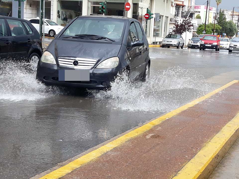 Σε μικρά... ποτάμια μετατράπηκαν αρκετοί δρόμοι της Καλαμάτας μετά την καταιγίδα και την κατά τόπους χαλαζόπτωση.