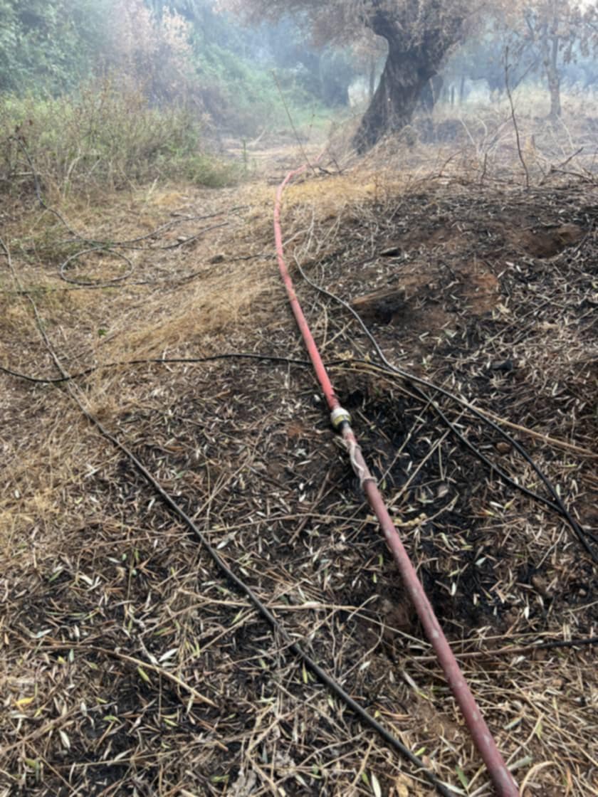 Στην προχθεσινή φωτιά υπήρχαν πολλά διάσπαρτα καλώδια δίπλα από τις εστίες, με την πυροσβεστική να καλεί τον ΔΕΔΔΗΕ για να προχωρήσει σε διακοπή ρεύματος στην περιοχή, προκειμένου πυροσβέστες και εθελοντές να κατασβήσουν με ασφάλεια το πύρινο μέτωπο.