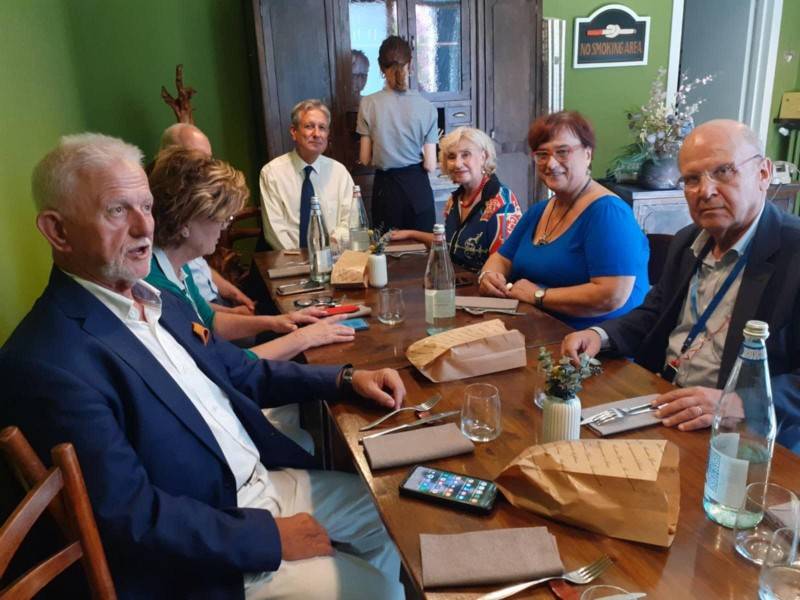 Η συγκίνηση ήταν διάχυτη και από τις δύο πλευρές όταν η πρόεδρος μας συμμετείχε στην κοπή της κορδέλας της έκθεσης «La Grecia di Santa Rosa» (Η Ελλάδα του Santa Rosa) που εγκαινιάστηκε στο Palazzo Muratori-Cravetta και θα διαρκέσει έως τις 16 Νοεμβρίου.