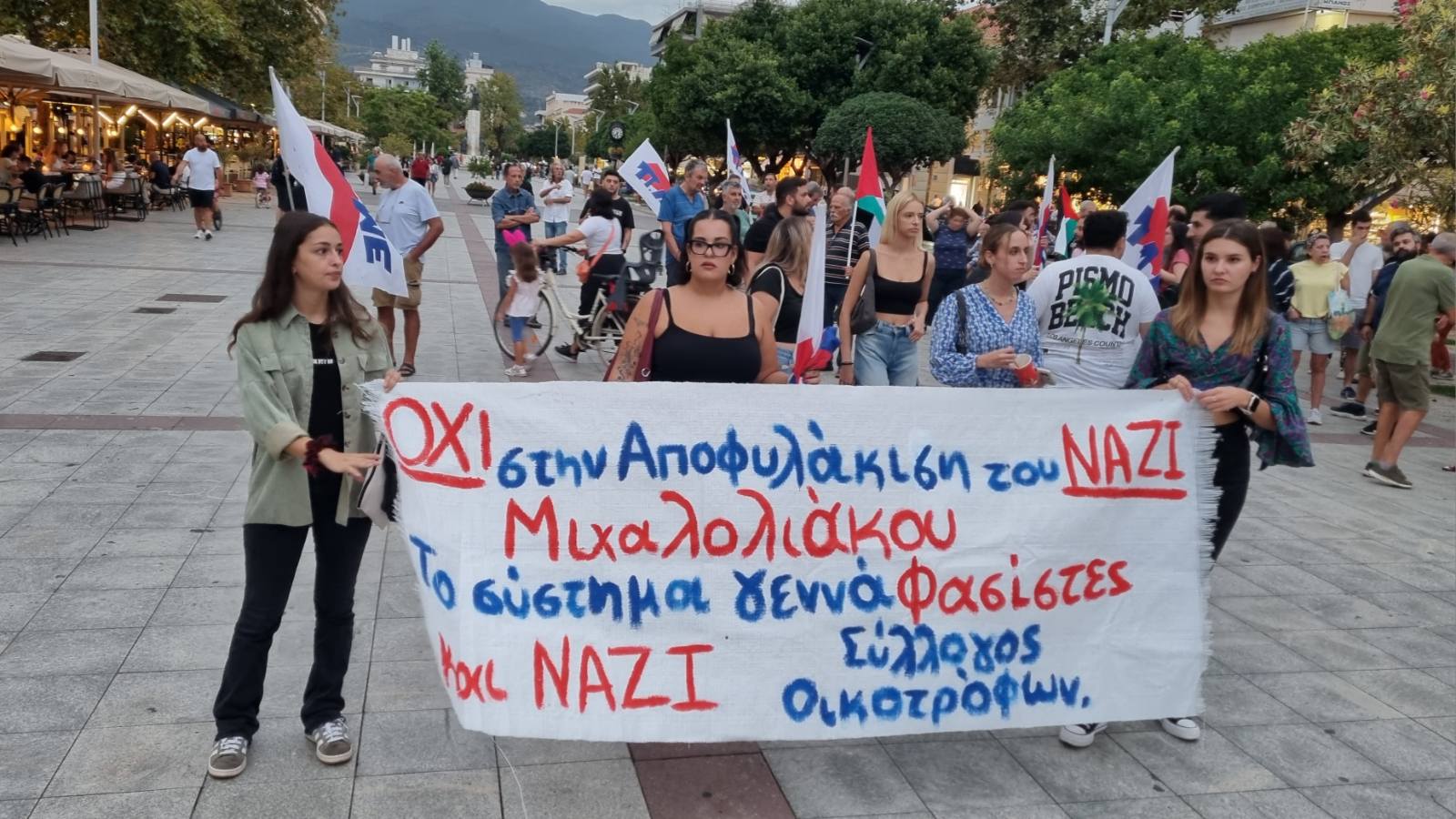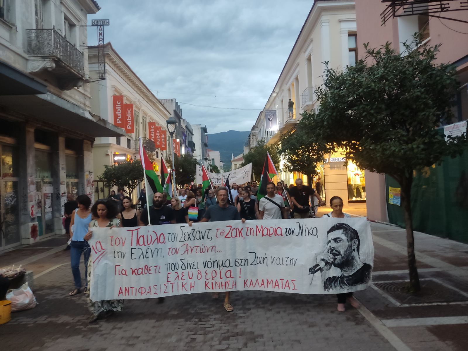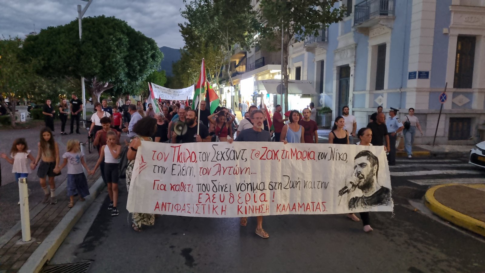 Η Αντιφασιστική Κίνηση Καλαμάτας που οργάνωσε τις εκδηλώσεις, σημείωσε ότι “τιμούμε την μνήμη του Παύλου Φύσσα, που πριν 12 χρόνια έβαλε με θάρρος το σώμα του ανάχωμα μπροστά στους δολοφόνους - ναζί της ΧΑ και ταυτόχρονα κρατάμε τα μάτια μας στραμμένα στη δικαστική εξουσία, γιατί ξέρουμε πως οι μάχες ενάντια στον φασισμό που δίνονται μέσα στα δικαστήρια, κρίνονται και στους δρόμους. Η δικαστική εξουσία αποφασίζοντας για μια ακόμη φορά επιλεκτικά και επιβεβαιώνοντας τον ρόλο του κατασταλτικού μηχανισμού ενάντια στο κίνημα και τους αγωνιστές του, αποφυλάκισε τον φυρερίσκο Μιχαλολιάκο, ουσιαστικά υπεύθυνο για την δολοφονία του Παύλου και όχι μόνο. Διαδηλώνουμε ταυτόχρονα και απέναντι στα εγκλήματα που διαπράττει το Ισραήλ στη Γάζα και τη Δυτική Όχθη ενάντια στον λαό της Παλαιστίνης”.