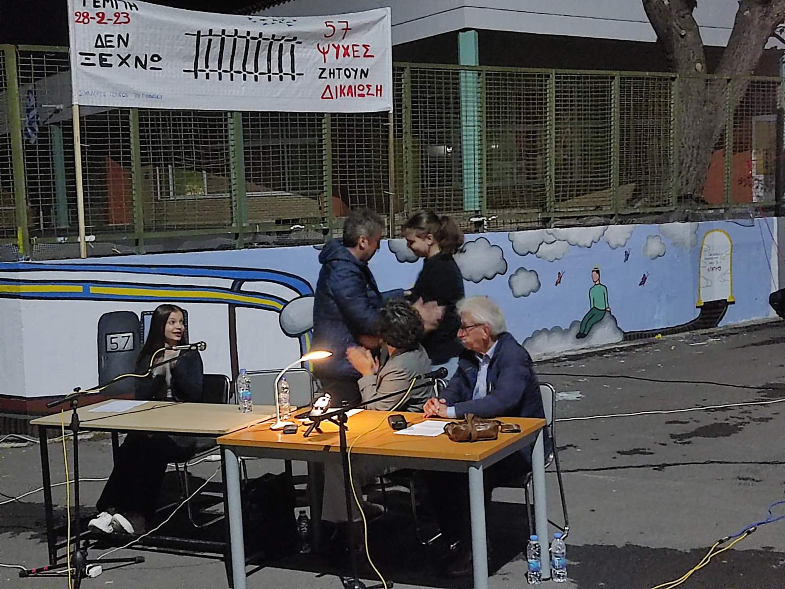 Ο συνταγματολόγος Ξενοφών Κοντιάδης (μέσω τηλεδιάσκεψης) εξέφρασε συμπόρευση και συλλυπητήρια στον Παύλο Ασλανίδη κι ενημέρωσε ότι το βιβλίο του που μόλις κυκλοφόρησε “Τέμπη 57. Η ιστορία ενός προαναγγελθέντος εγκλήματος” στηρίζεται σε μαρτυρίες και τεκμήρια.