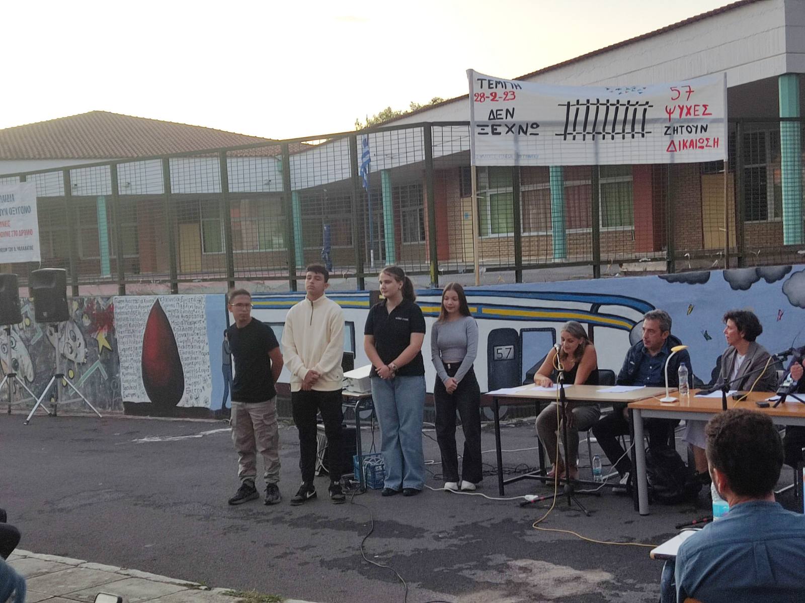 Σε μια εκδήλωση παρουσία αρκετού κόσμου, πλημμυρισμένη με συναισθήματα και συγκίνηση, με μηνύματα συμπαράστασης και αλληλεγγύης από τα παιδιά και την κοινωνία ότι ο αγώνας για τα Τέμπη θα πάει μέχρι τέλους, για να υπάρξει δικαίωση και να αποδοθεί δικαιοσύνη.