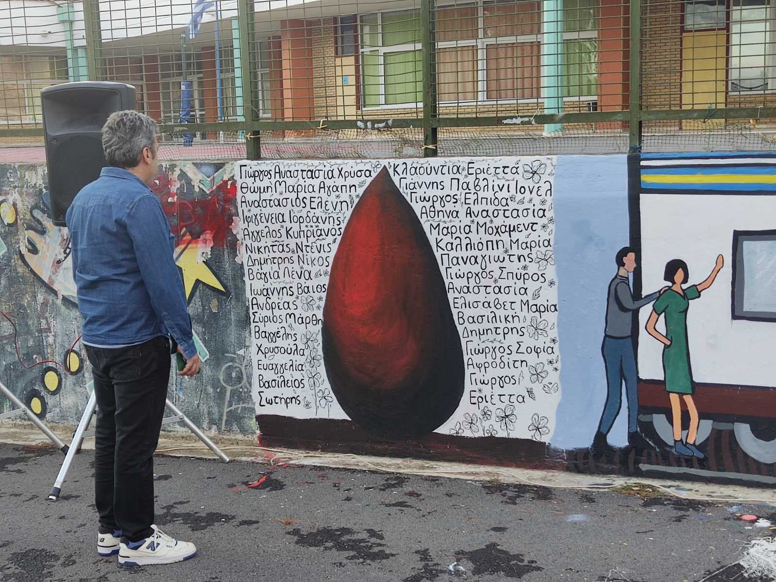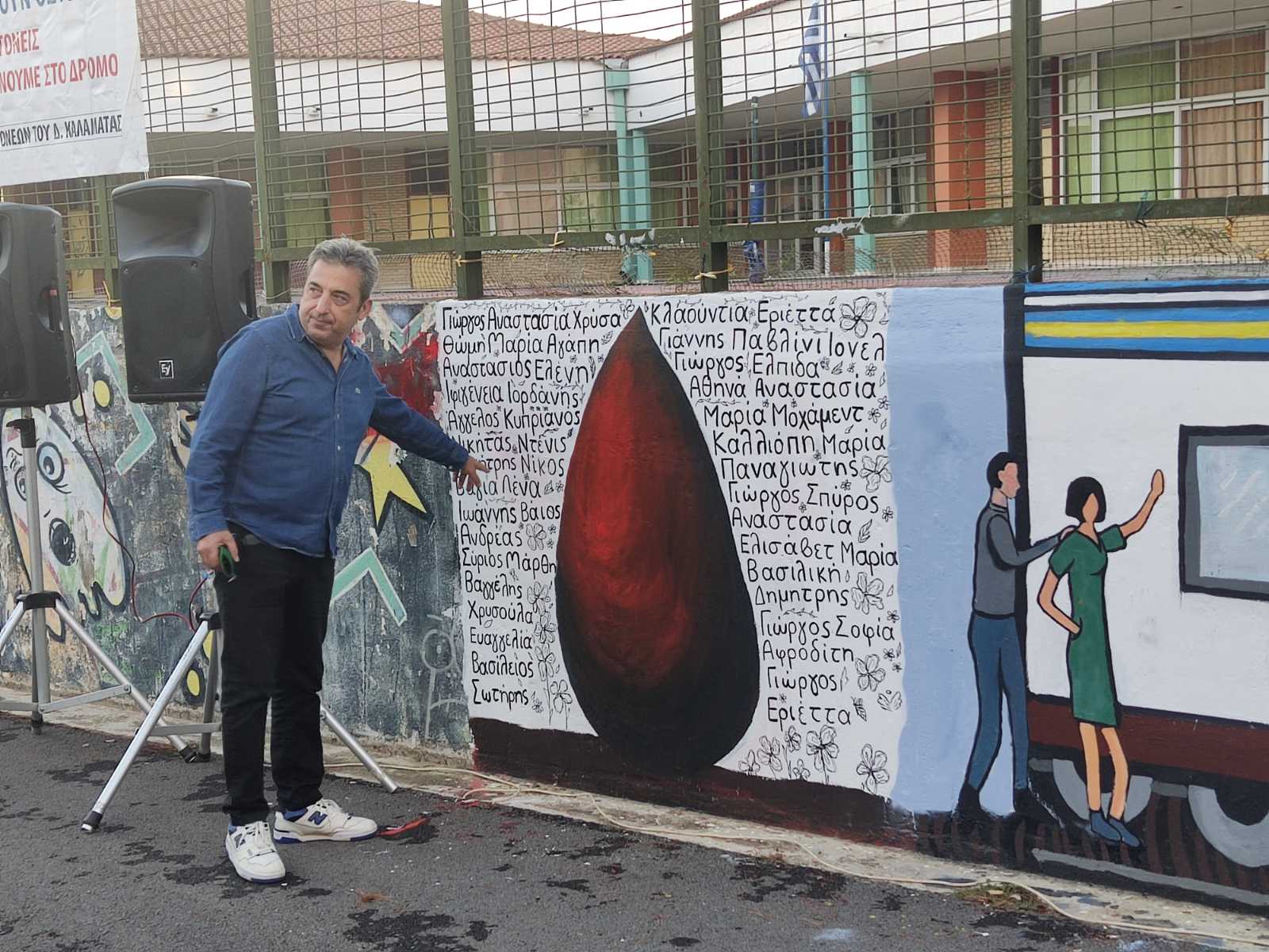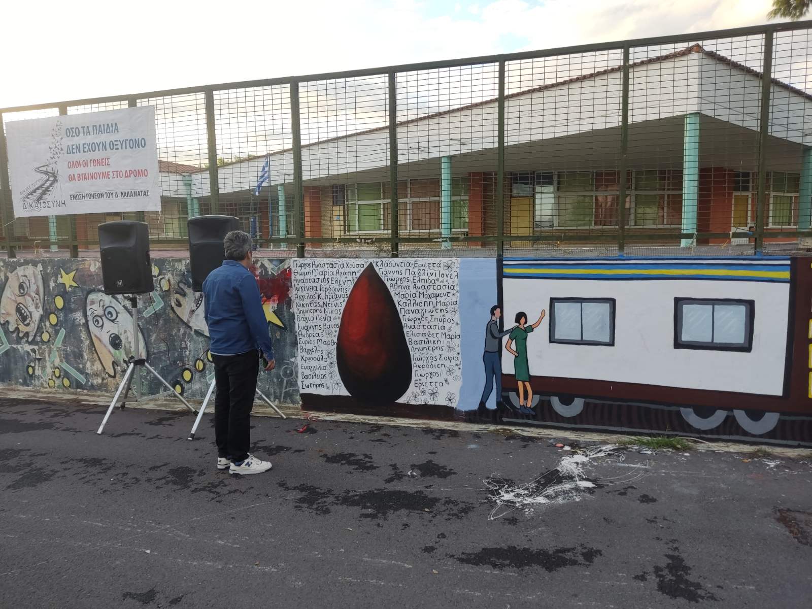 Αναλυτικά, στην εκδήλωση, ο διευθυντής του 3ου Γυμνασίου Καλαμάτας Θεμιστοκλής Νταβέας παρατήρησε, μεταξύ άλλων, ότι το γκράφιτι των παιδιών “είναι σιωπηλή και δυνατή φωνή, για να μην ξεχάσουμε. Είναι πράξη αγάπης και ανθρωπιάς, δέσμευση ότι θα θυμόμαστε”. Επισήμανε ότι “στο σχολείο πέρα από τη γνώση, μαθαίνουμε και την ευαισθησία” κι έκανε λόγο για “ένα μήνυμα ζωής μέσα από τον πόνο”.