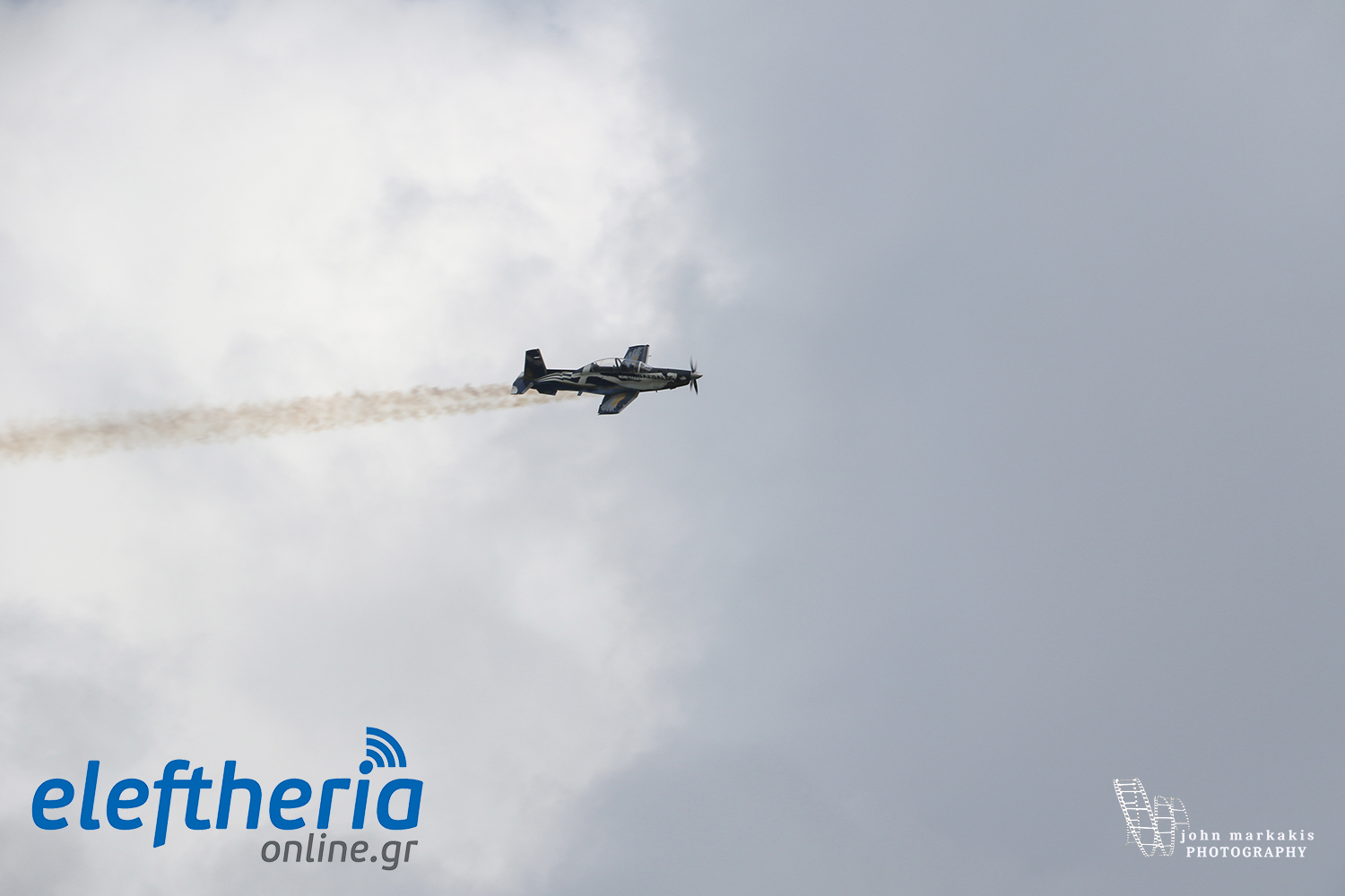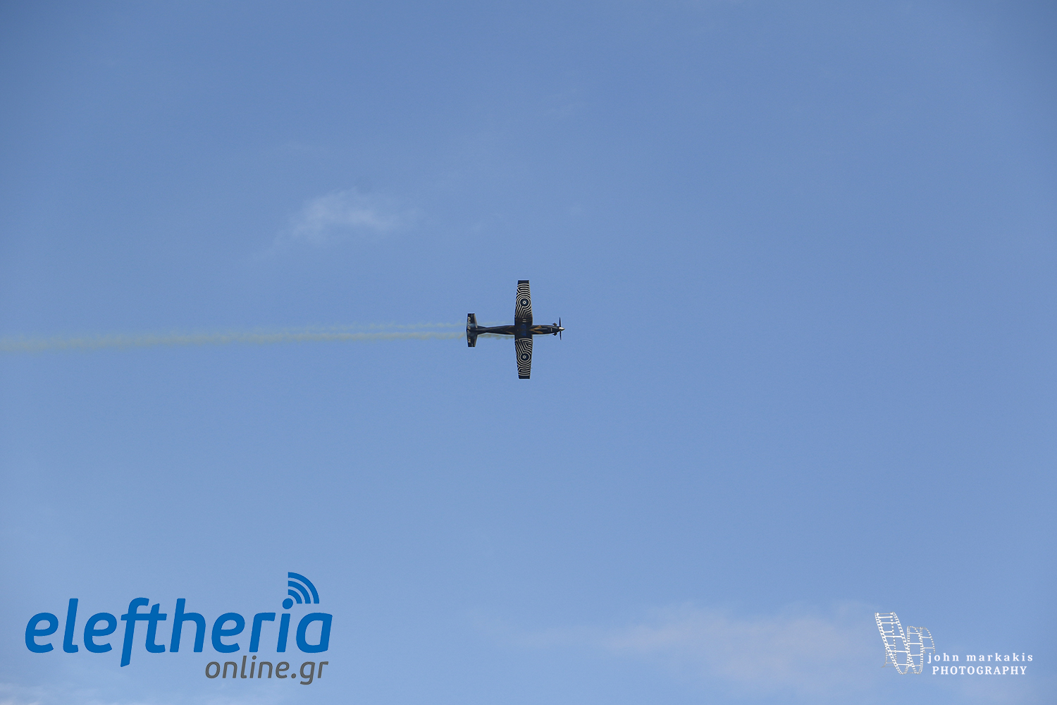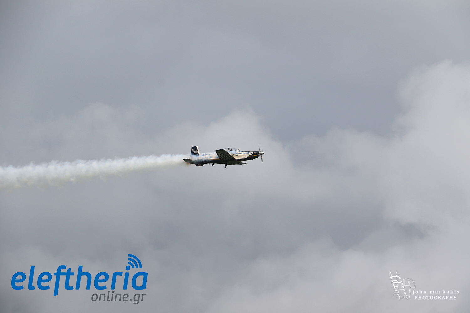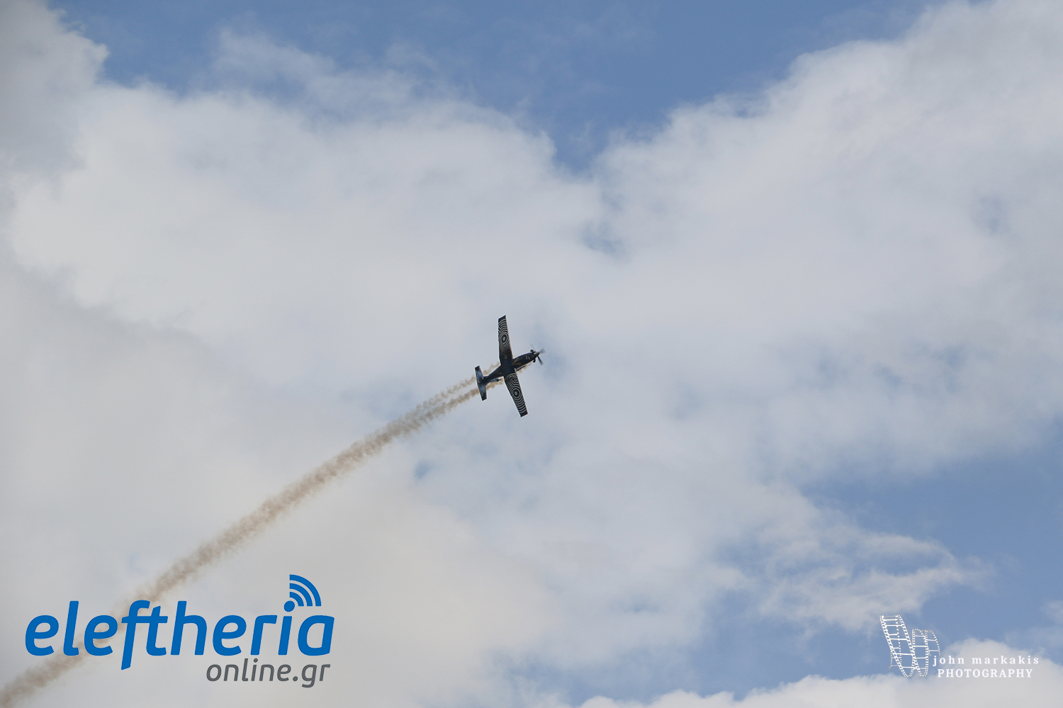 Το F-16 της ομάδας “Ζευς” χειρίστηκε ο επισμηναγός Γιώργος Σωτηρίου, ενώ το Τ-6 “Δαίδαλος” της 120 ΠΕΑ ο σμηναγός Ανδρέας Σταυρόπουλος, "κόβοντας" την ανάσα όσων σήκωσαν το βλέμμα τους προς τον ουρανό.