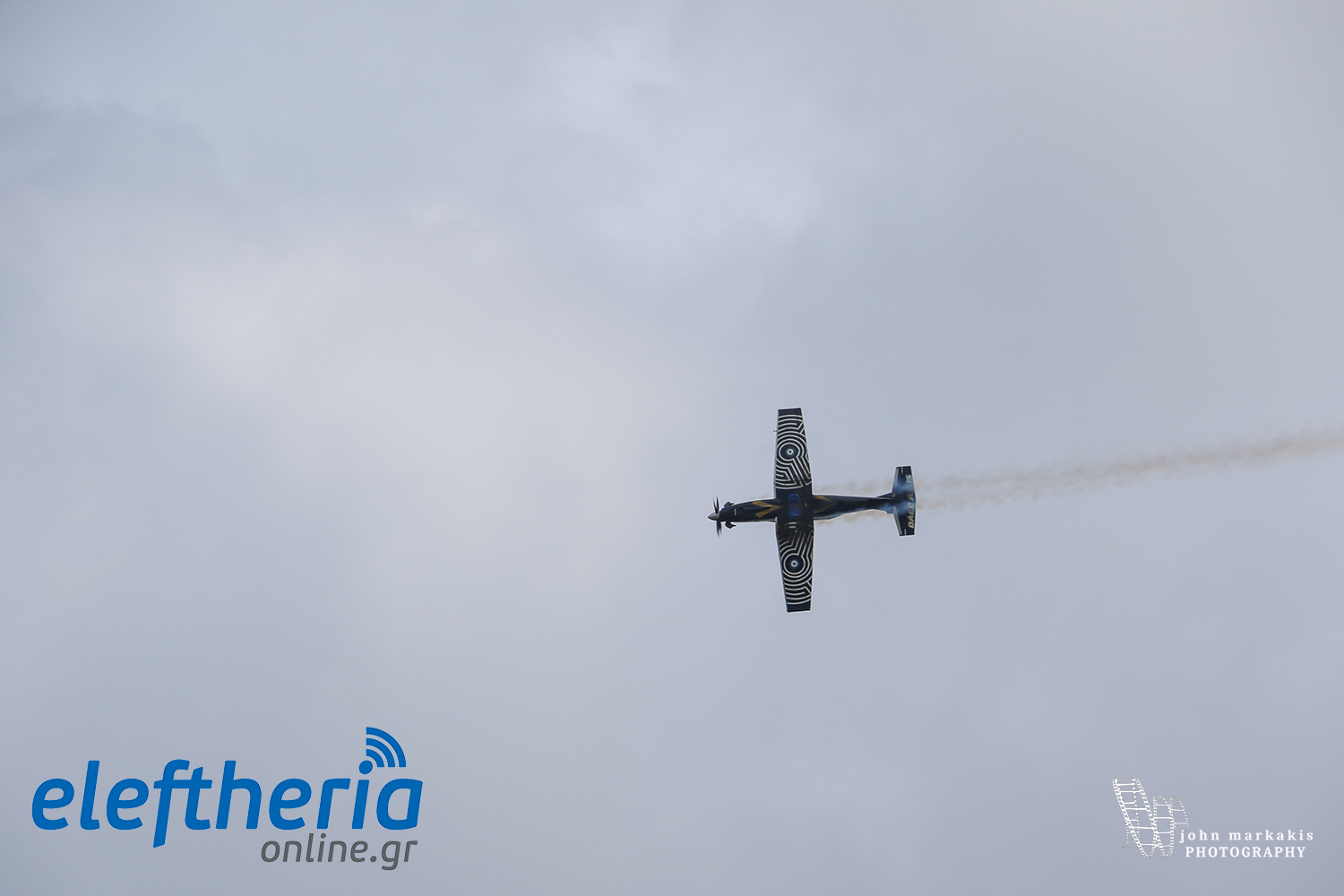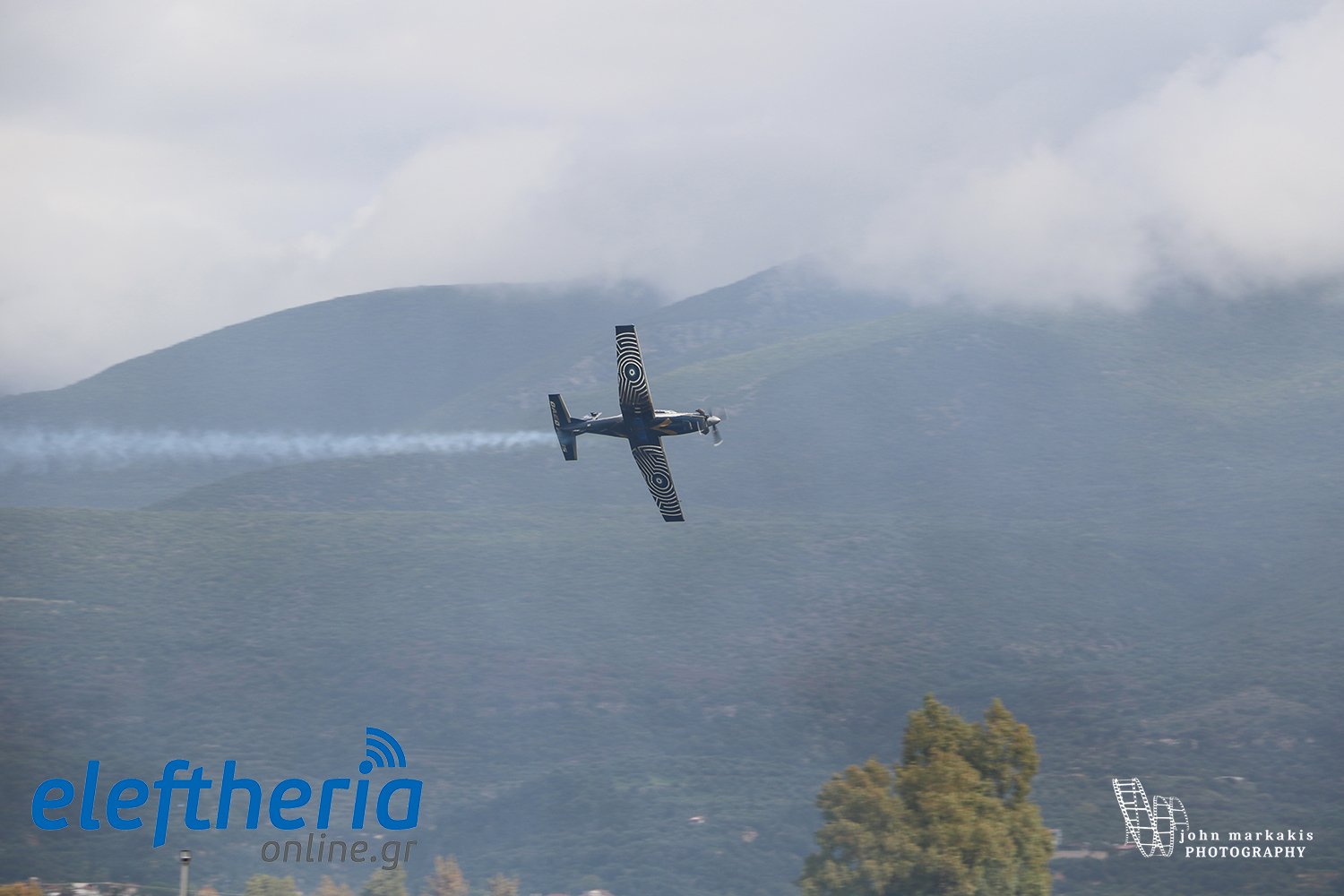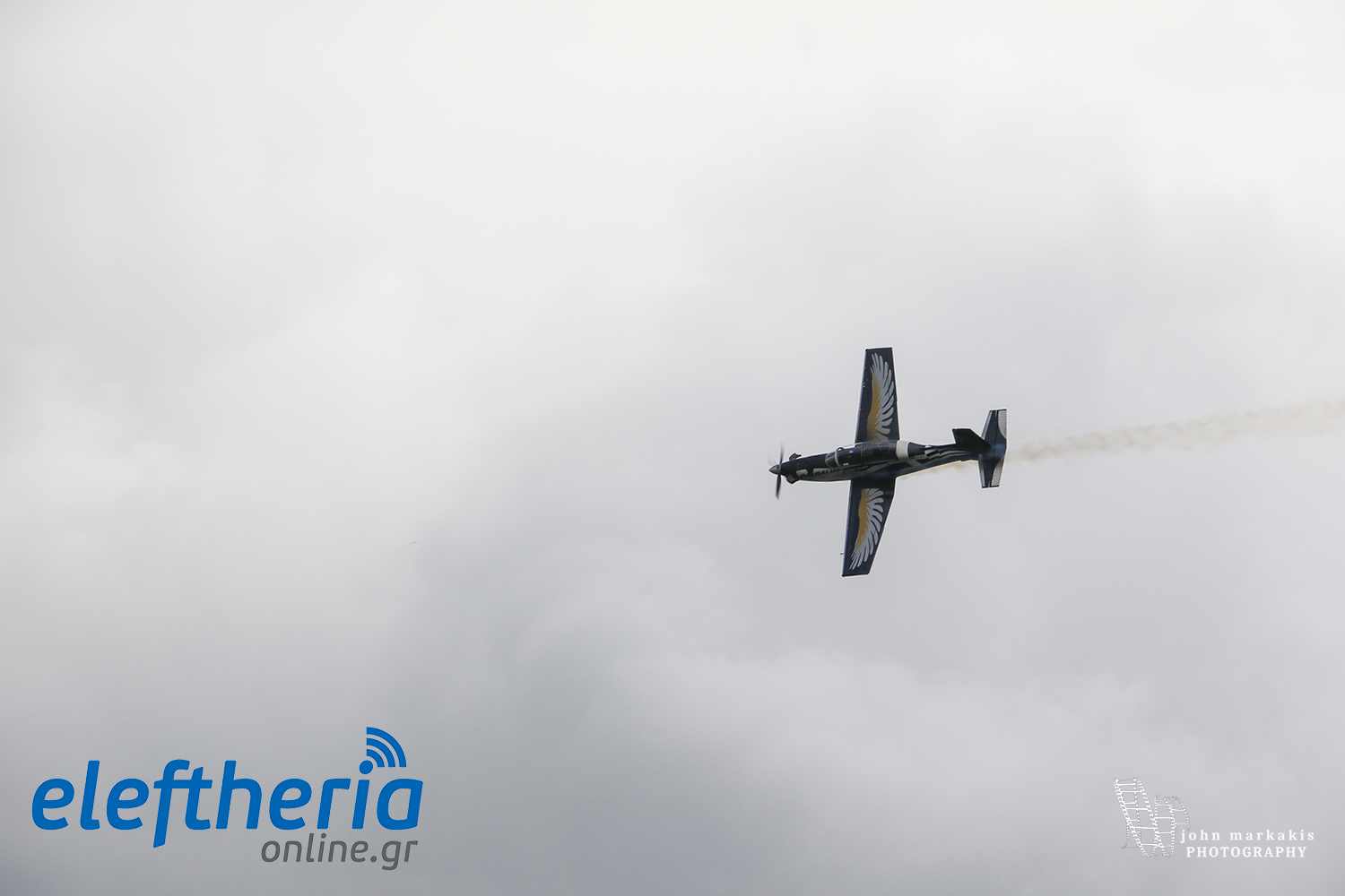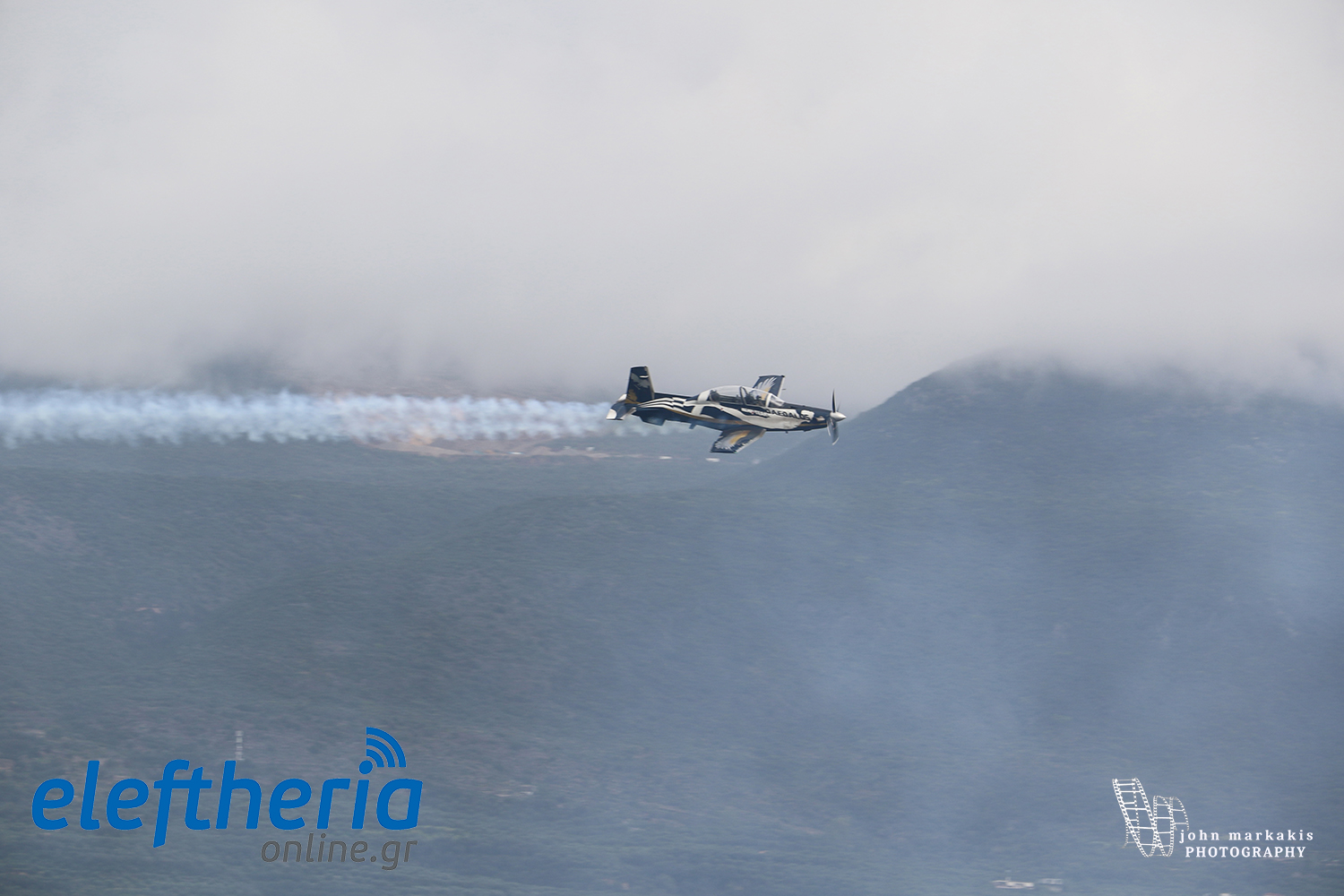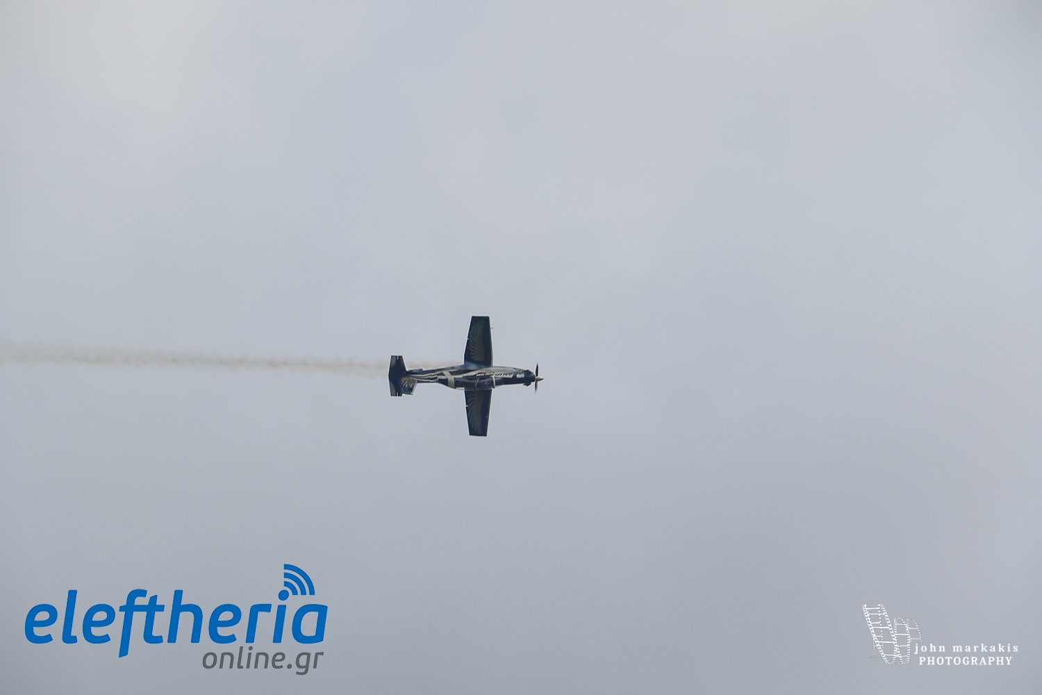 Το F-16 της ομάδας “Ζευς” χειρίστηκε ο επισμηναγός Γιώργος Σωτηρίου, ενώ το Τ-6 “Δαίδαλος” της 120 ΠΕΑ ο σμηναγός Ανδρέας Σταυρόπουλος, "κόβοντας" την ανάσα όσων σήκωσαν το βλέμμα τους προς τον ουρανό.