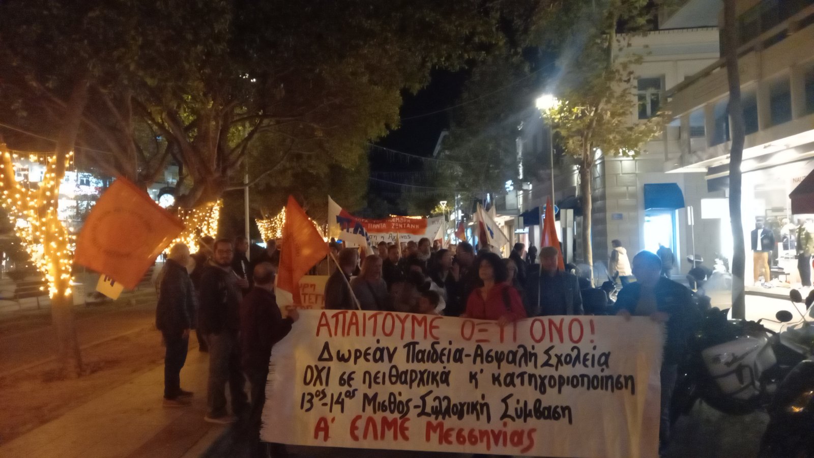 Η συγκέντρωση ξεκίνησε με απαγγελίες ποιημάτων και τραγουδιών, ενώ ακολούθησαν χαιρετισμοί από τον πρόεδρο του Συνδικάτου Οικοδόμων Μεσσηνίας Παναγιώτη Καράμπελα, από την εκπρόσωπο της Ενωσης Συλλόγων Γονέων Καλαμάτας Μαρία Φράγκου, ενώ την κεντρική ομιλία πραγματοποίησε η πρόεδρος του Συλλόγου Εκπαιδευτικών Πρωτοβάθμιας Εκπαίδευσης Μεσσηνίας Χριστίνα Λαδά.