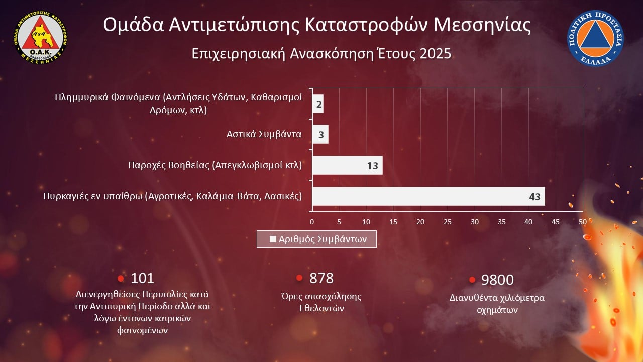 Η προσφορά των εθελοντών είναι τεράστια και η ΟΑΚ μέσω του προέδρου της Κώστα Βλαχονικολού και του γενικού γραμματέα Νίκου Κυριακουλάκου απονέμει τα εύσημα: “Πίσω από κάθε αριθμό υπάρχουν άνθρωποι. Εθελοντές που άφησαν οικογένεια, εργασία και προσωπικό χρόνο για να βρίσκονται εκεί που χρειάζεται, όταν χρειάζεται. Με συνεργασία, εκπαίδευση και αίσθημα ευθύνης, συνεχίζουμε να στεκόμαστε δίπλα στην κοινωνία της Μεσσηνίας, στηρίζοντας το έργο της Πολιτικής Προστασίας και των αρμόδιων Αρχών. Ένα μεγάλο ευχαριστώ σε όλους τους εθελοντές μας, στους συνεργαζόμενους φορείς, στους χορηγούς που μας υποστηρίζουν, αλλά και στους πολίτες που μας εμπιστεύονται. Συνεχίζουμε με σχέδιο, με συνέπεια με εθελοντική ψυχή”.