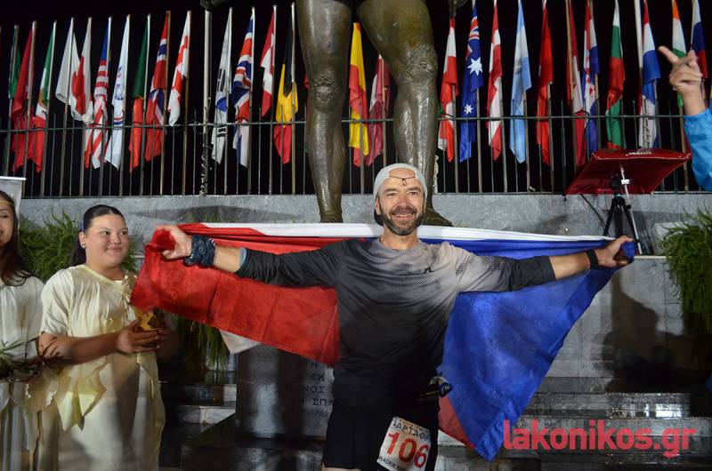 Ο δρομέας διένυσε τα 246 απαιτητικά χιλιόμετρα από την Αθήνα έως τη Σπάρτη σε χρόνο 21:24:35, τερματίζοντας πρώτος μπροστά στο άγαλμα του βασιλιά Λεωνίδα, υπό βροχή και τις επευφημίες των συγκεντρωμένων πολιτών. Ο χρόνος του αποτελεί την 7η καλύτερη απόδοση στην ιστορία του θεσμού.