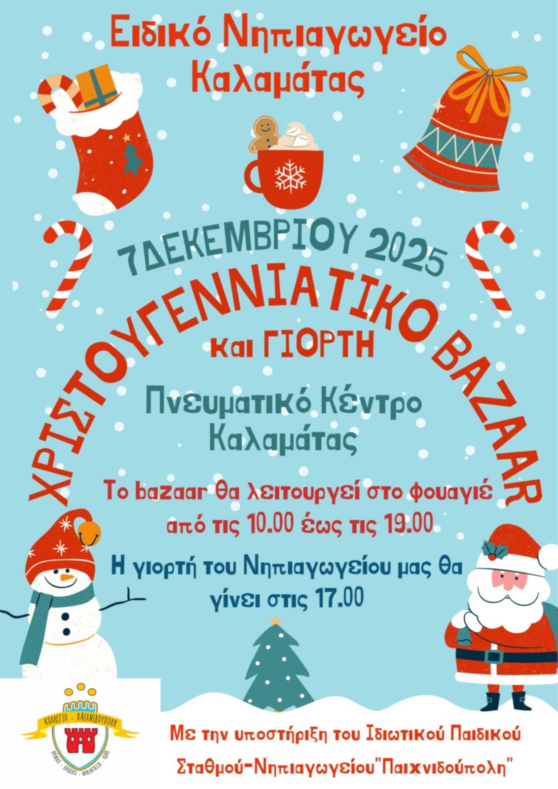 Χριστουγεννιάτικο μπαζάρ διοργανώνει και φέτος το Ειδικό Νηπιαγωγείο Καλαμάτας.