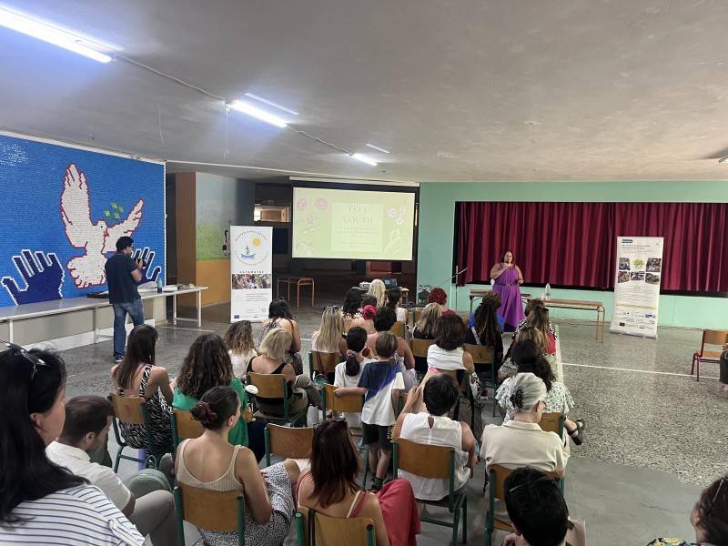 Στη συνέχεια πραγματοποιήθηκε εργαστήριο με πρακτικές εφαρμογής του εκπαιδευτικού υλικού του σχεδίου Erasmus+ “Tell Youth”, και παραδείγματα από τα φύλλα εργασίας που είχαν χρησιμοποιηθεί κατά τις δράσεις του σχεδίου.