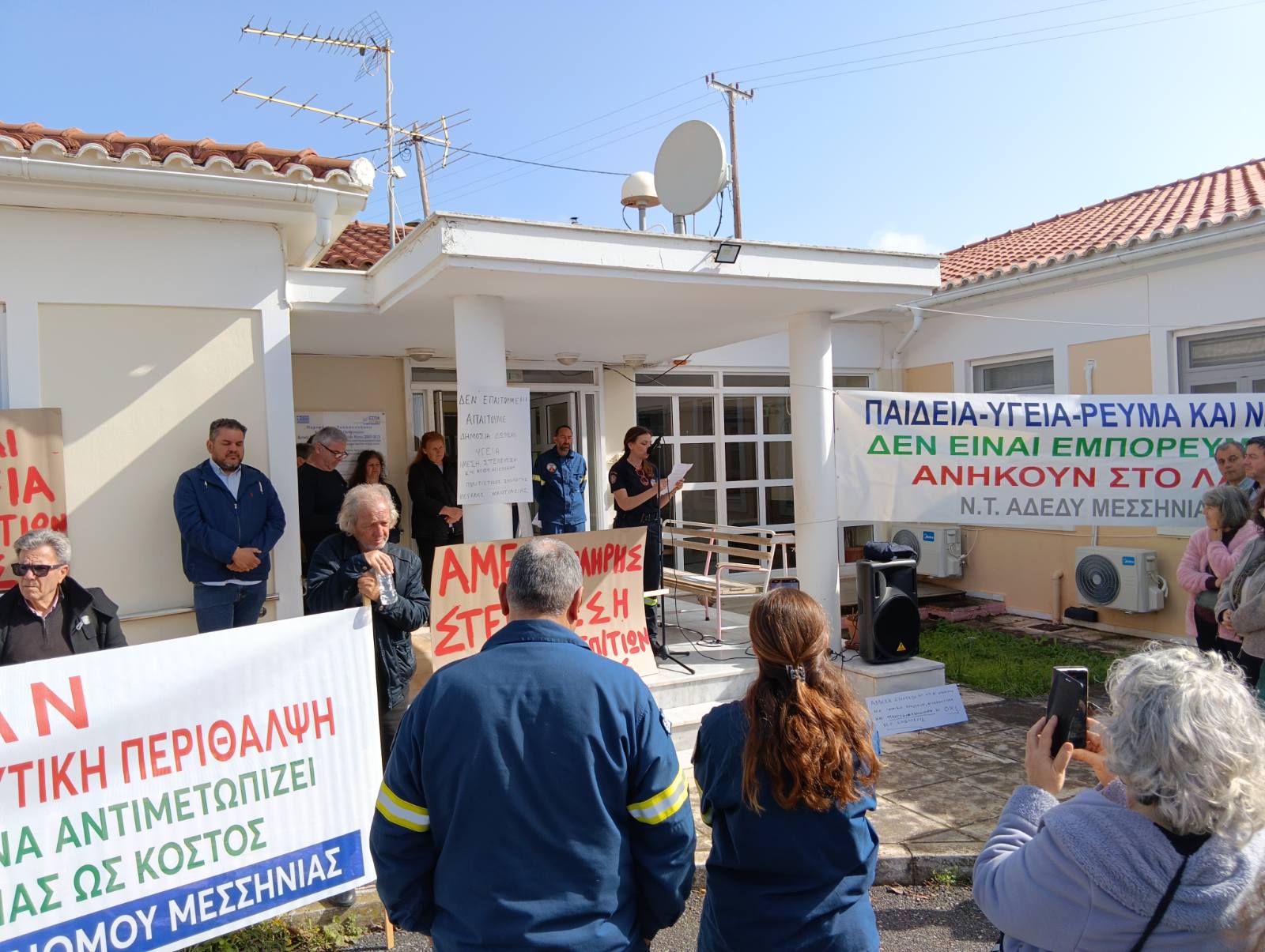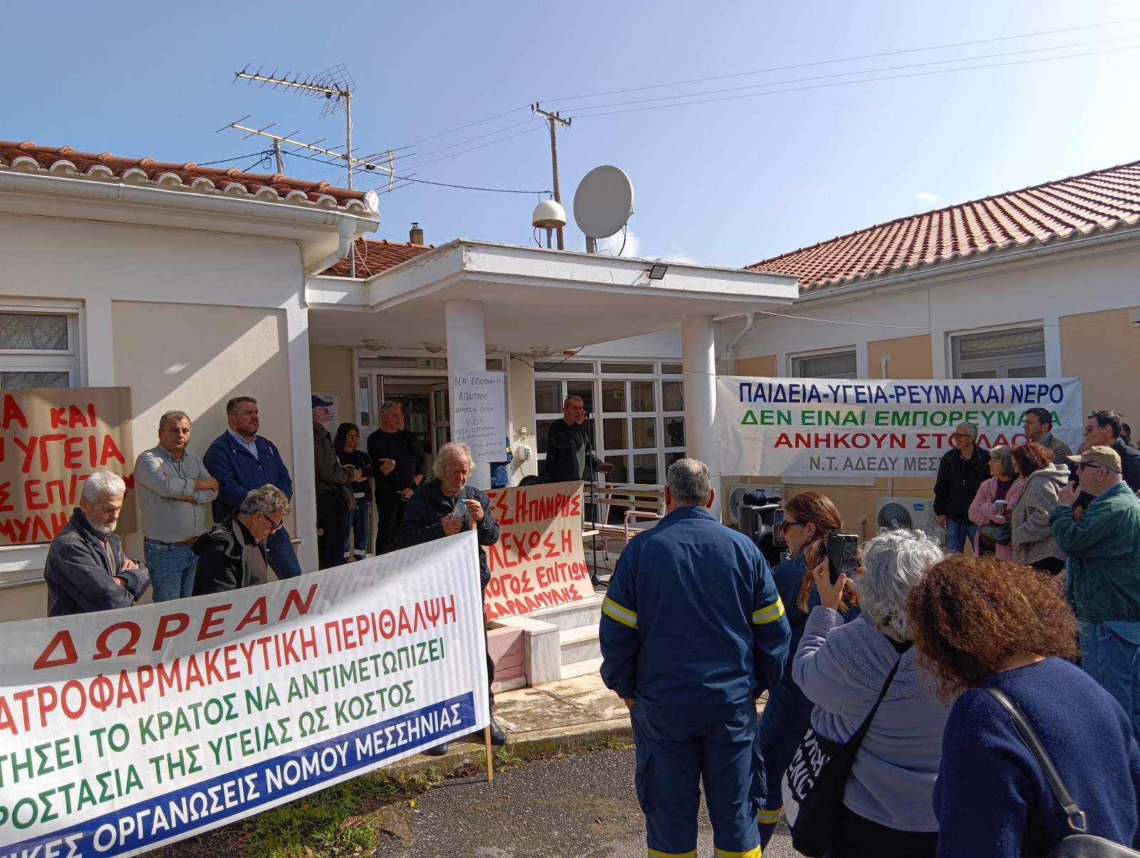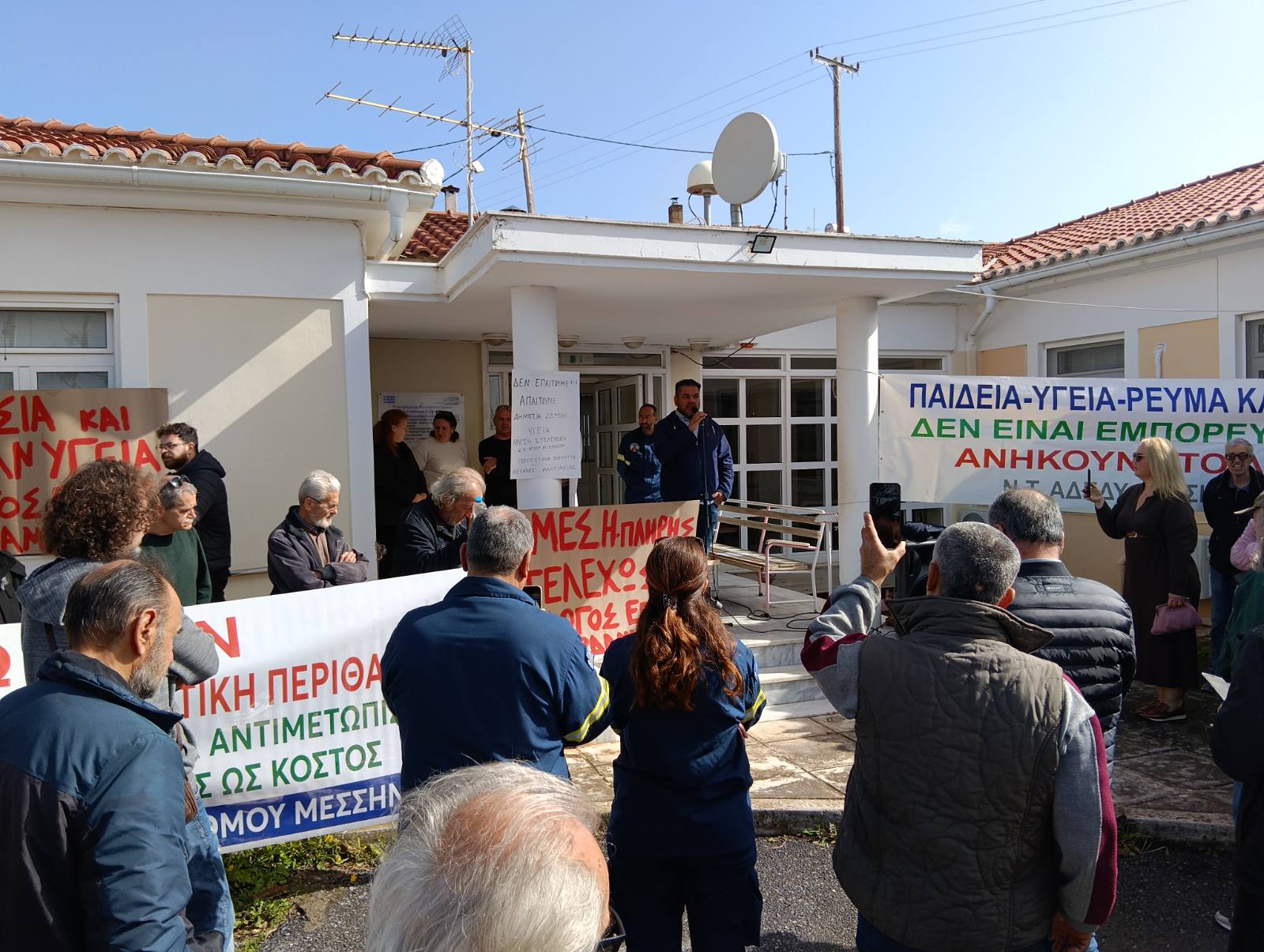Ο πρόεδρος του Νομαρχιακού Τμήματος Μεσσηνίας της ΑΔΕΔΥ Δημήτρης Φαββατάς ανέφερε ότι η υγεία είναι δημόσιο αγαθό και η Μάνη περιοχή μακριά από την Καλαμάτα με τουρισμό. Επισήμανε πως “μόνο με τον αγώνα θα ευαισθητοποιηθούν οι κυβερνώντες και θα καταλάβουν ότι πρέπει να στελεχώσουν το Κ.Υ.”.